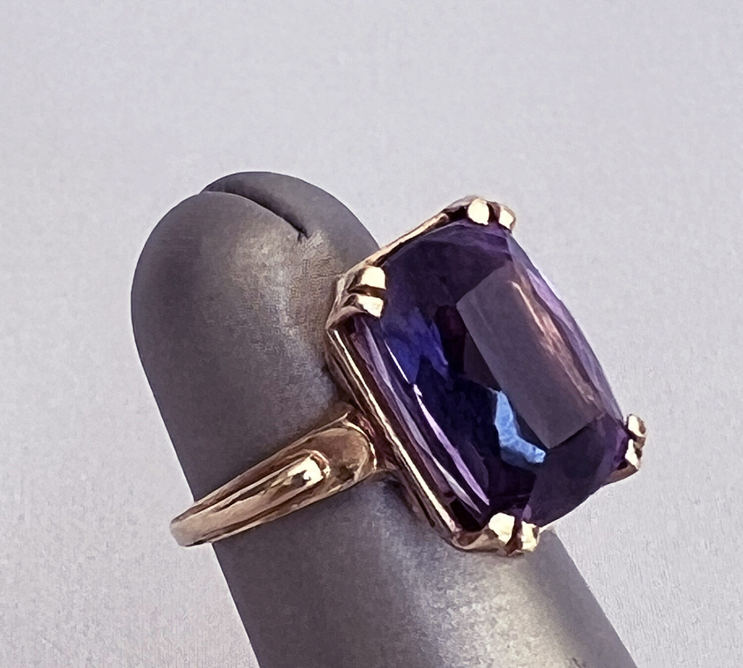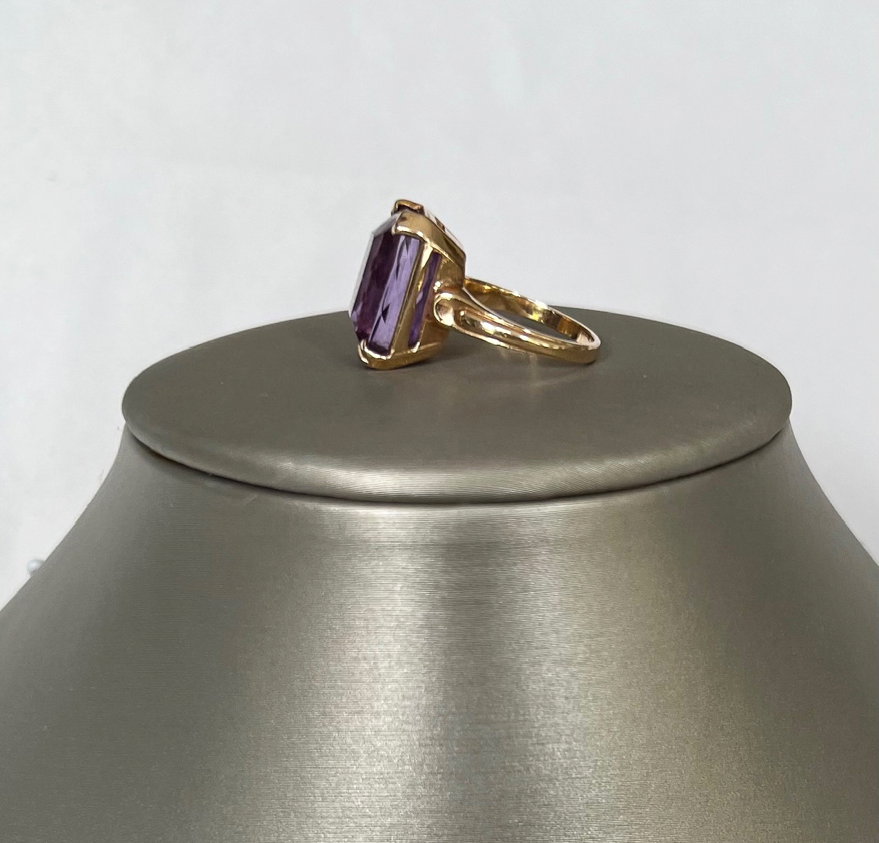 14k Yellow Gold Amethyst “Cushion Cut” Lady’s Cocktail Ring