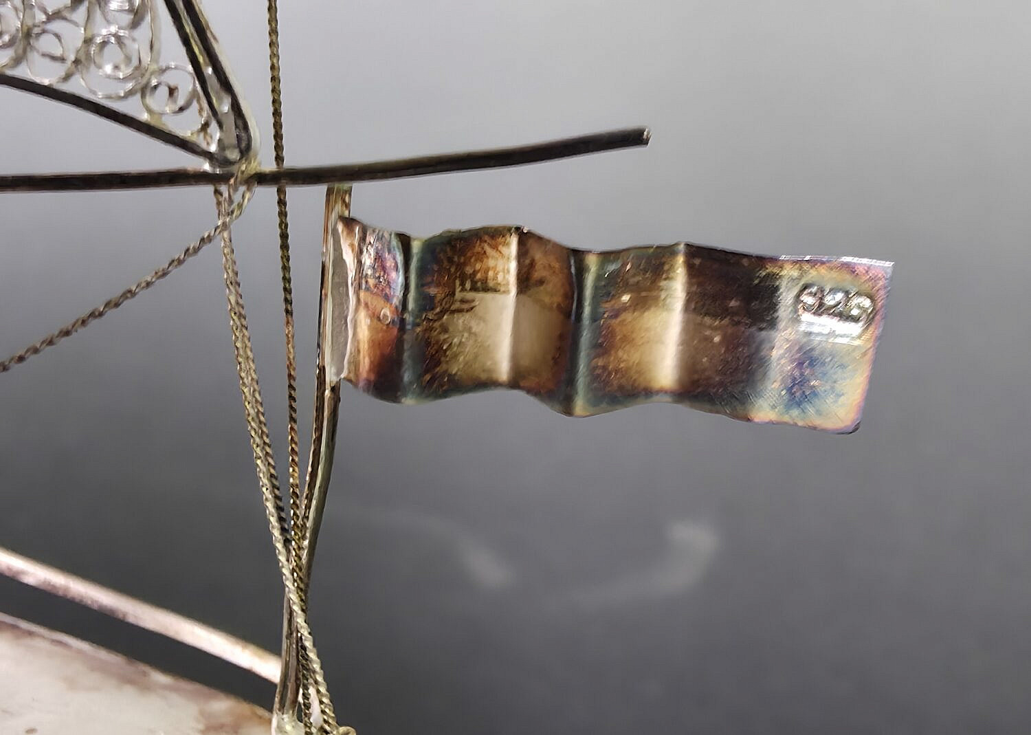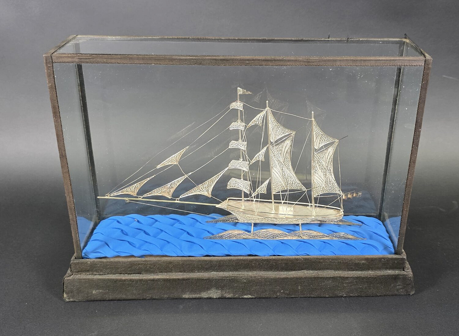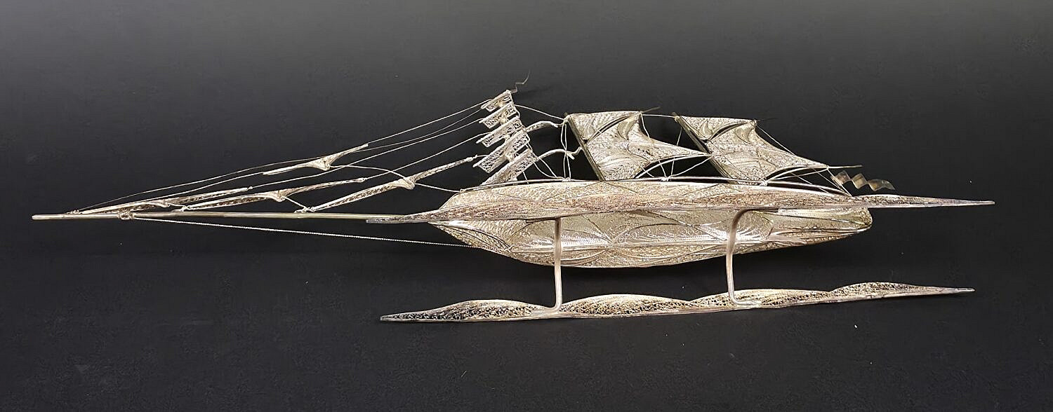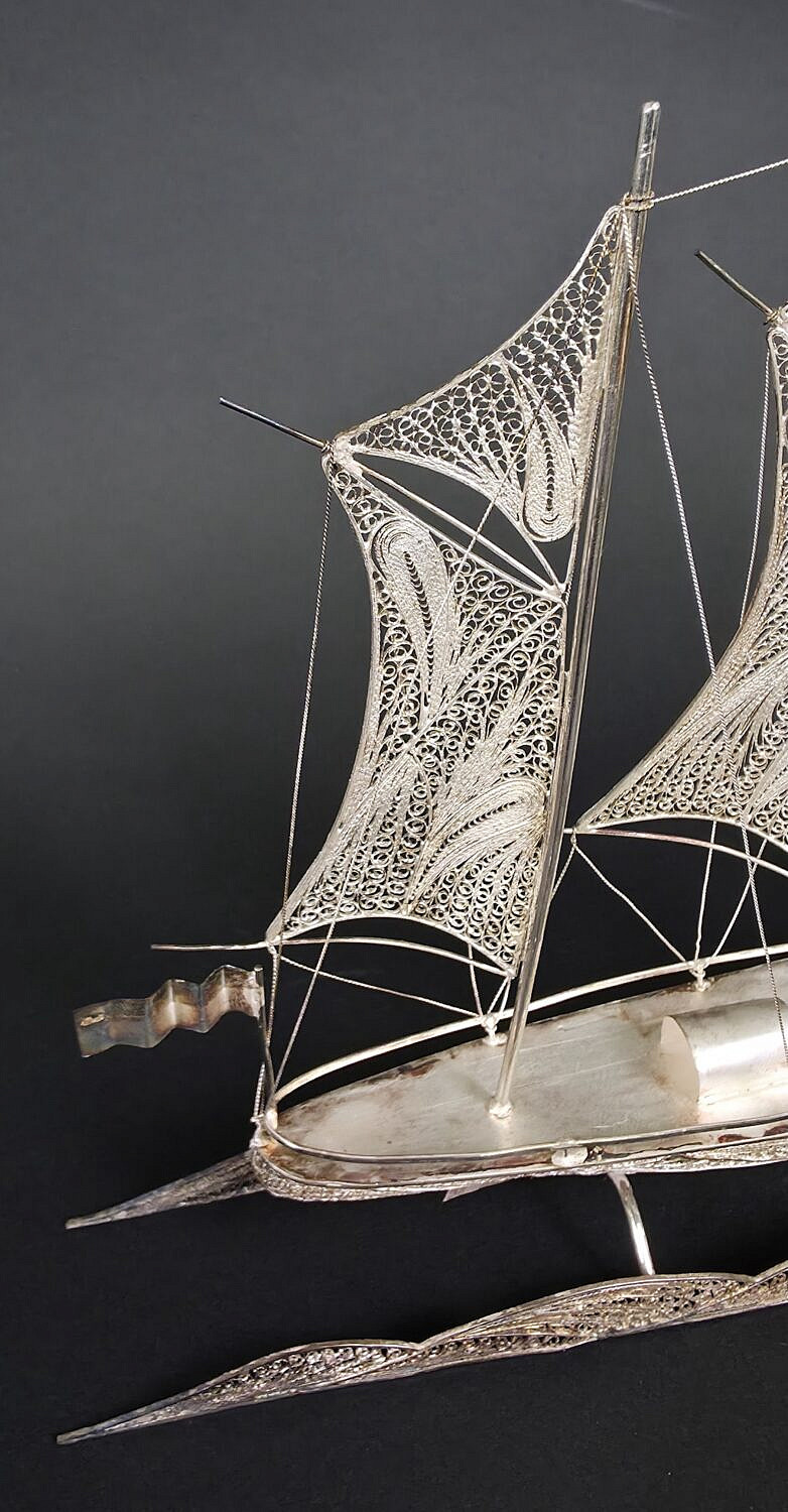 925 Sterling Silver Filigree Three Master Clipper Ship Model, 20th century
