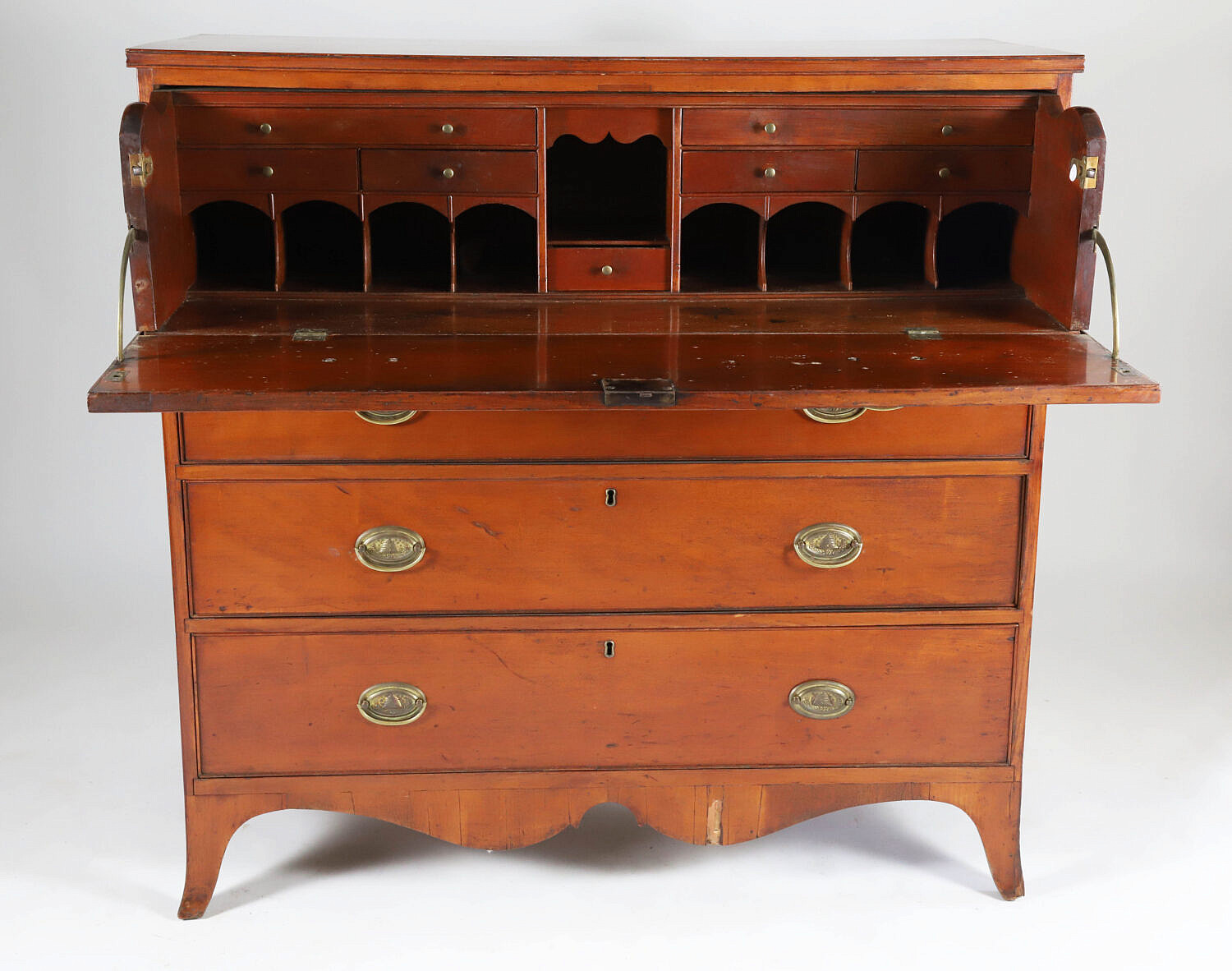 American Cherry Butler’s Secretary Chest of Drawers, 19th Century