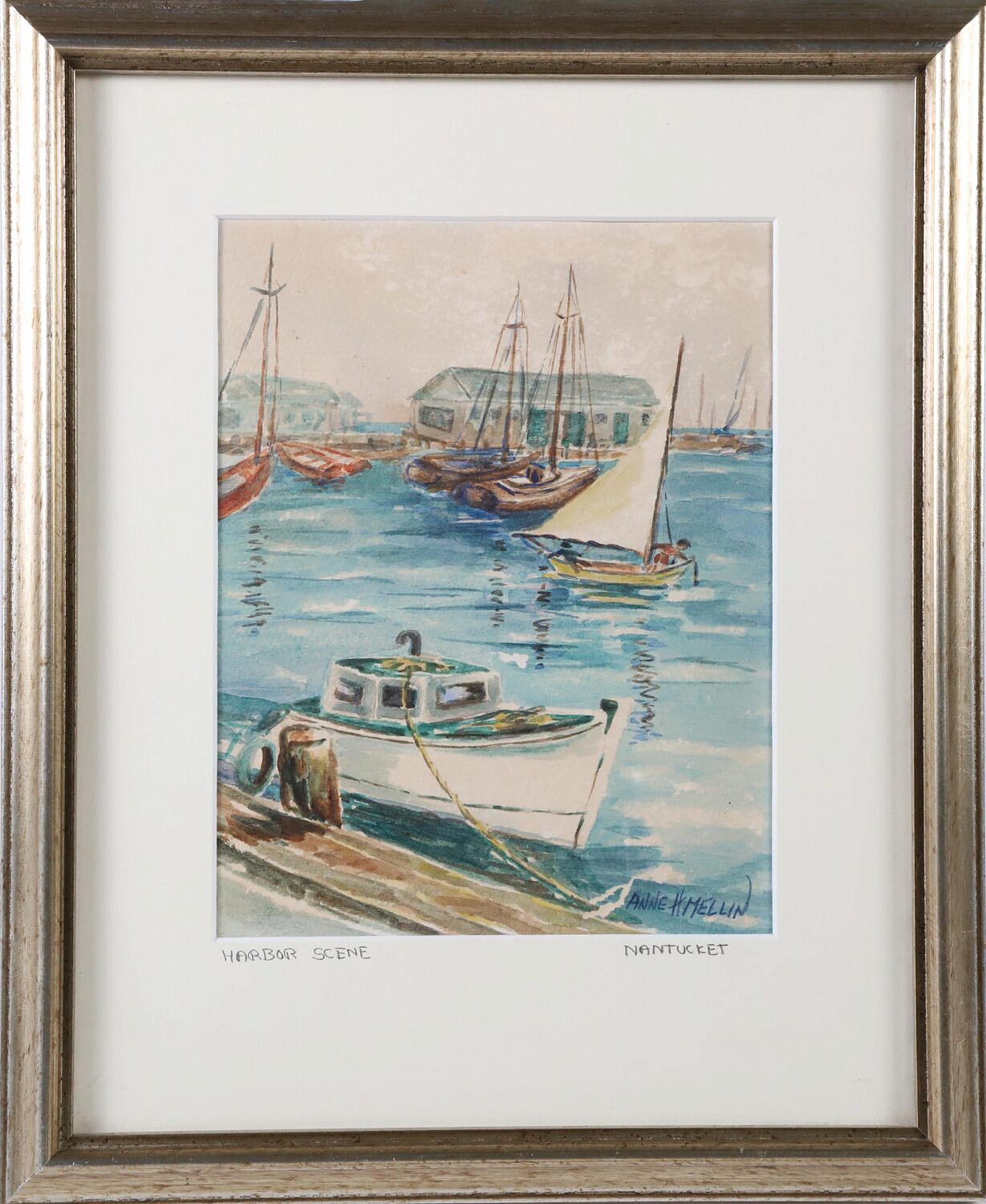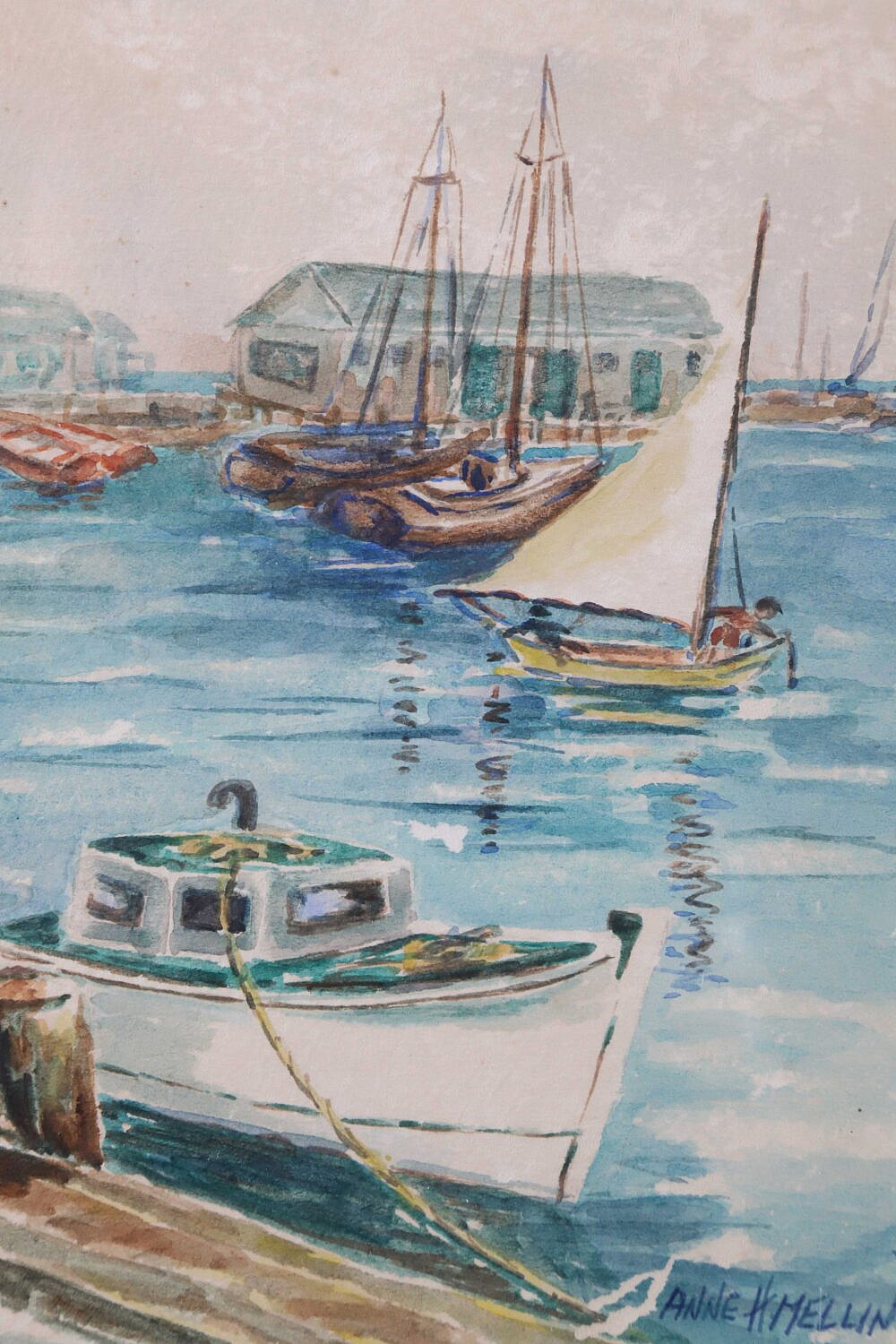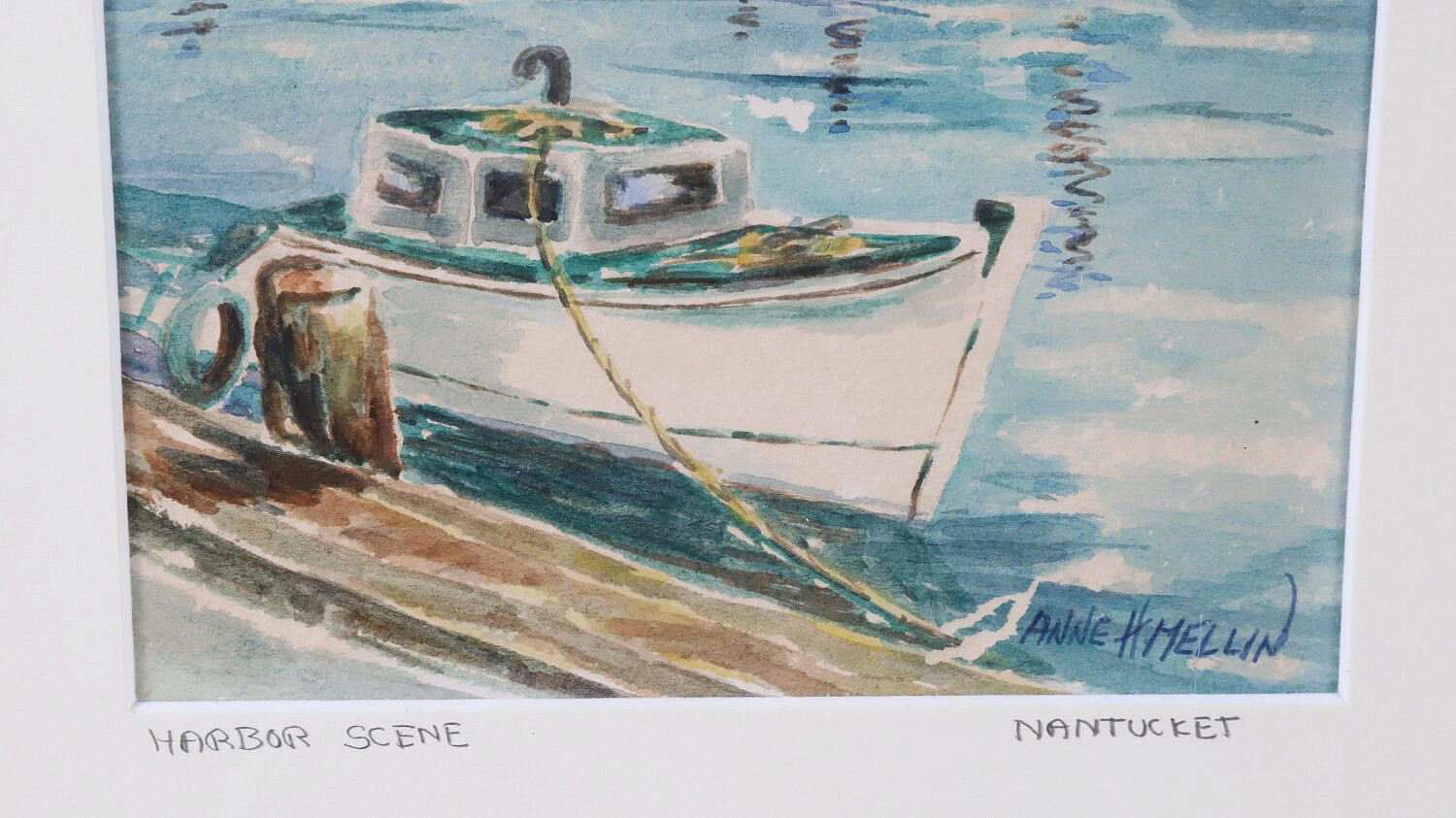 Anne H. Mellin (Massachusetts, 20th Century) Watercolor on Paper “Nantucket Harbor Scene” signed lower right Anne H. Mellin, matted and framed