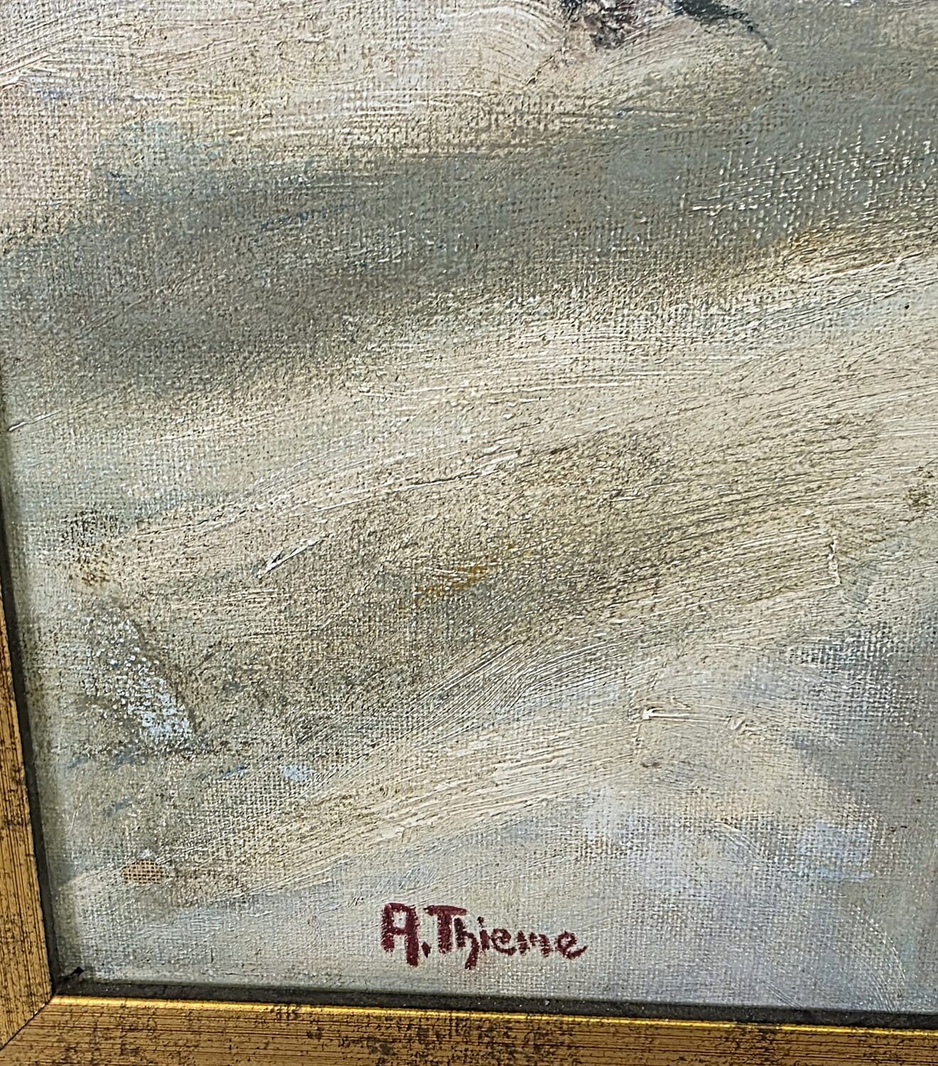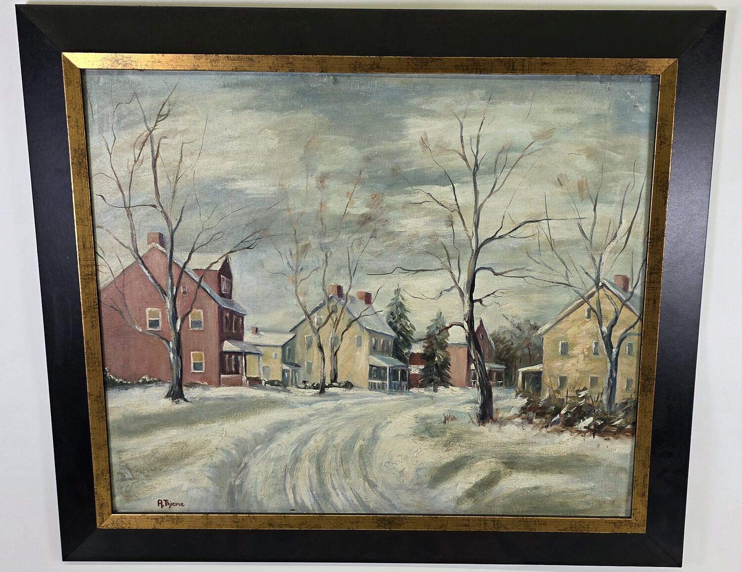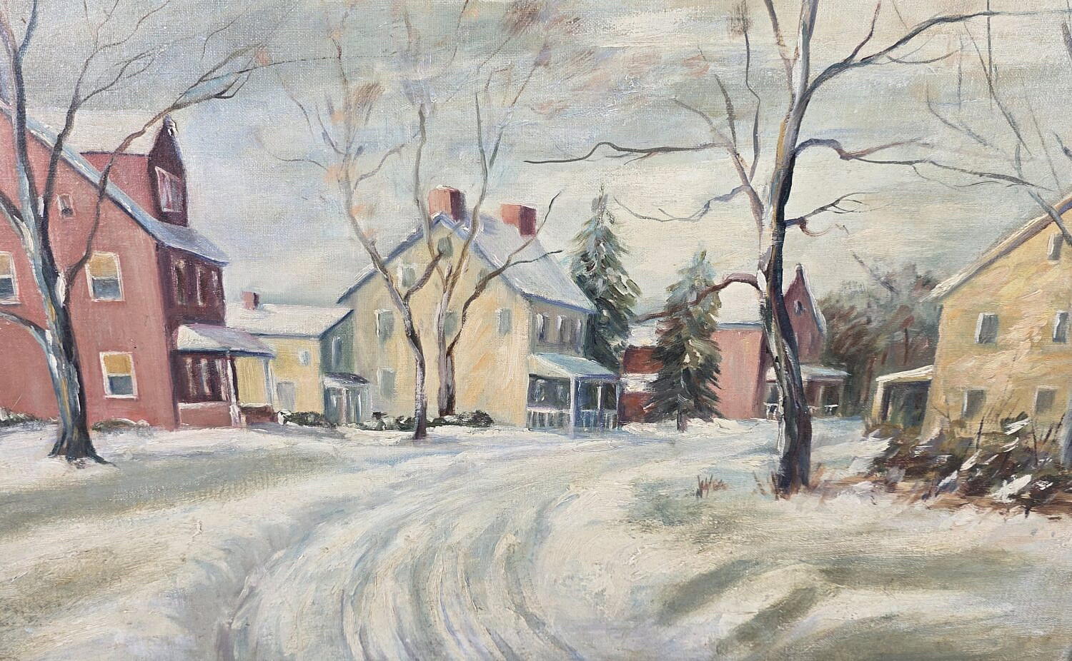 Anthony Thieme Oil on Board Winter Street Scene Painting, 20th century