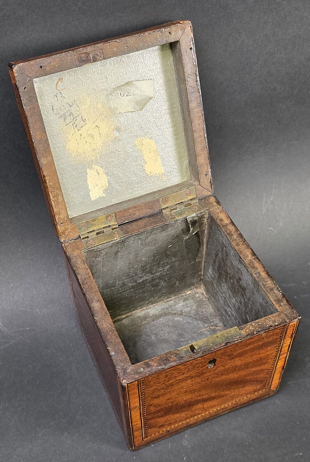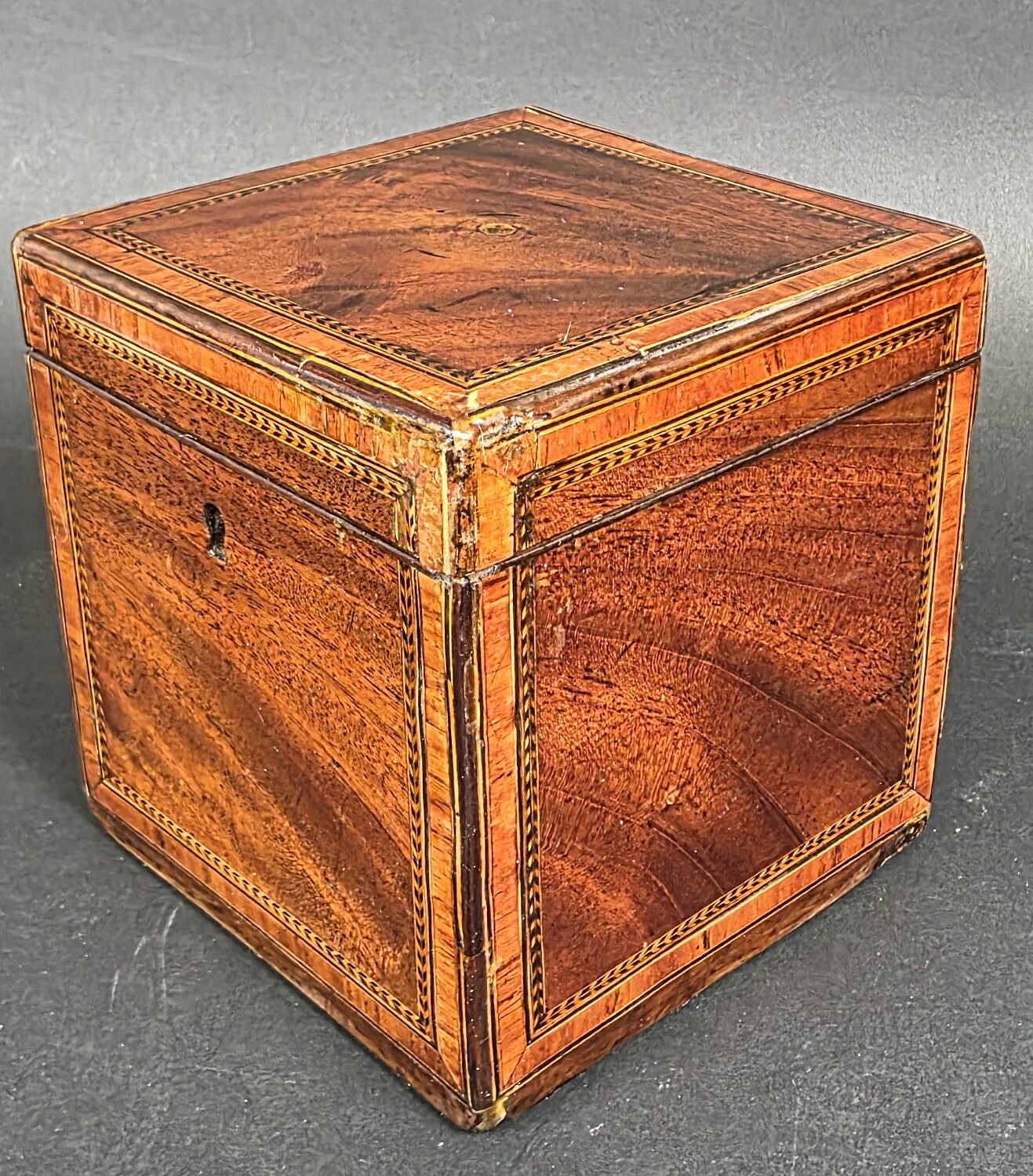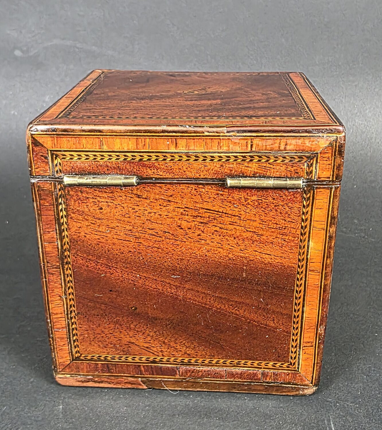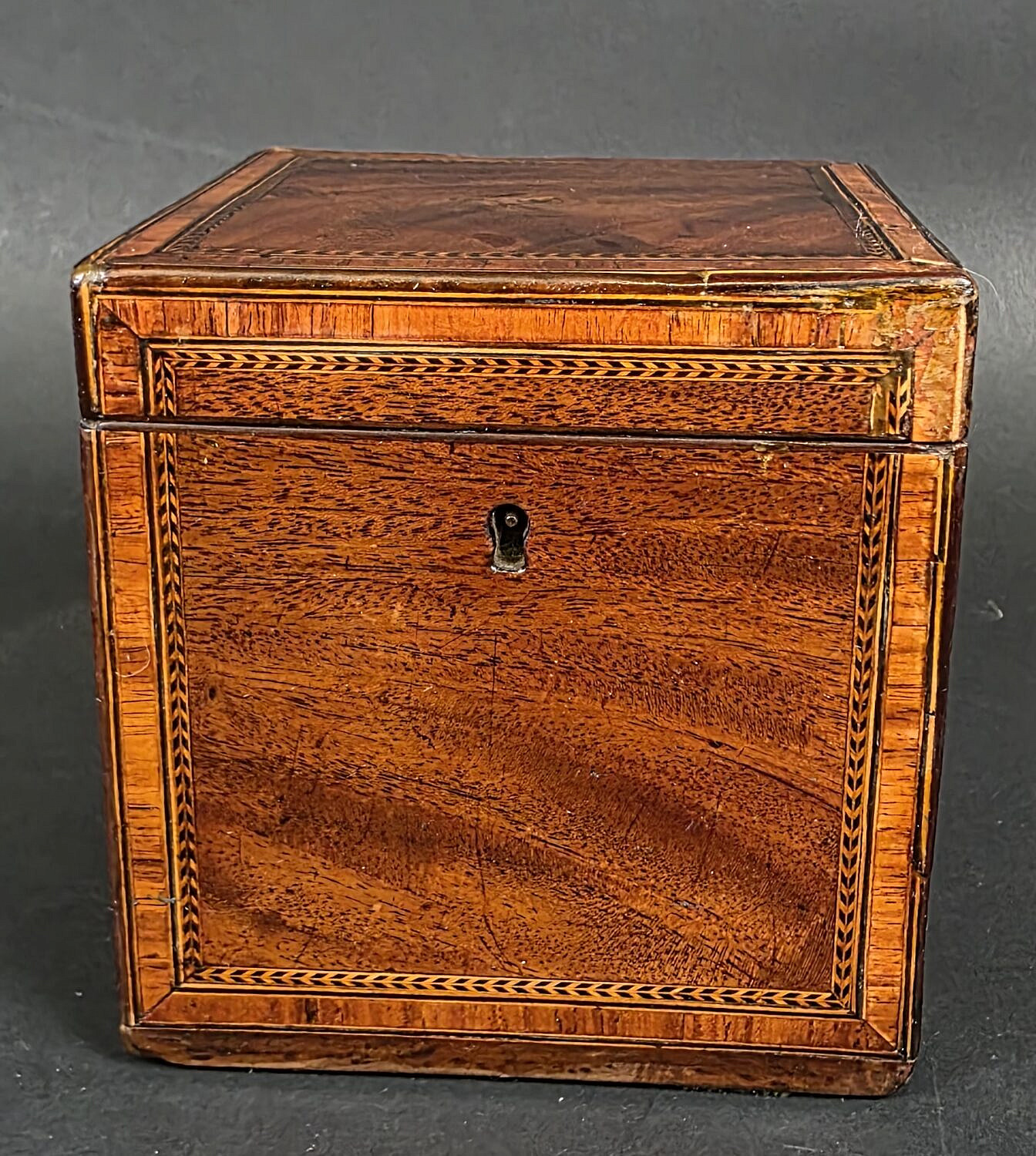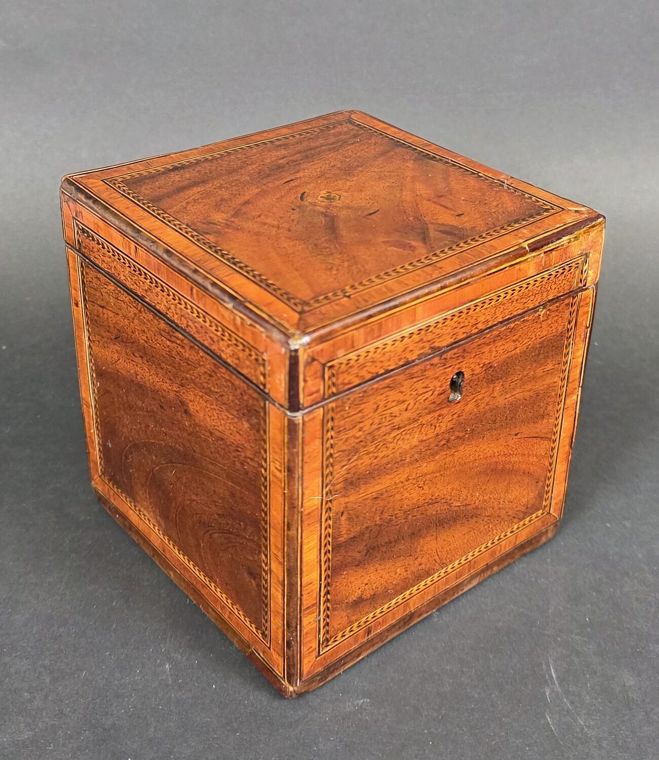 Antique British Regency Single Compartment Inlaid Tea Caddy, 19th century