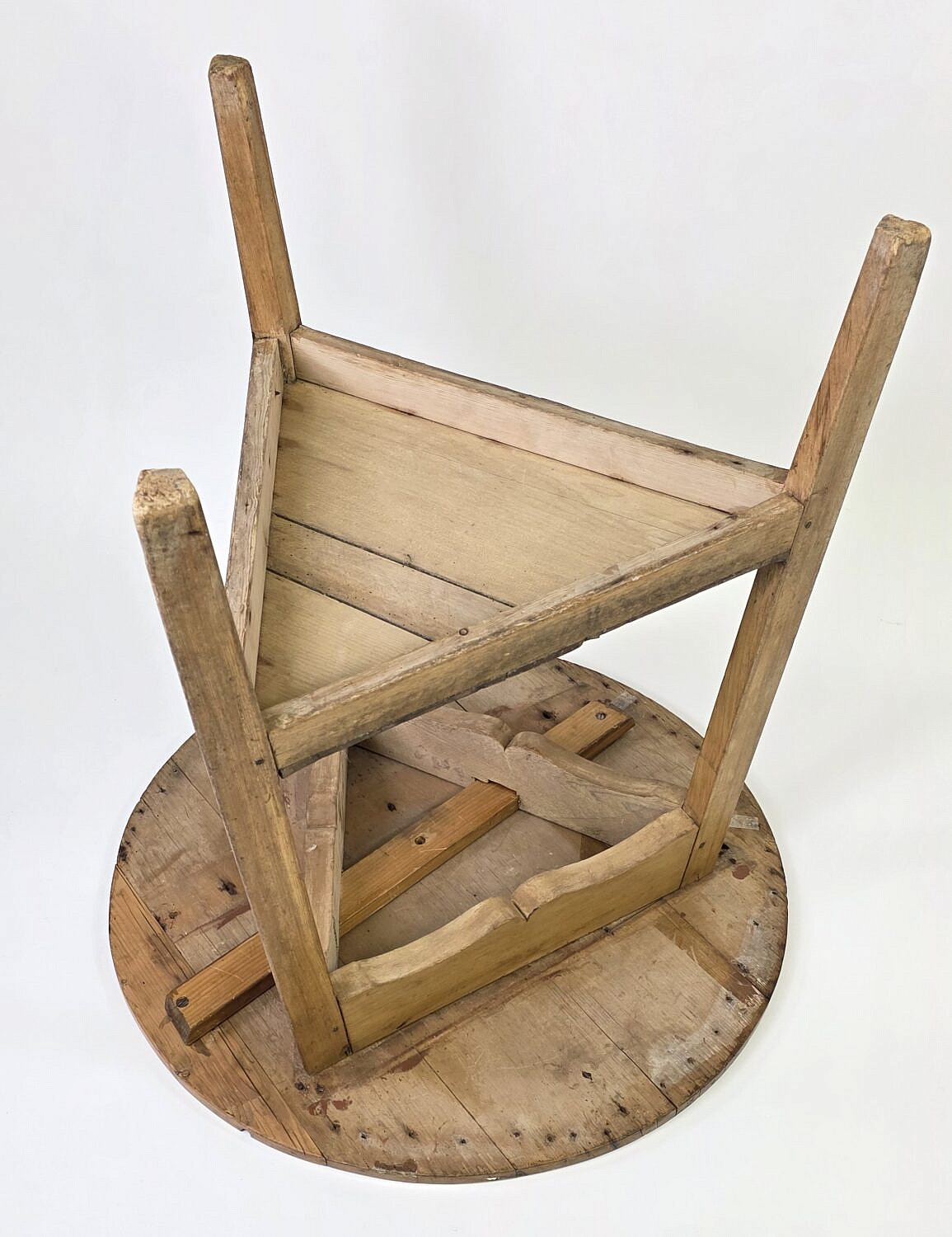 Antique English Pine Cricket Pub Table, 19th century