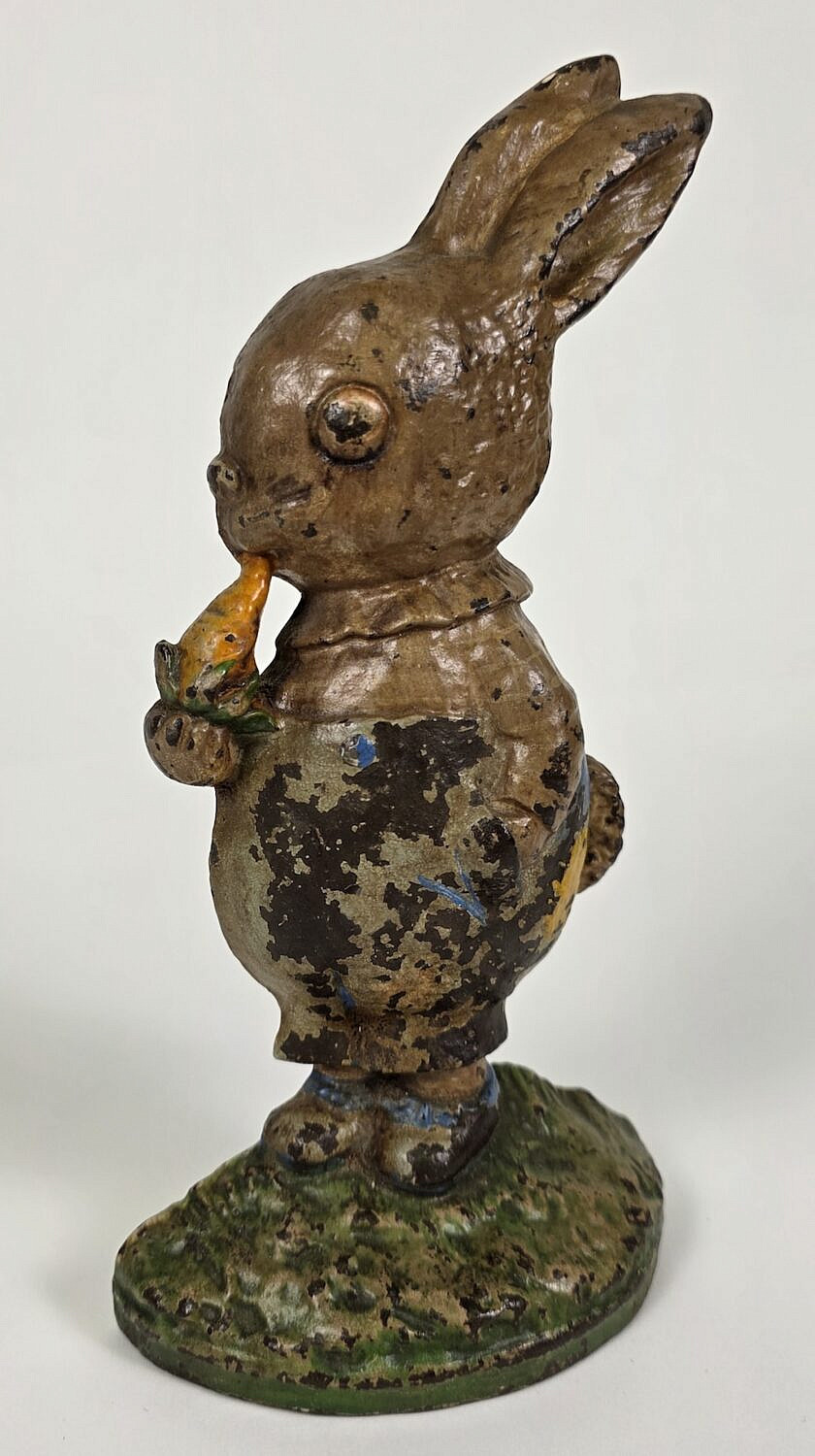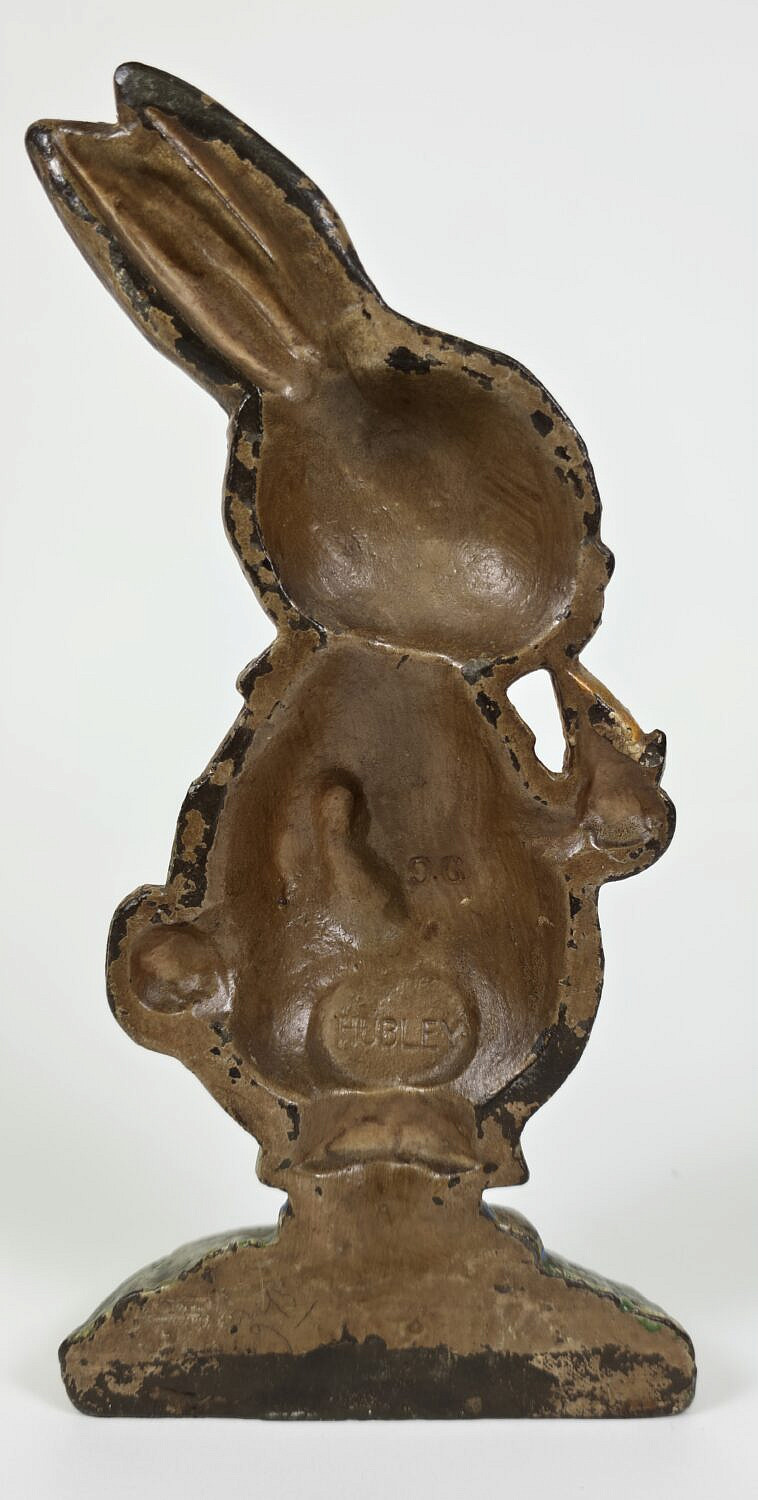 Antique Hubley Peter Rabbit Cast Iron Doorstop, circa 1920s, in original paint, marked on reverse, Hubley 96.