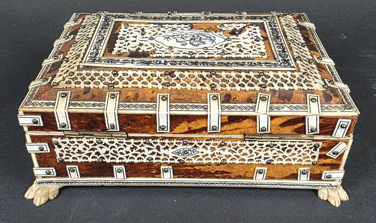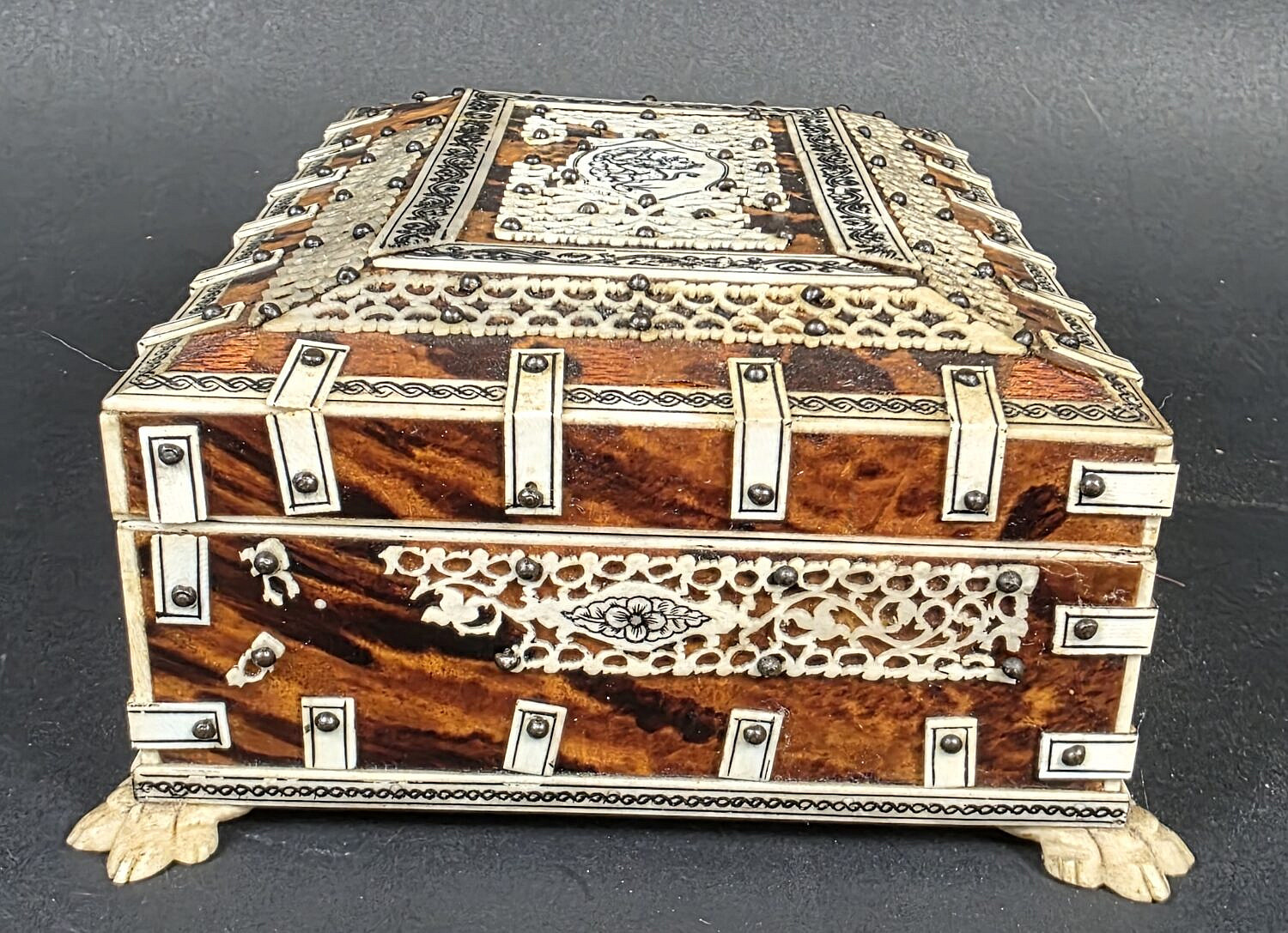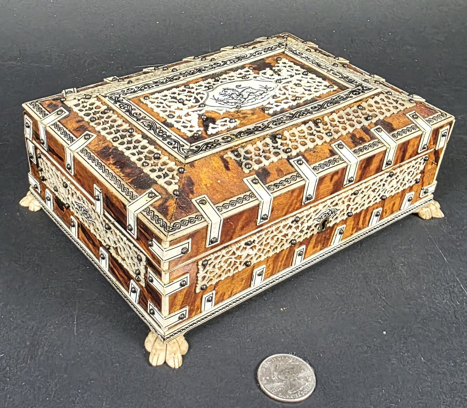 Antique Tortoiseshell and Bone British Regency Jewelry Box 19th century