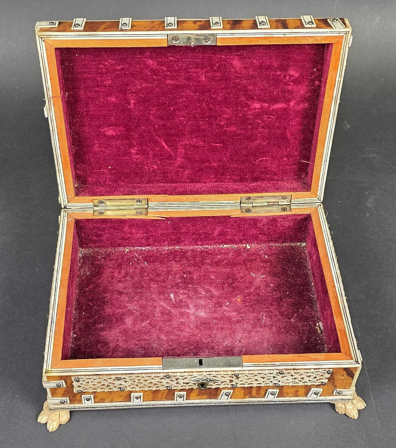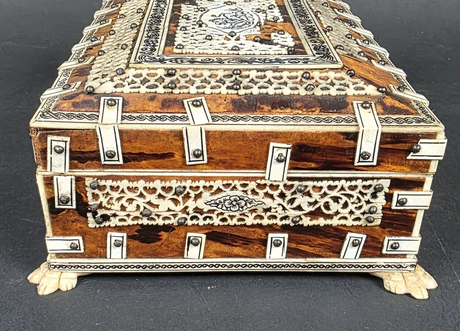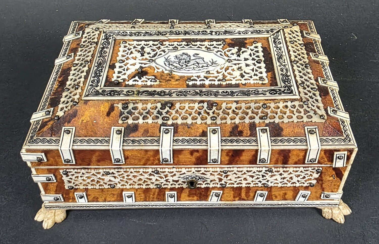 Antique Tortoiseshell and Bone British Regency Jewelry Box 19th century