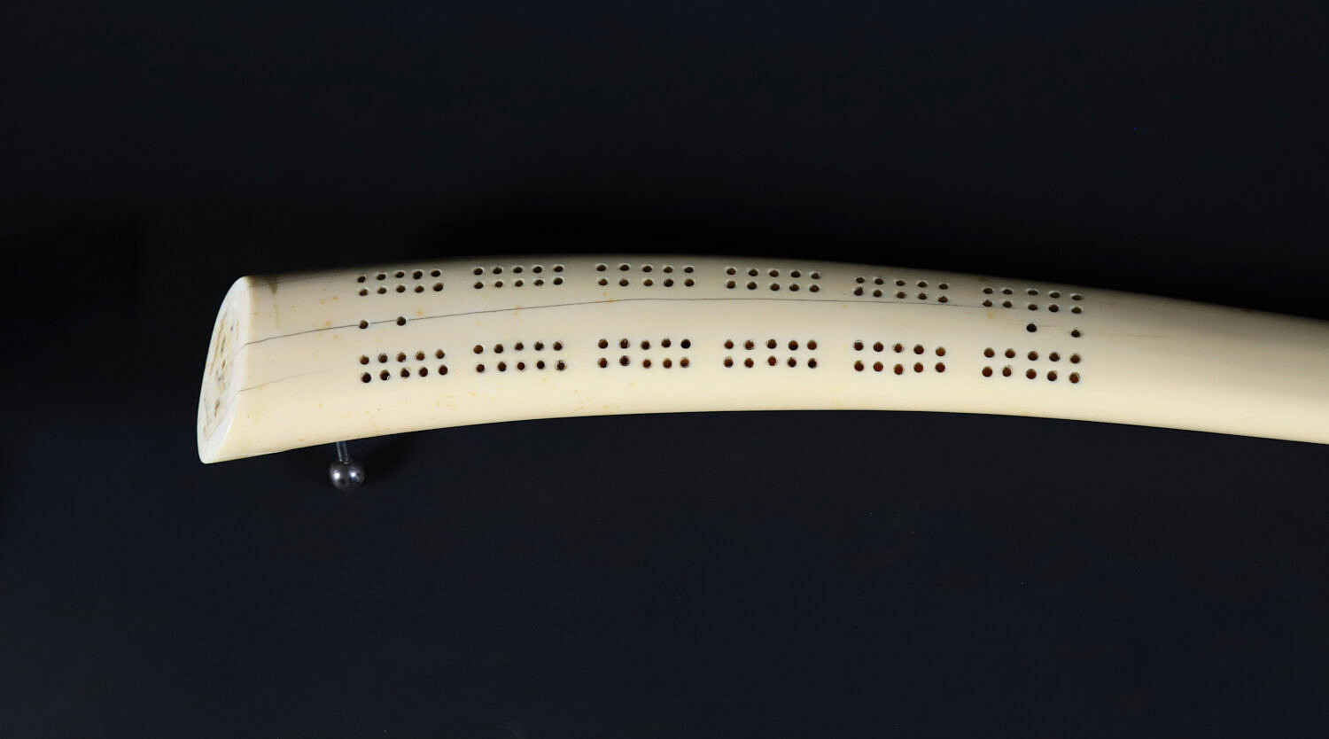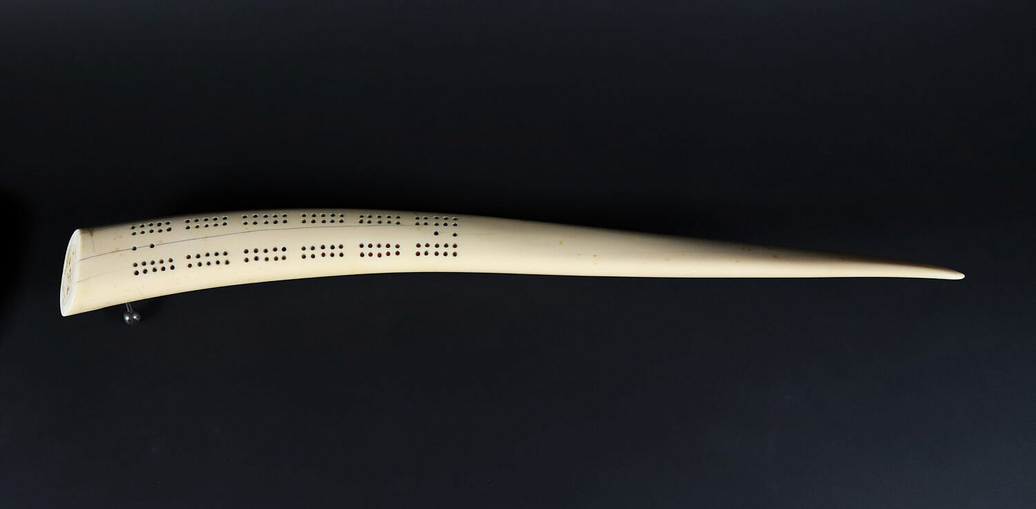 Antique Walrus Tusk Cribbage Board, circa 1890s
