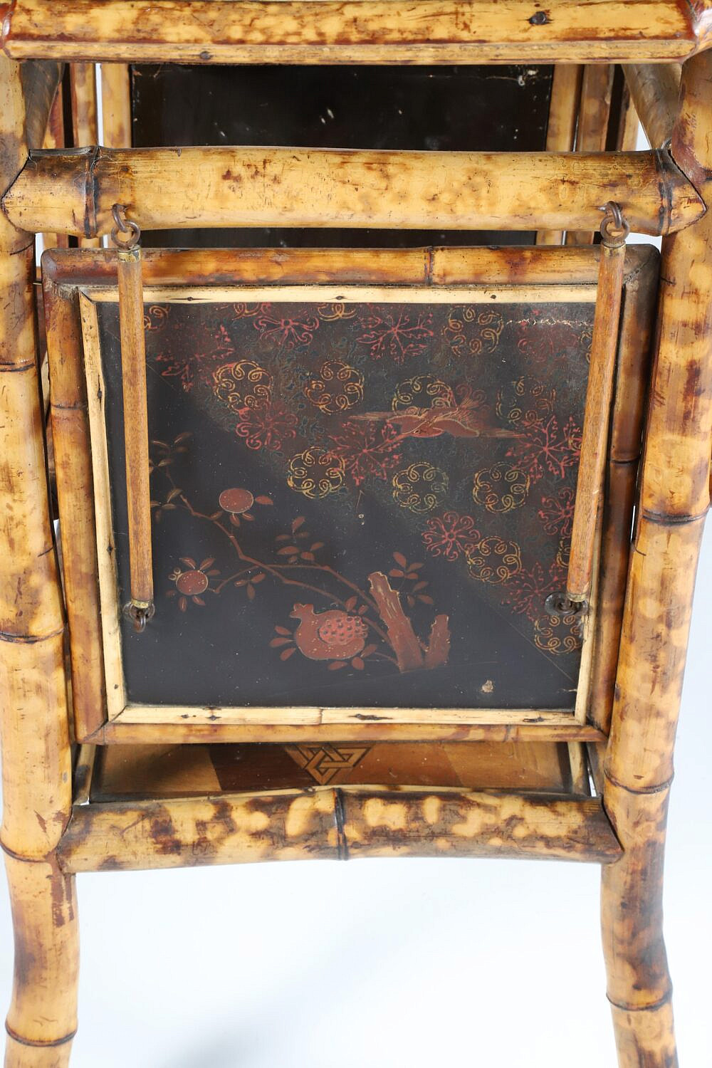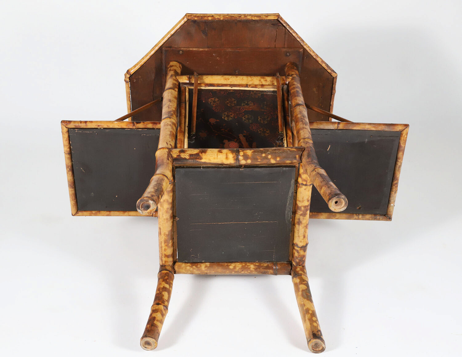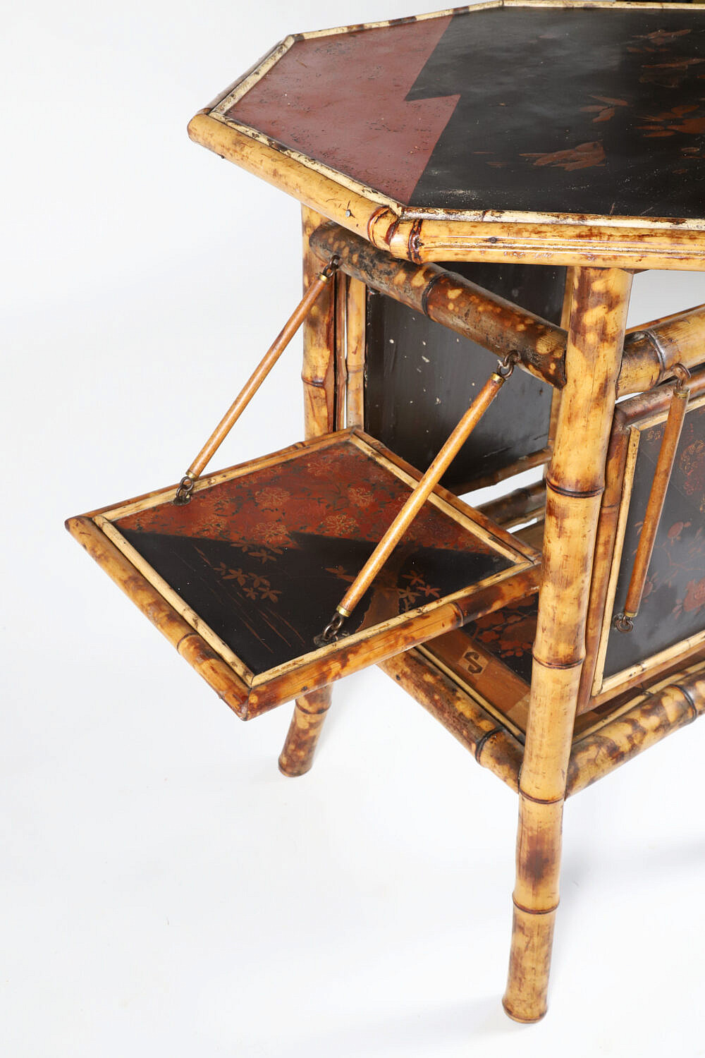 Bamboo Lacquered Occasional Table, 19th Century, octagonal top above four retractible shelves