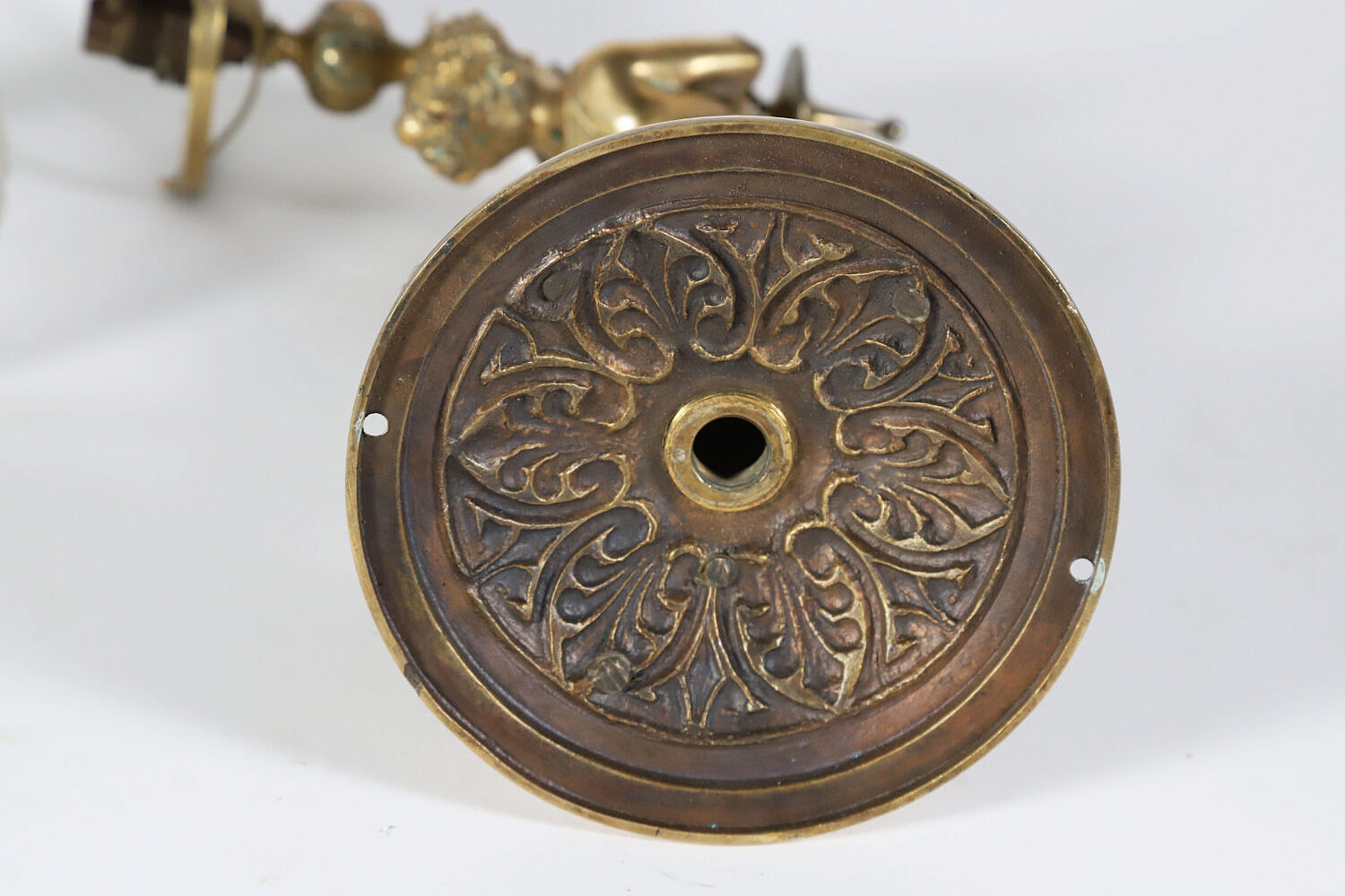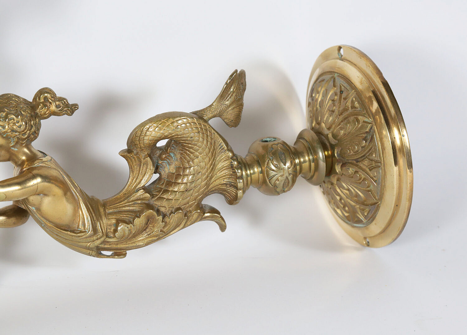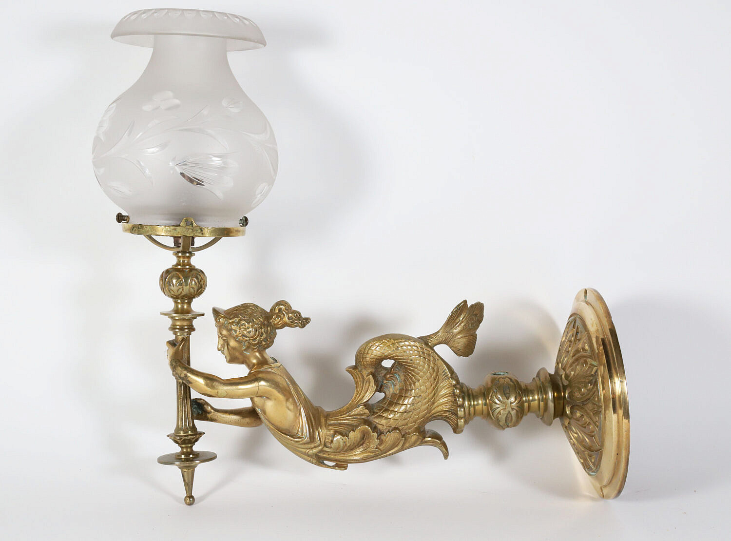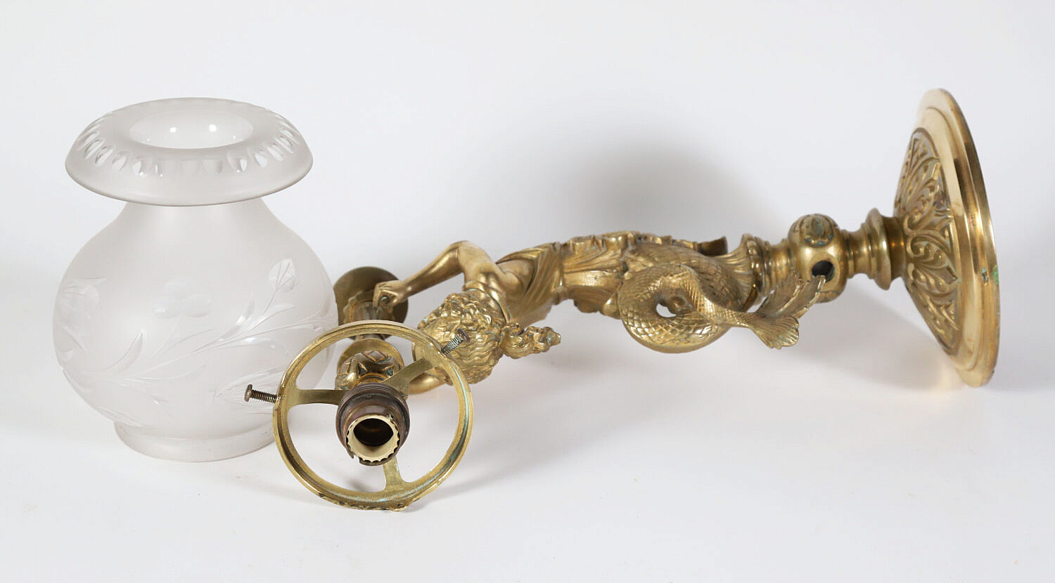 Brass Wall Sconce in the Form of a Mermaid Holding a Shade, American, circa 1850-1860
