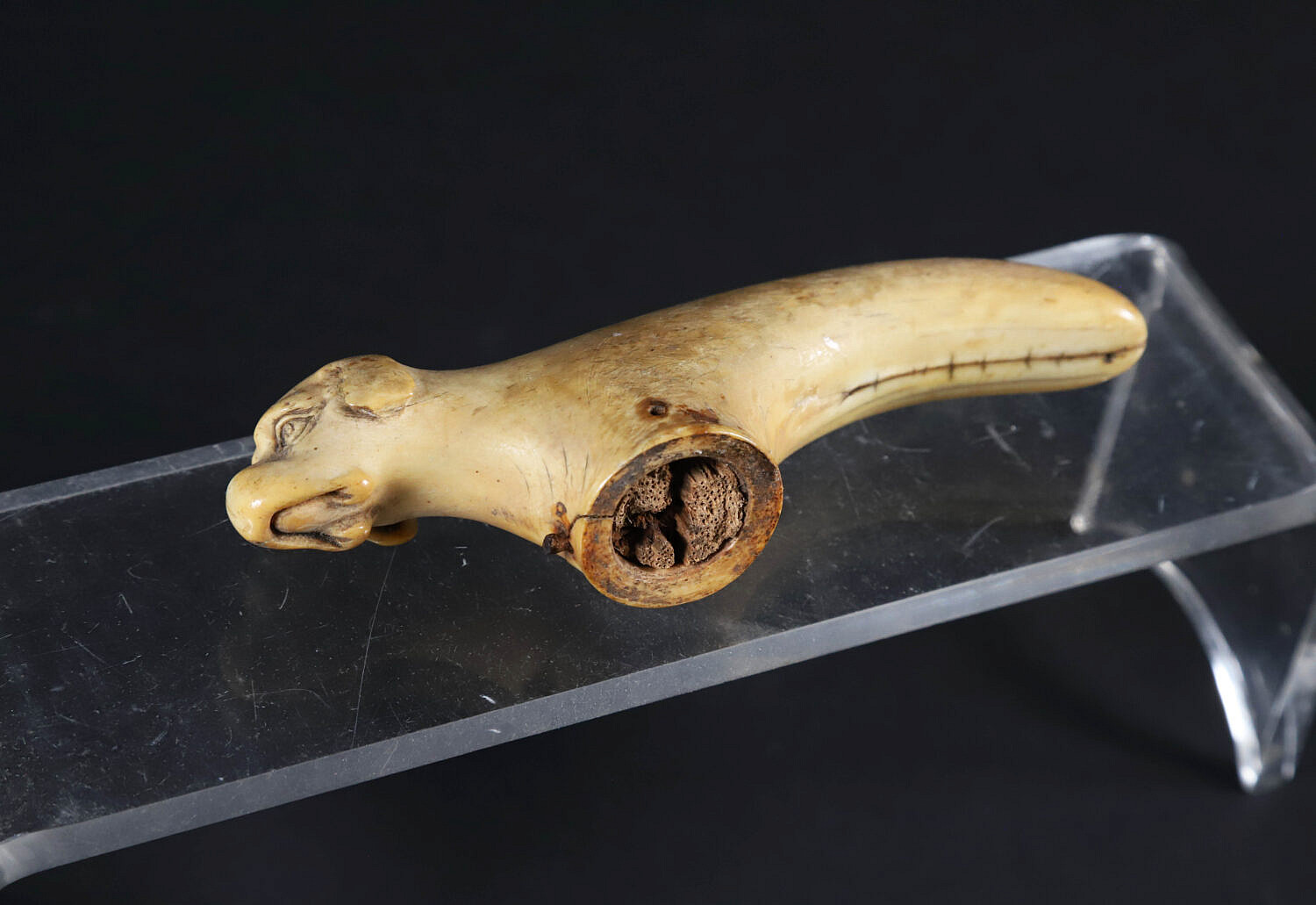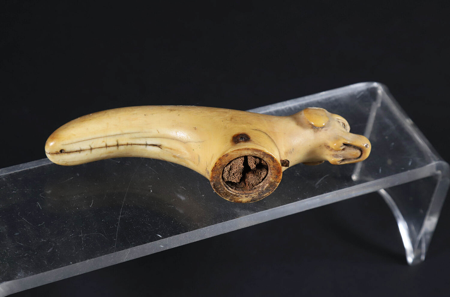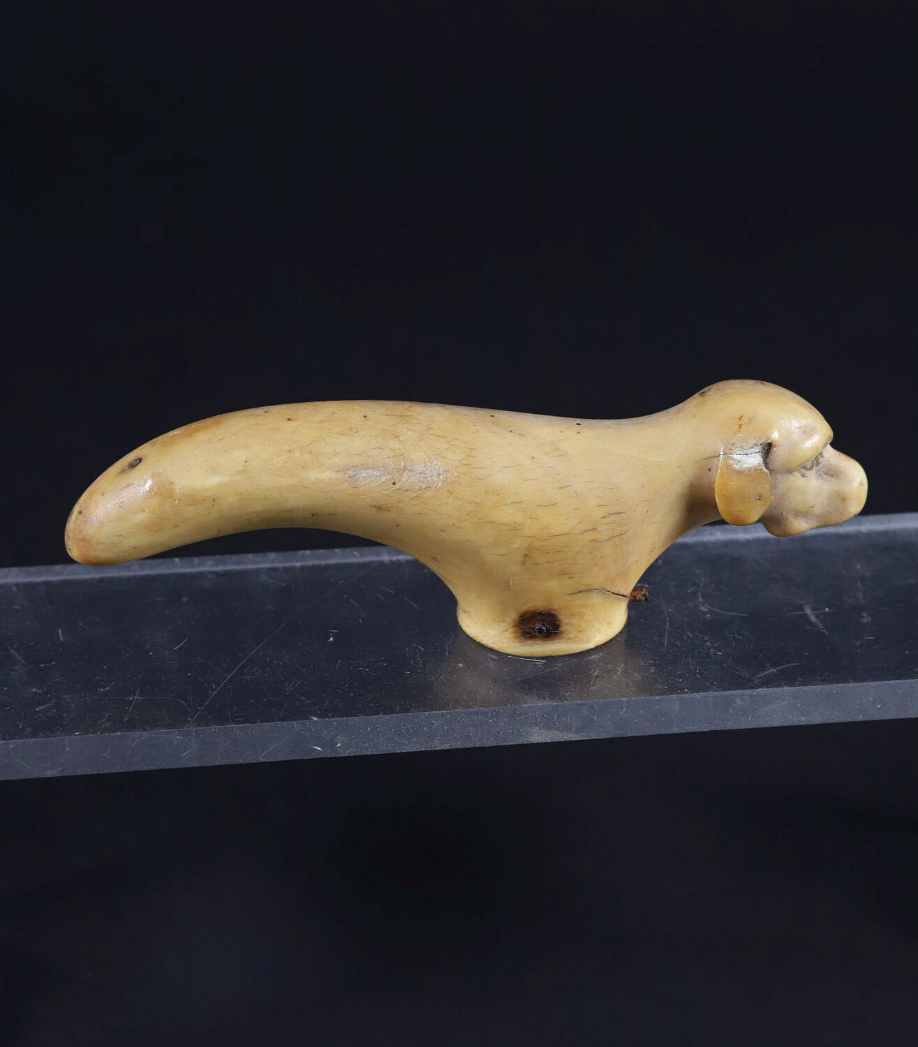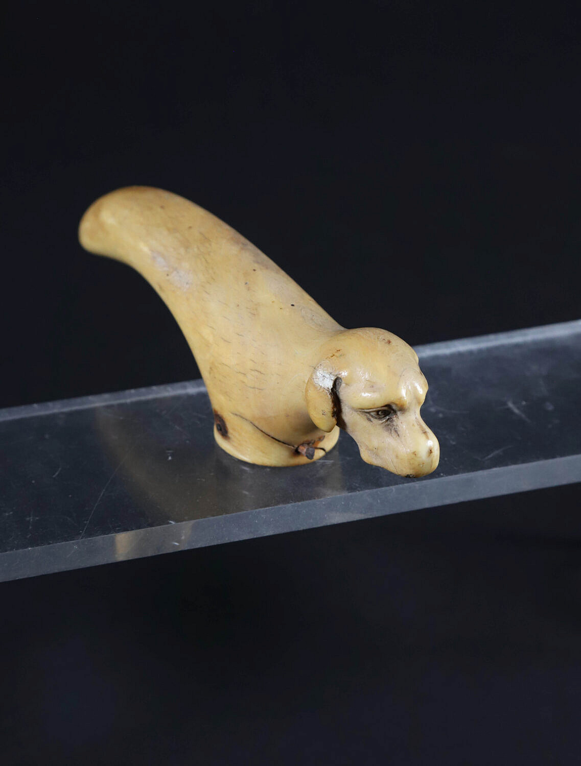 Carved Antique Ivory Cane Handle in the Form of a Dog, 19th Century