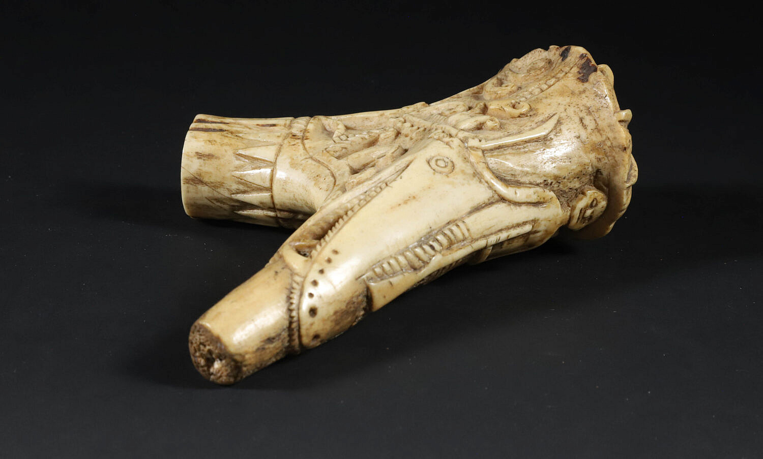 Carved Stag Horn Pipe with Bas Relief Hunter and Prey Decoration Consign Now DeptDecorative ArtsSize5 in. x 3.5 in. Carved Stag Horn Pipe with Bas Relief Hunter and Prey Decoration 5 in. x 3.5 in. Please note that this auction has ended. Click here for an overview of this auction.