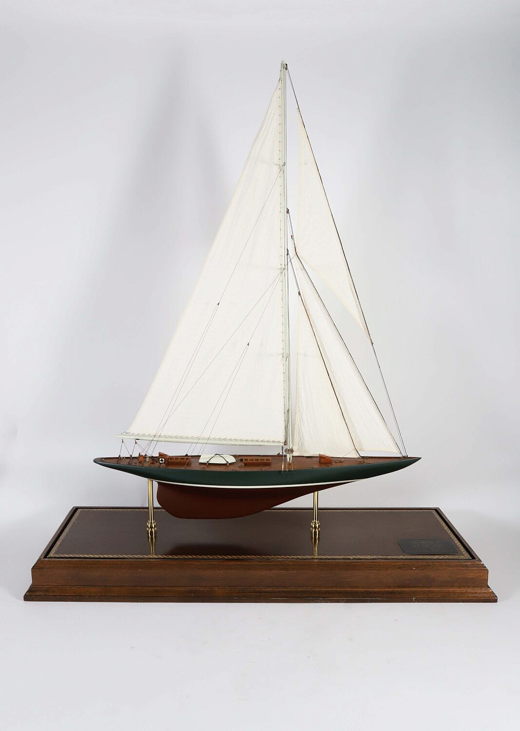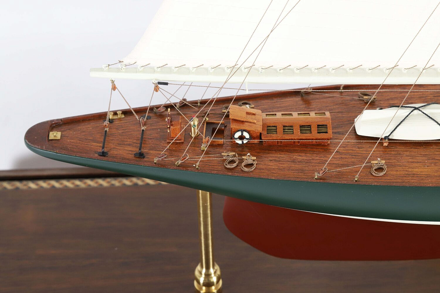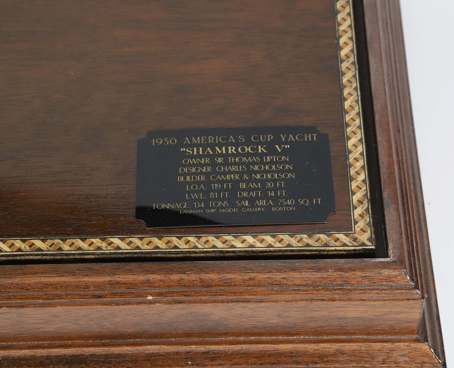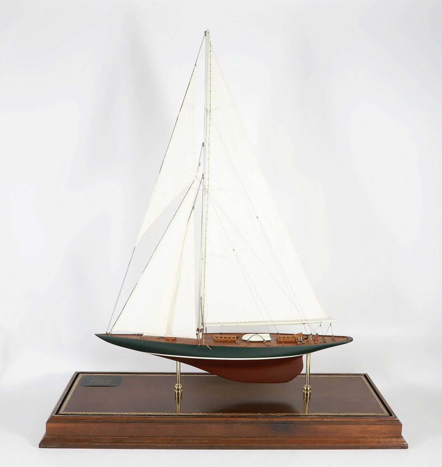 Cased Model of the 1930s America’s Cup Yacht “Shamrock V”, Owner: Sir Tomas Upton, Designer: Camper and Nicholson and hand crafted by the Lannan Ship Model Gallery, Boston, Massachusetts