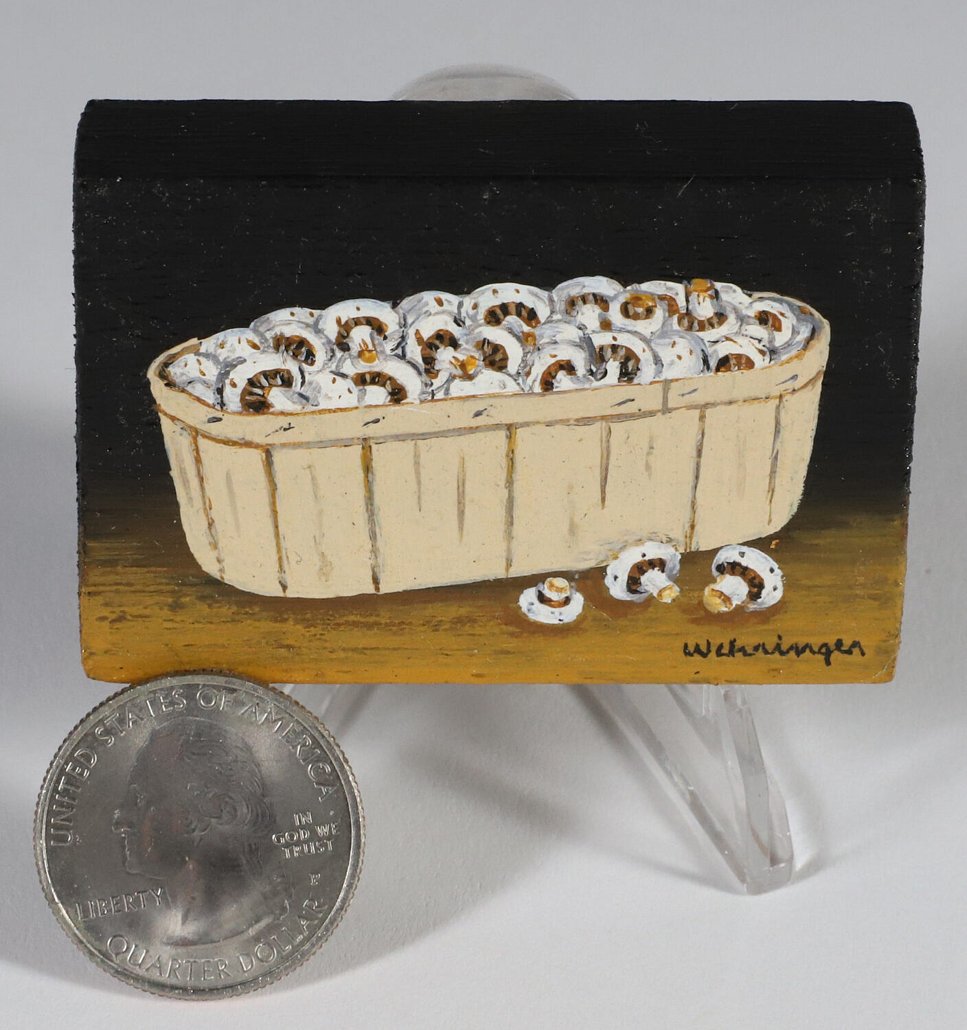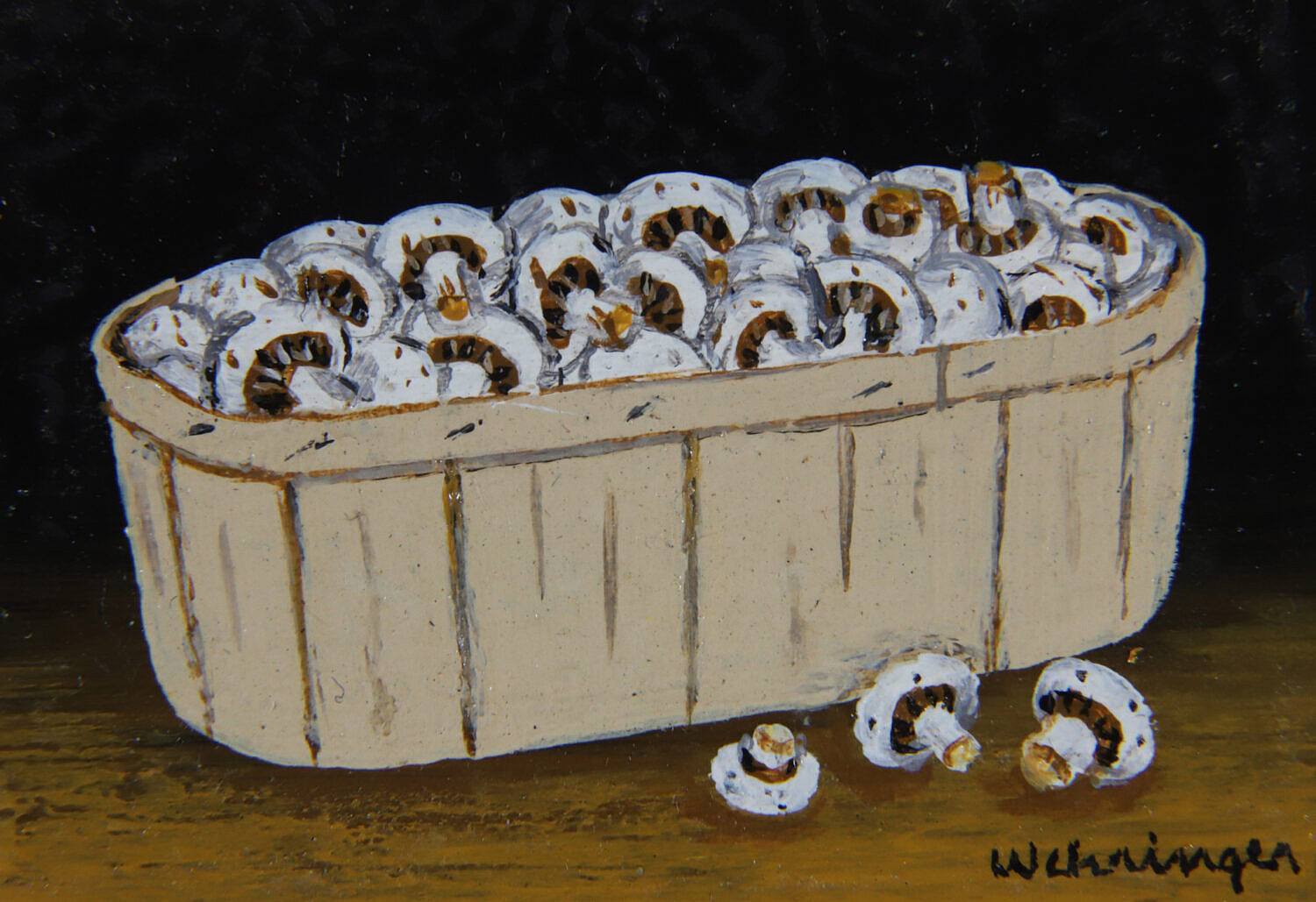 Charles Wehringer Miniature Still Life Oil on Board “Basket of Mushrooms”