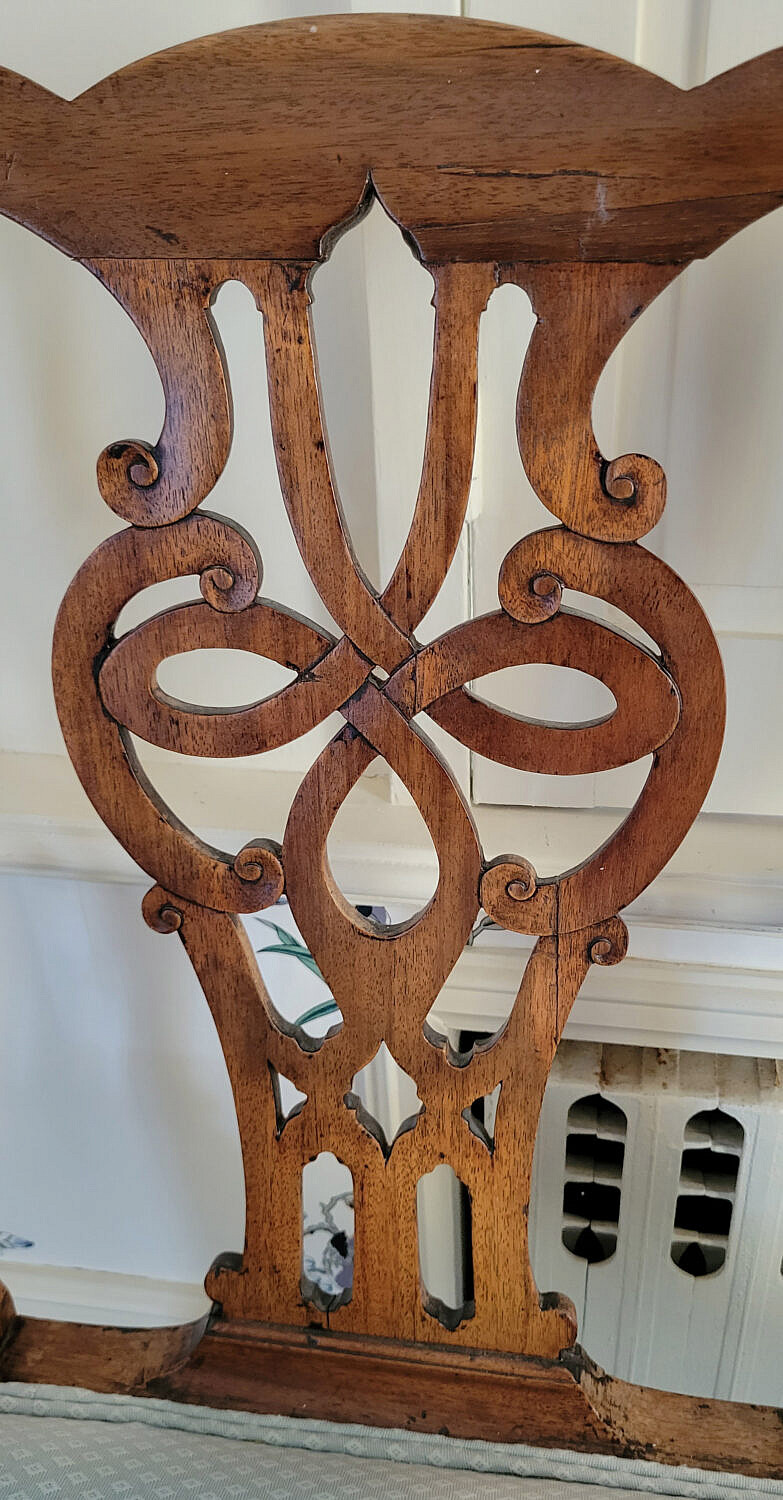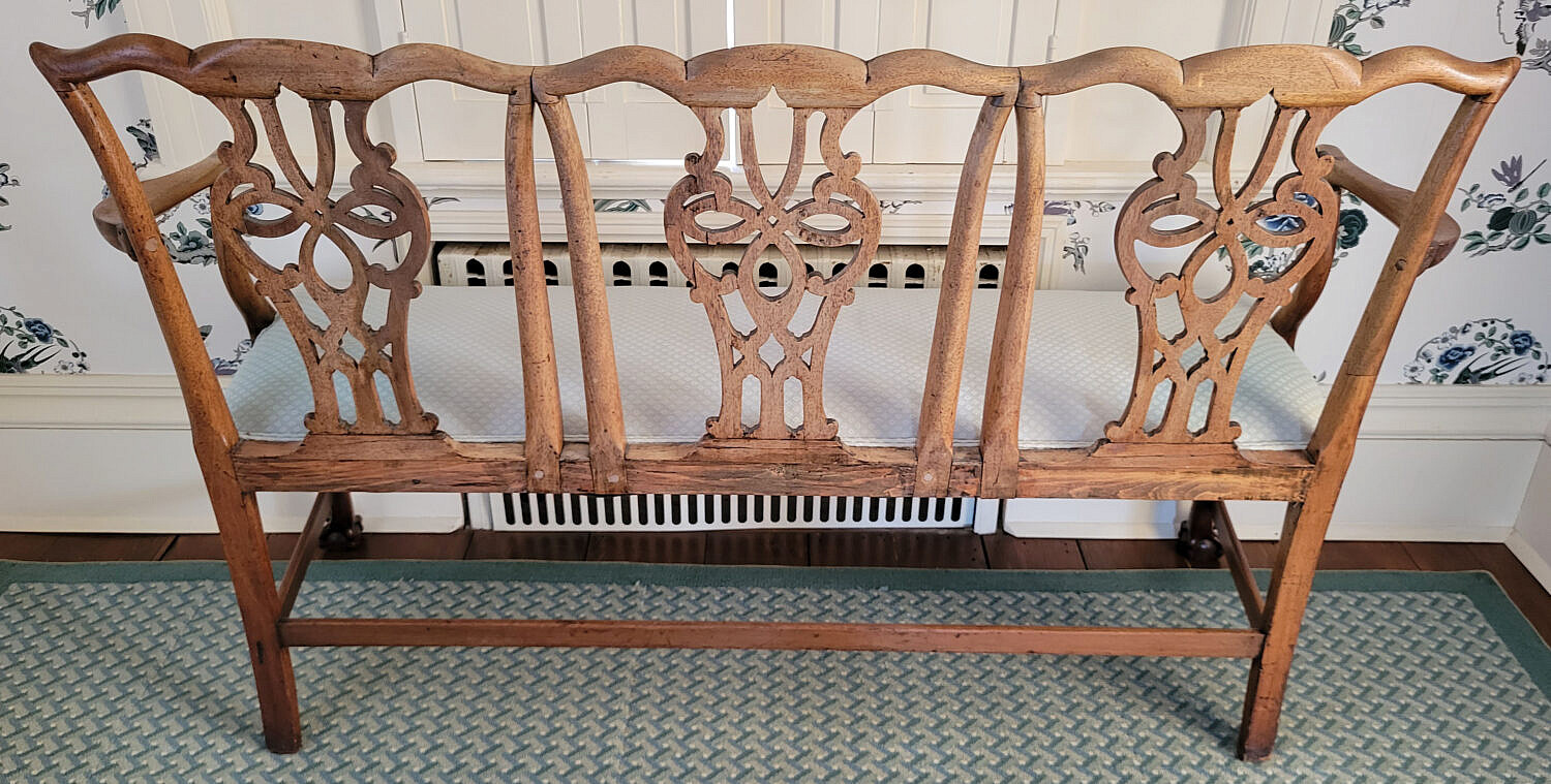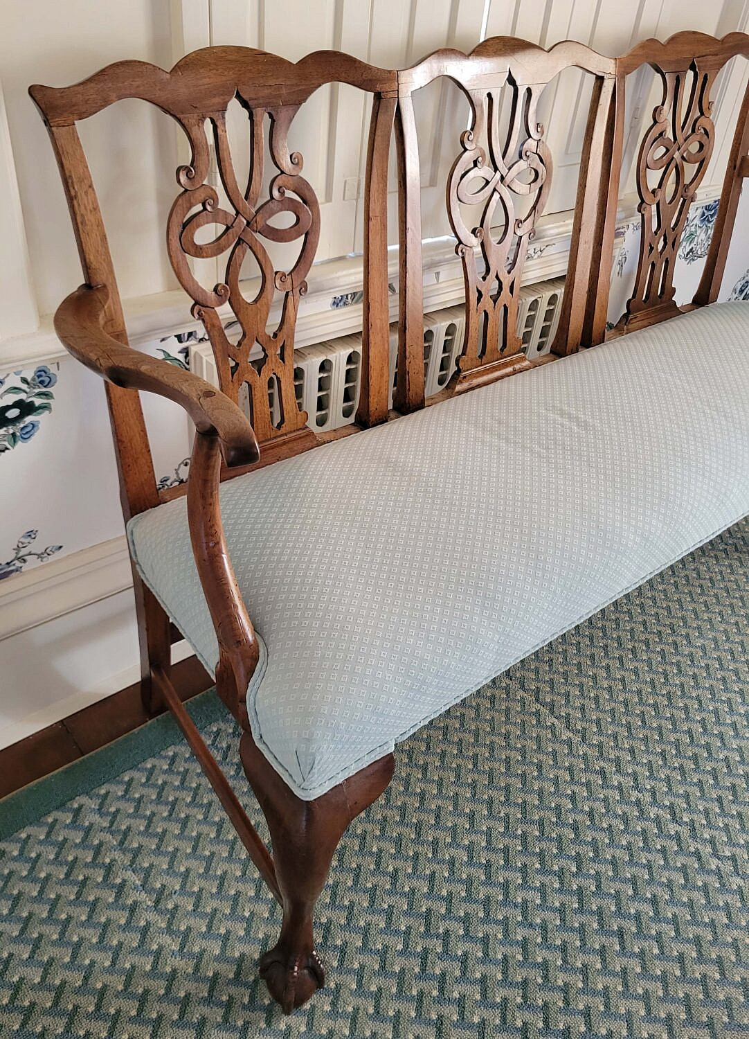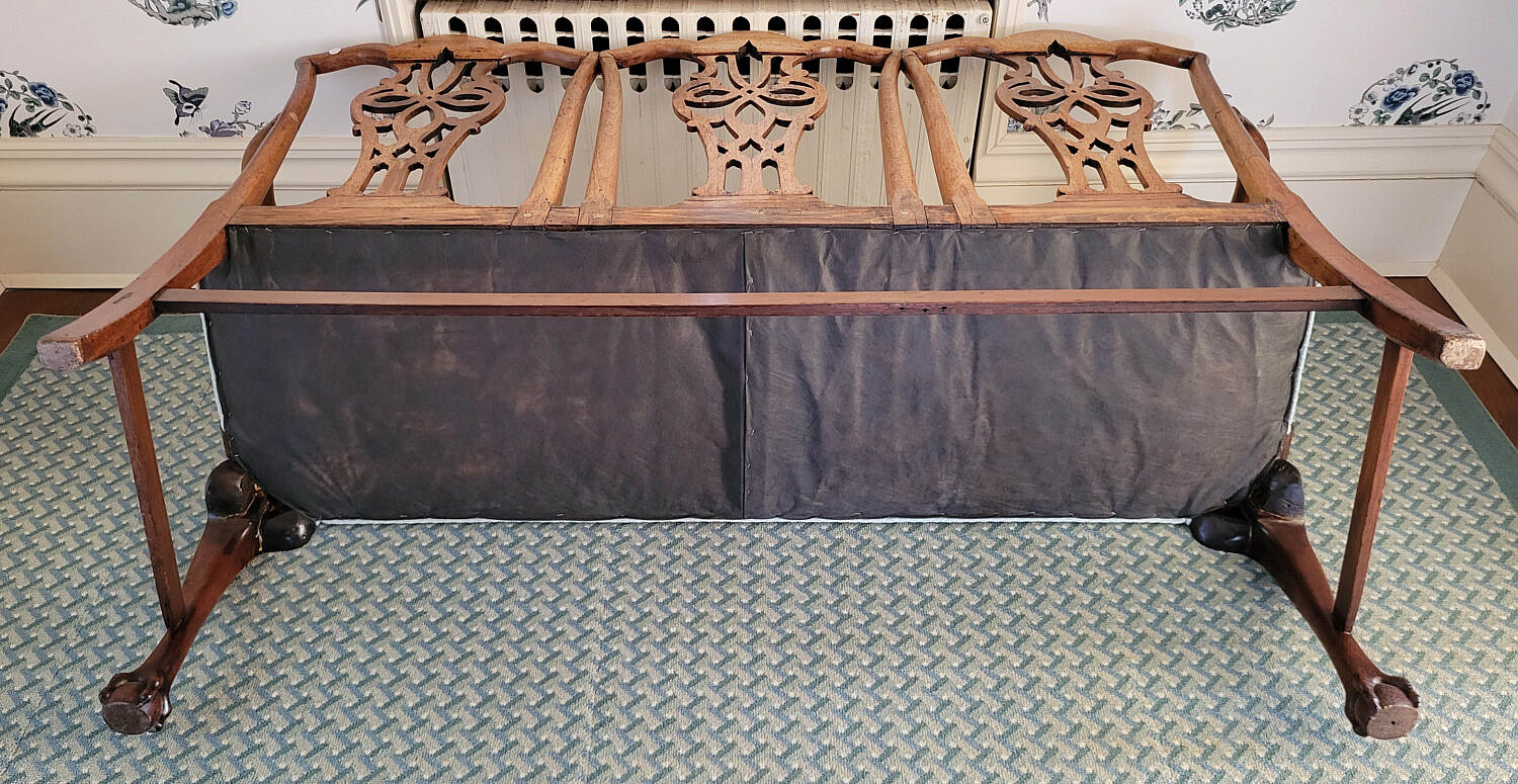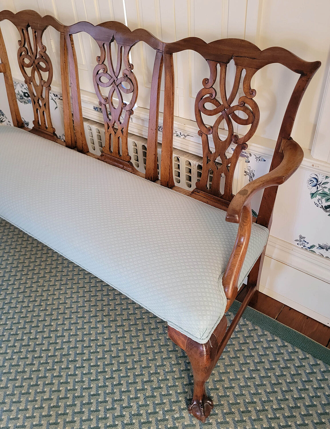Chippendale Style Triple-Back Mahogany Settee, 19th Century, upholstered seat, on ball and claw feet