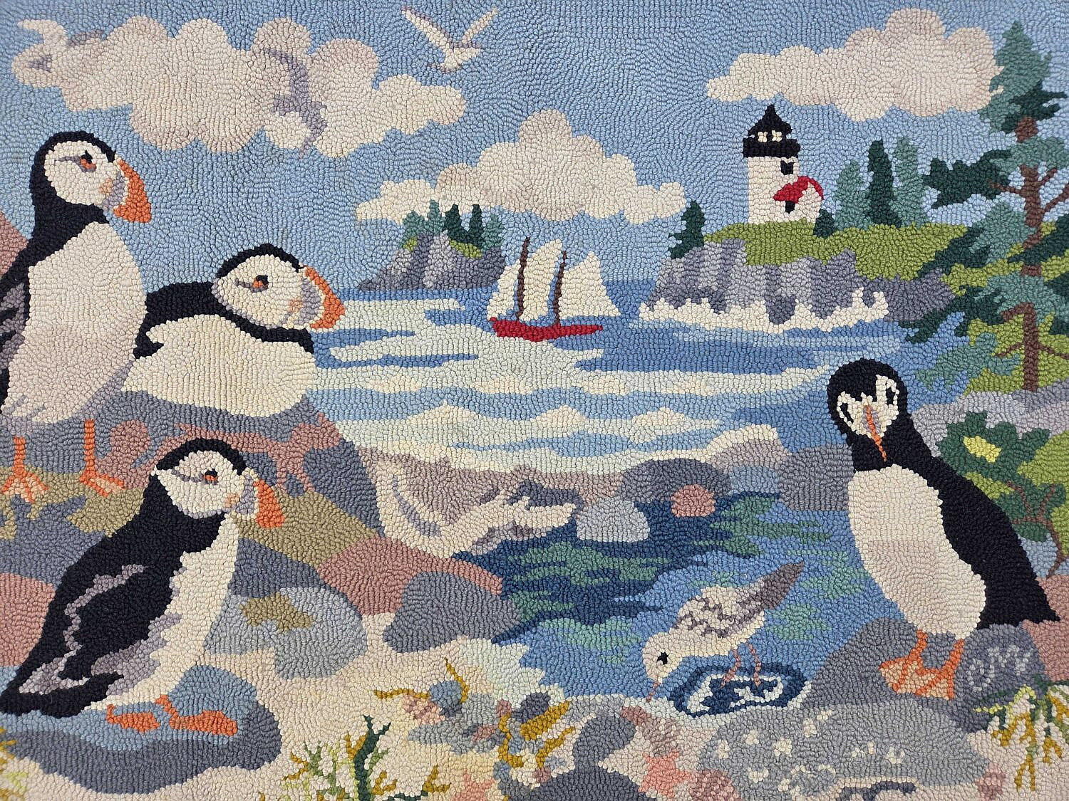Claire Murray Hooked Rug “Puffins and Curtis Island Light”