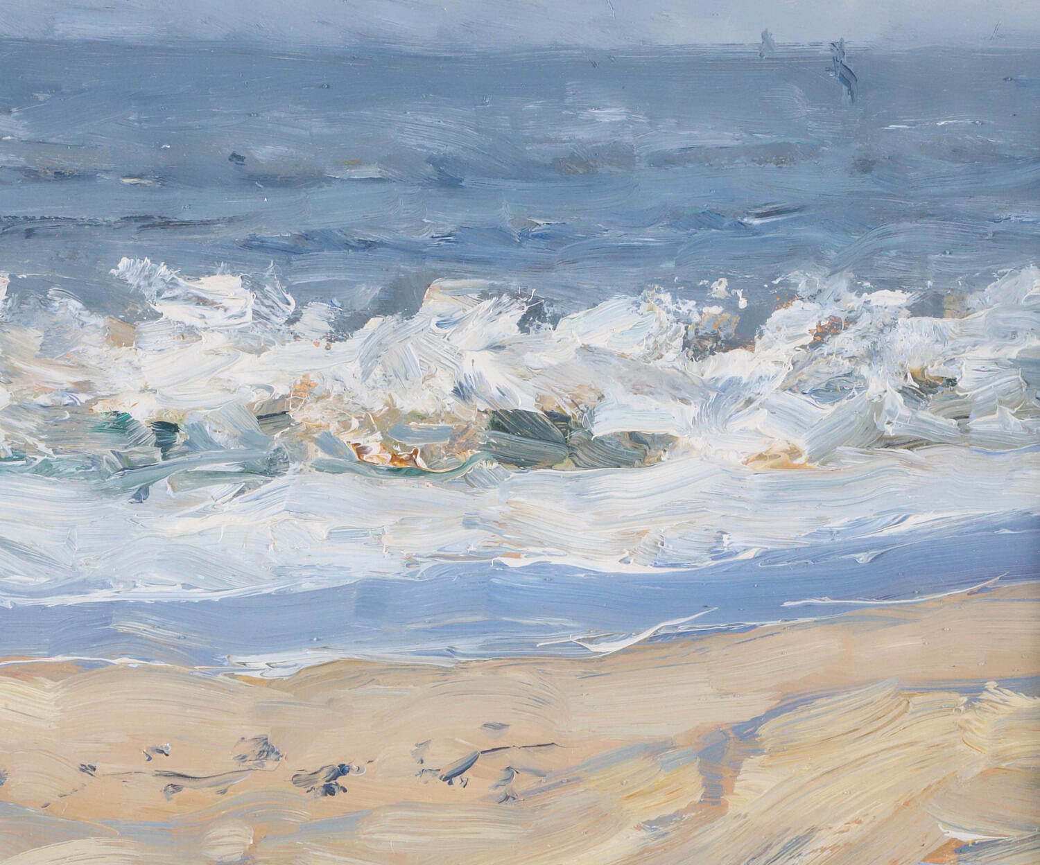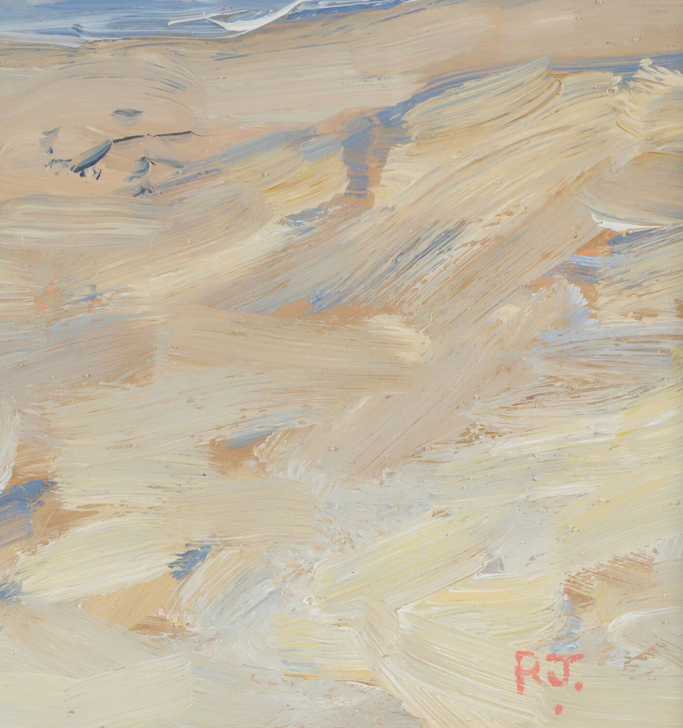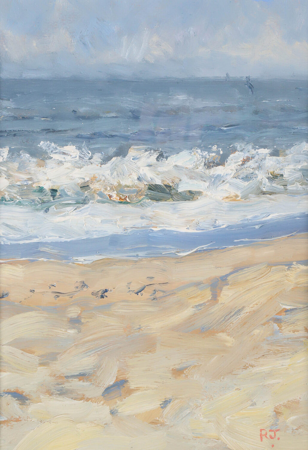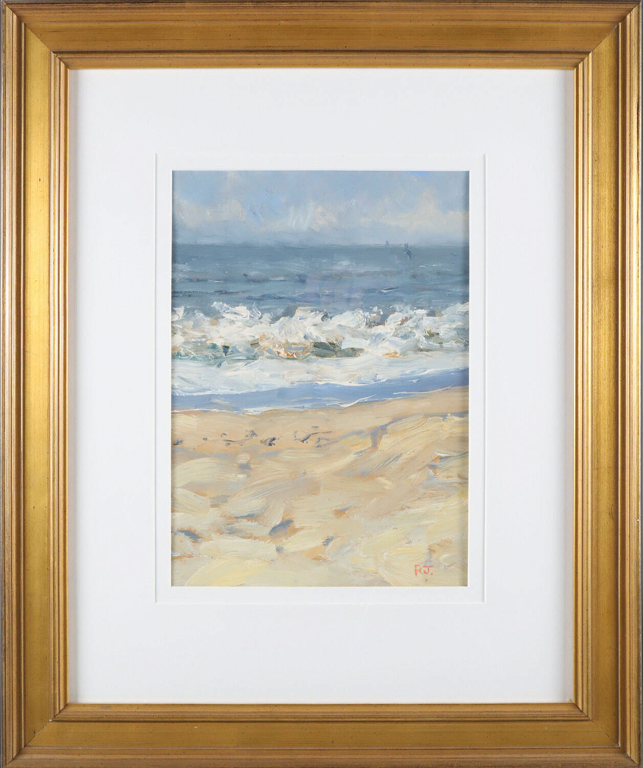 Coastal Seascape Oil Painting, initialed lower right R.J., matted within molded gilt frame