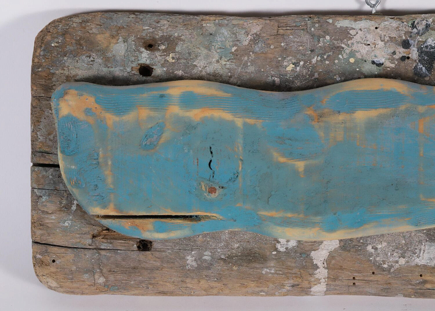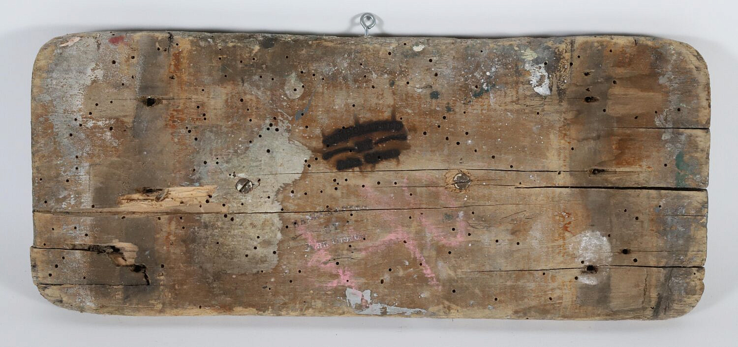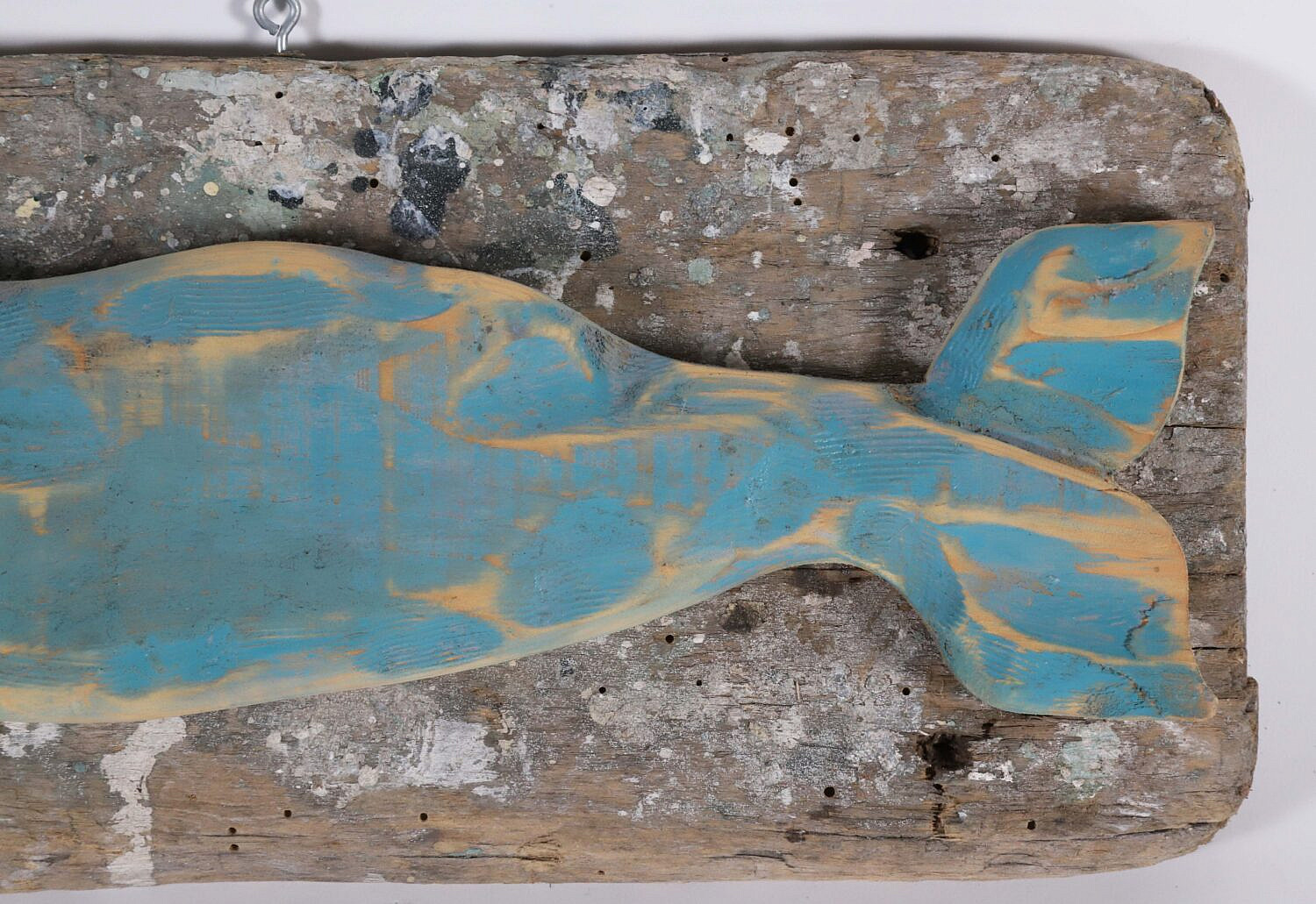 Contemporary Carved and Painted Half Body Sperm Whale on Plank by John Gibson, stamped on back: Hand Crafted by John Gibson