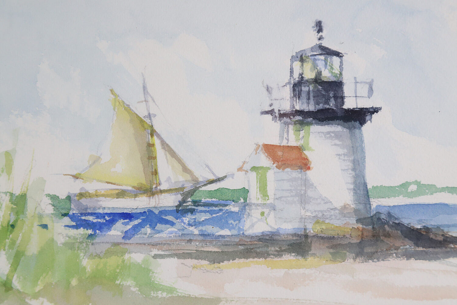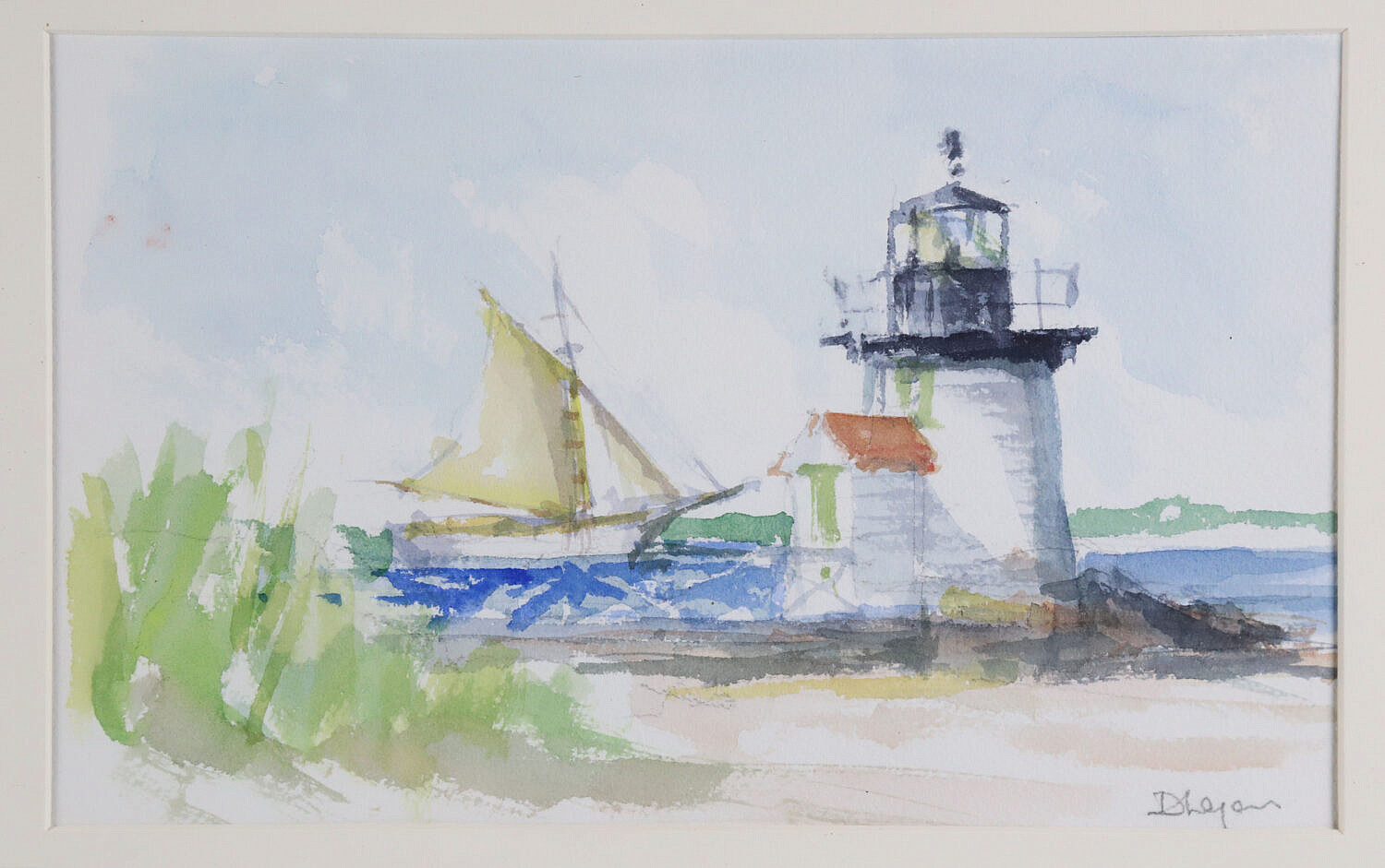 David Lazarus (British-American, b. 1952) Watercolor on Paper, “Sailboat Rounding Brant Point”, signed lower right D. Lazarus, matted and framed