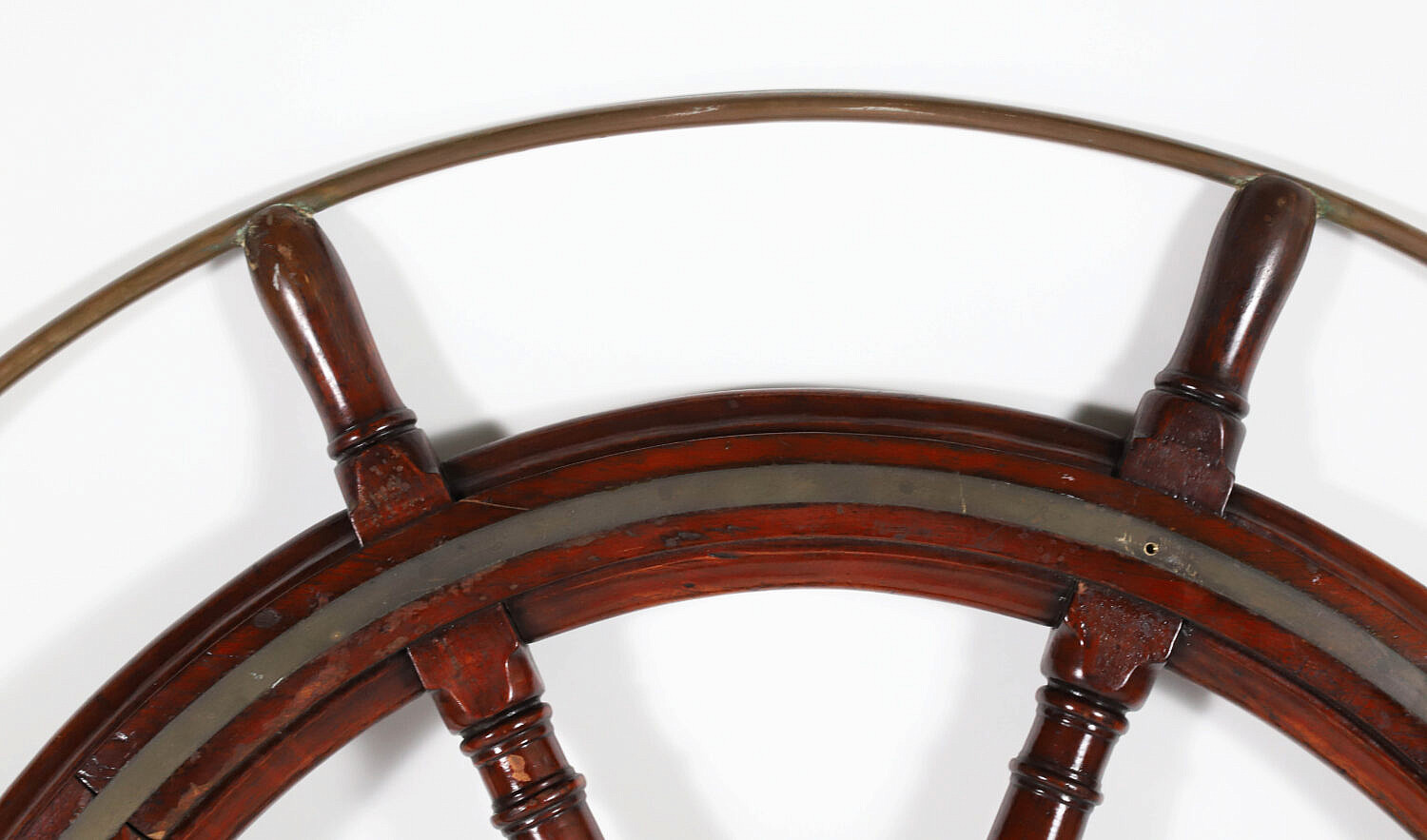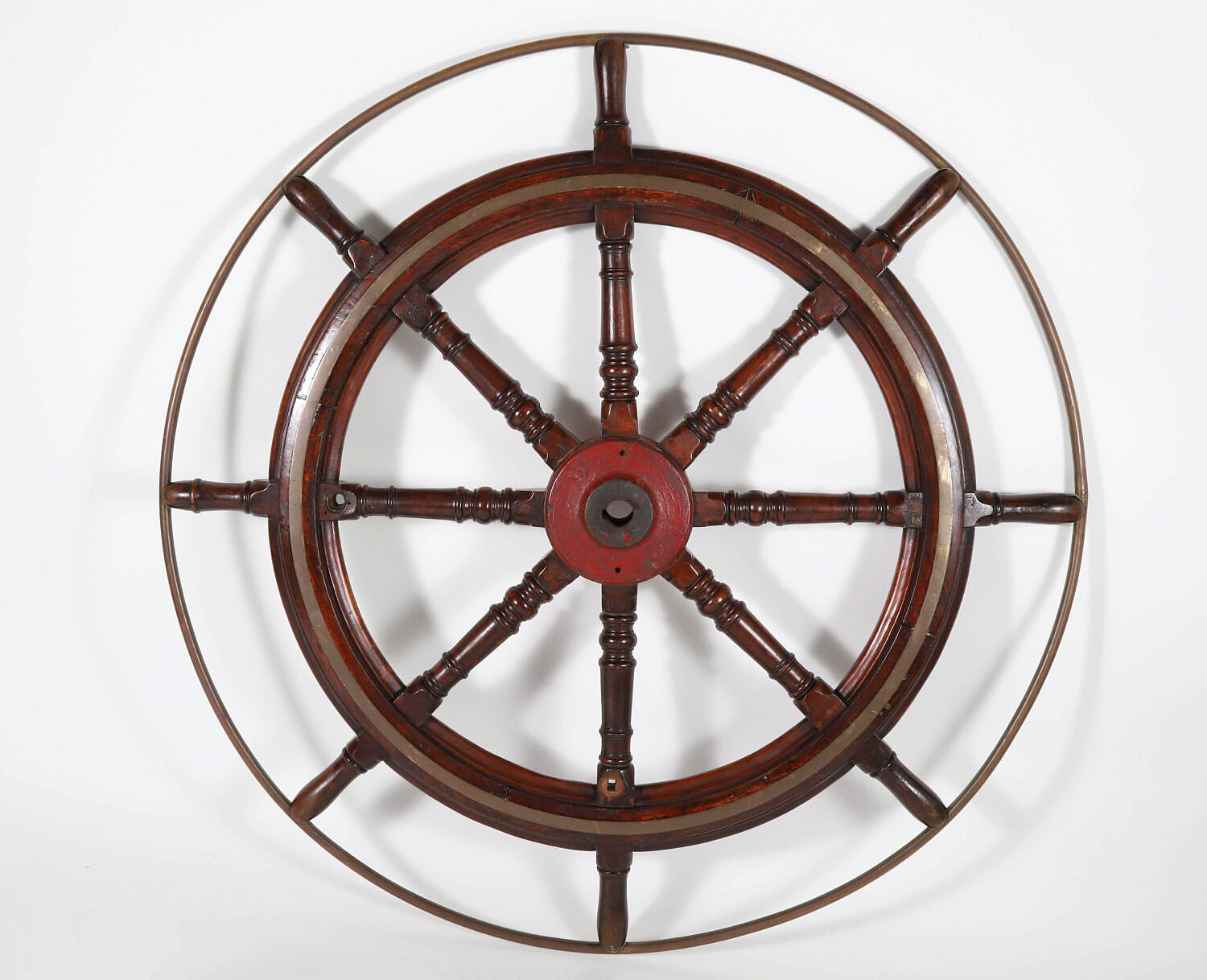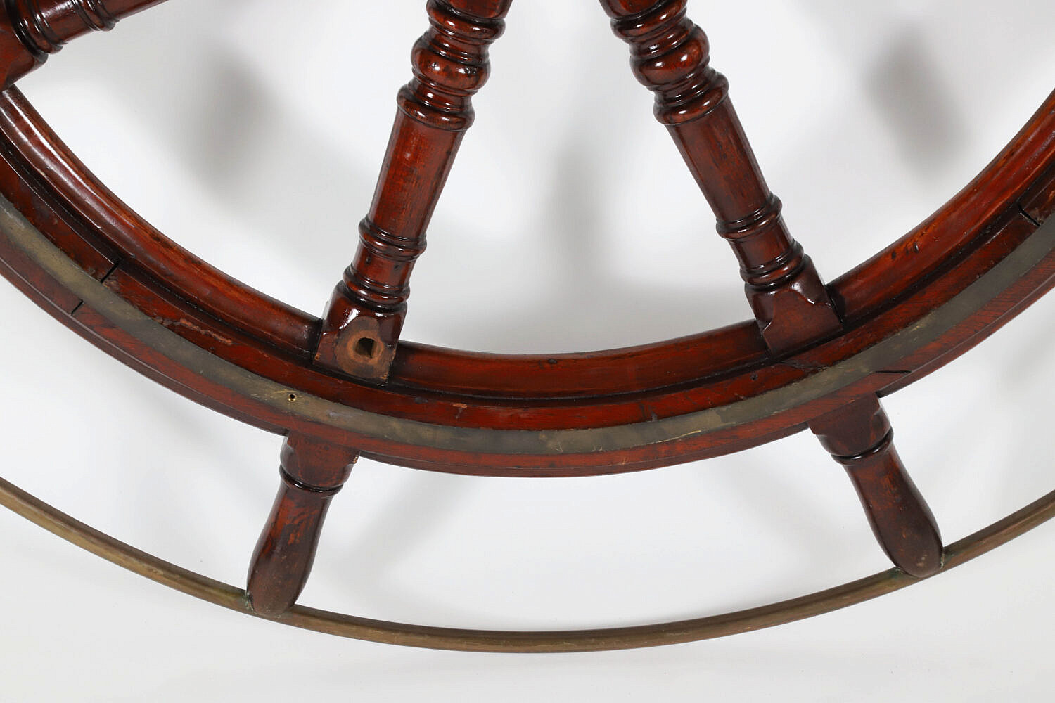 Eight Spoke Teak and Brass and Yacht Wheel with Iron Hub, 19th Century