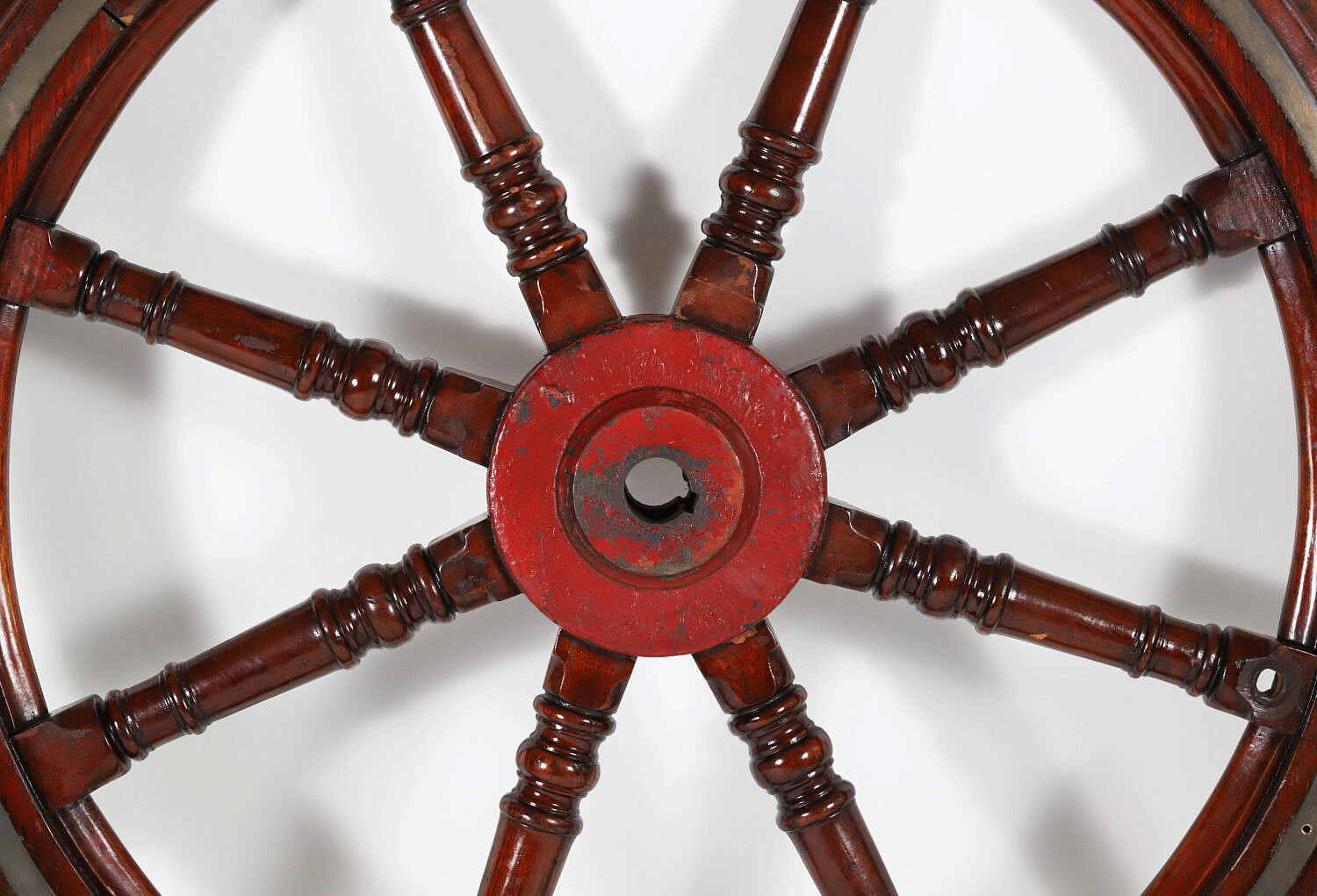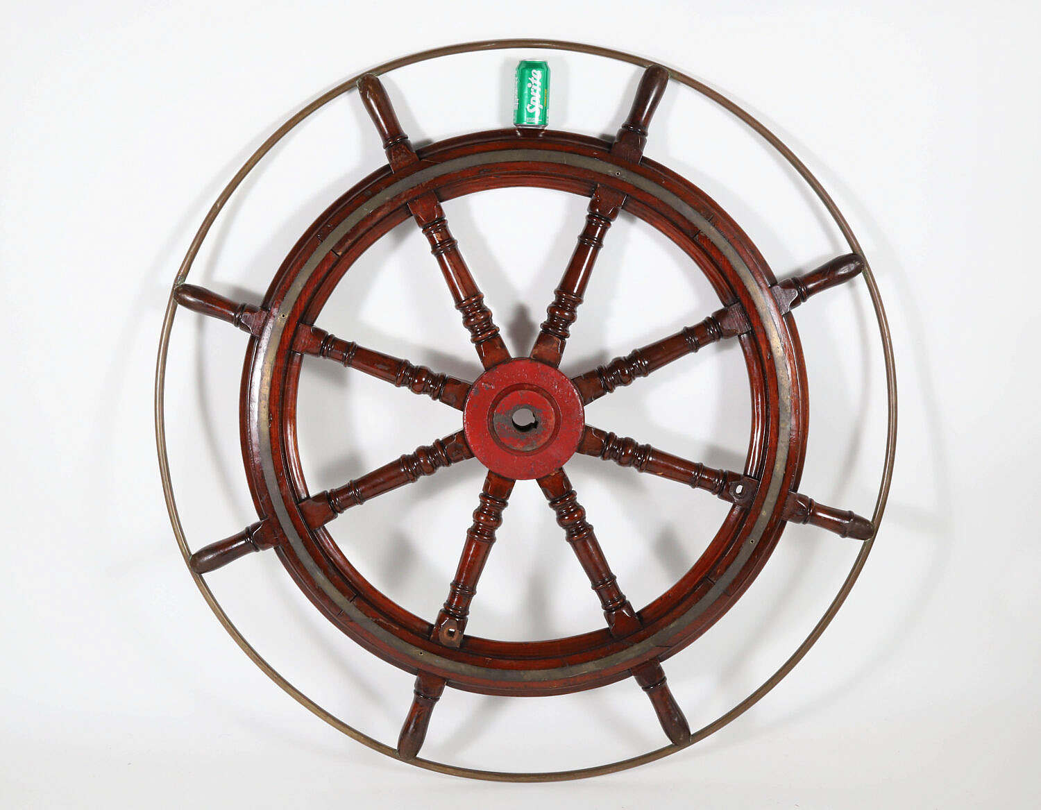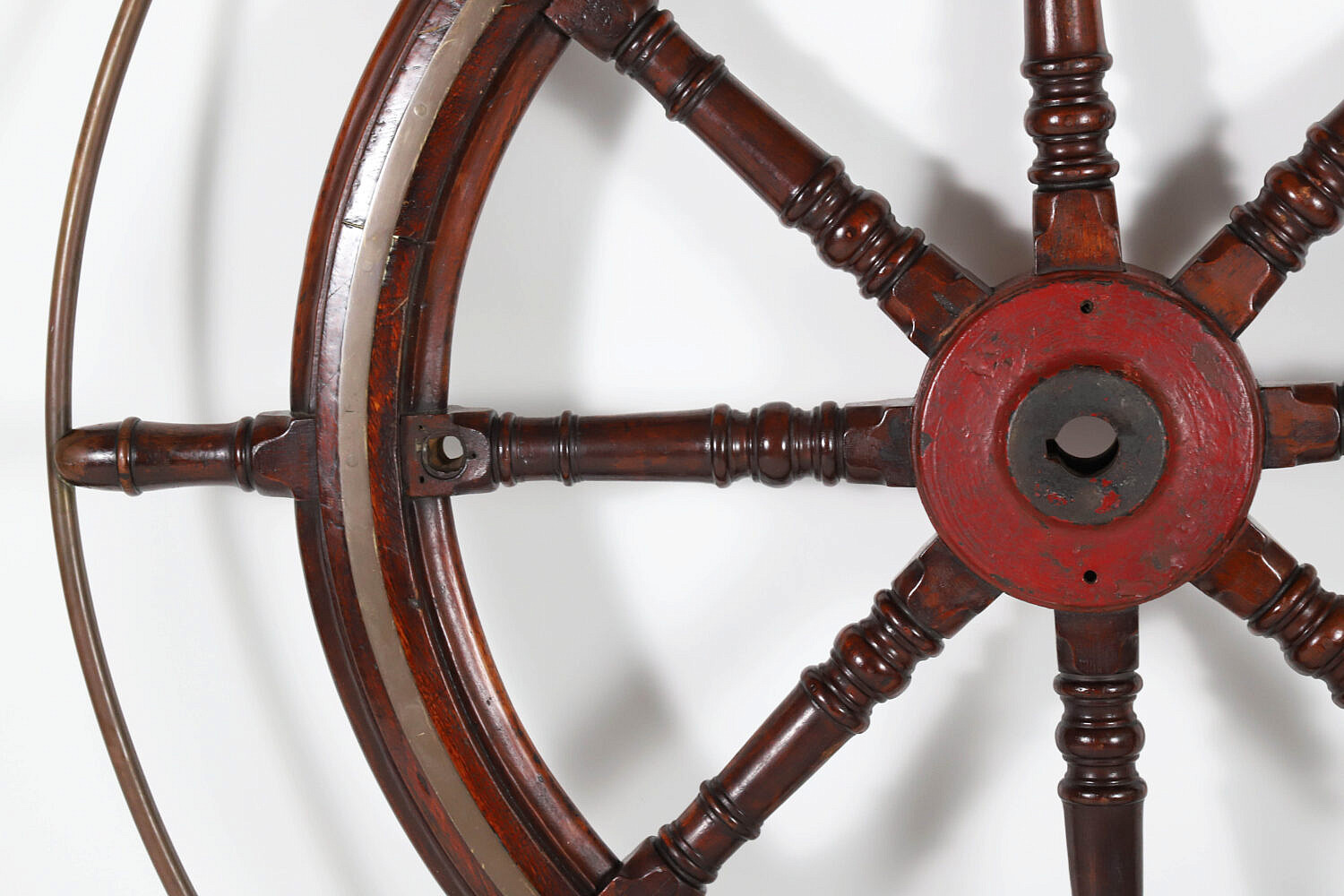 Eight Spoke Teak and Brass and Yacht Wheel with Iron Hub, 19th Century