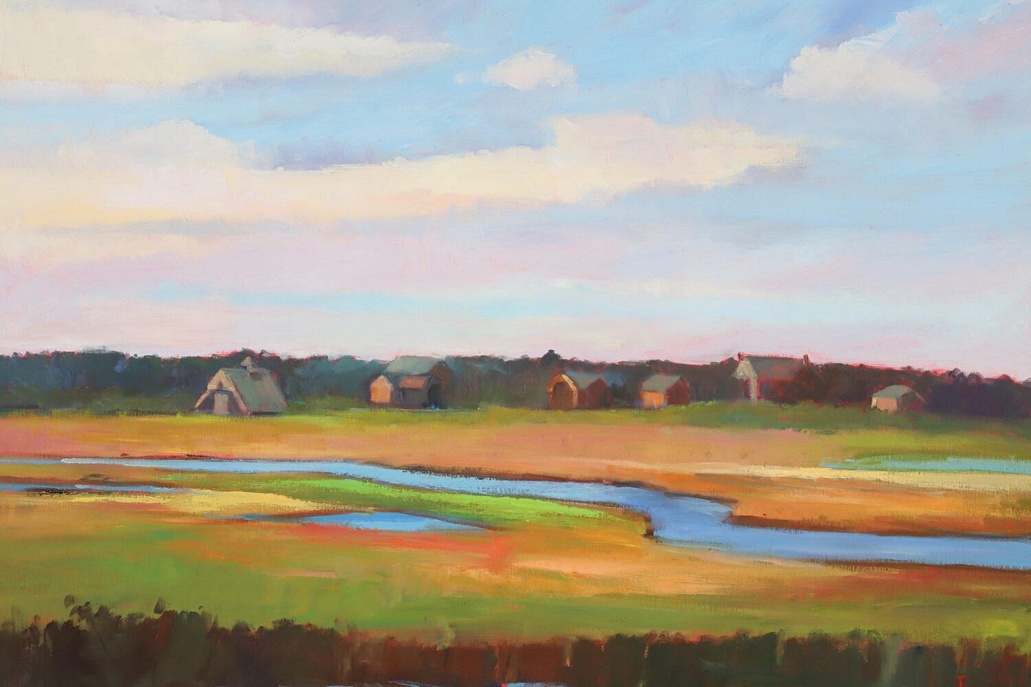 Elle Foley Oil on Canvas “Nantucket Marsh,” signed lower right Foley in molded gilt frame