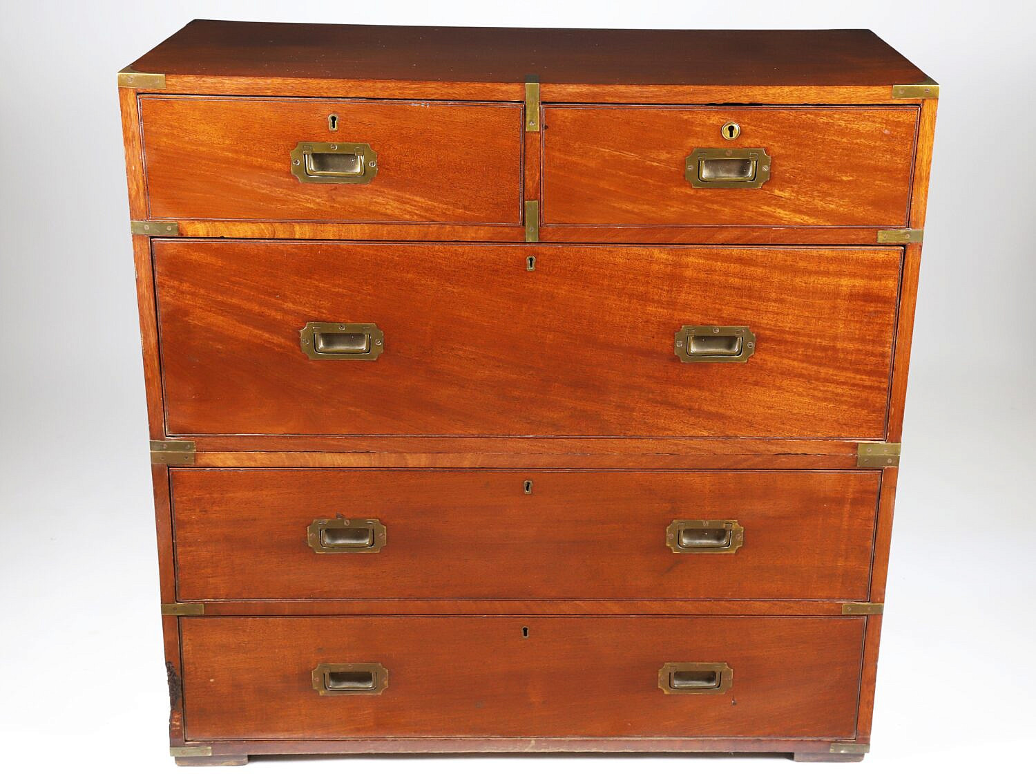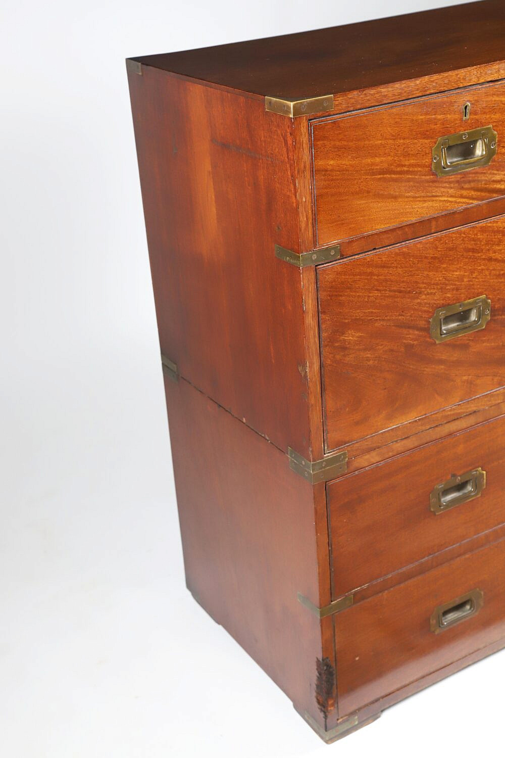 English Brass Bound Mahogany Campaign Chest of Drawers, 19th Century