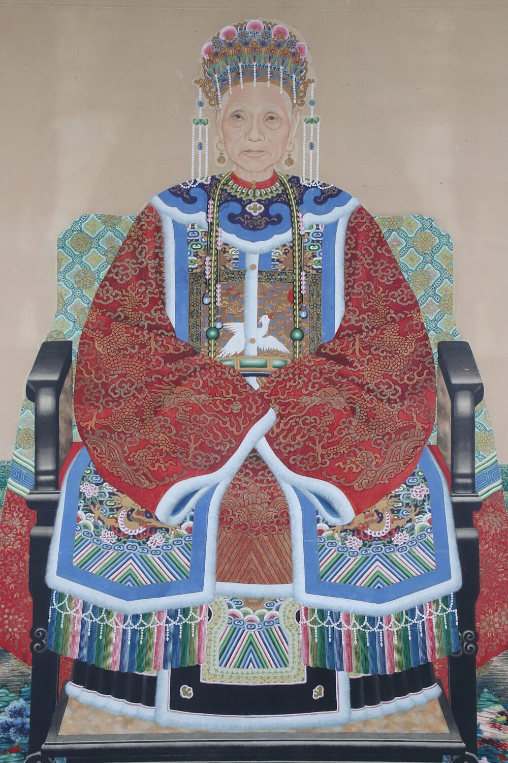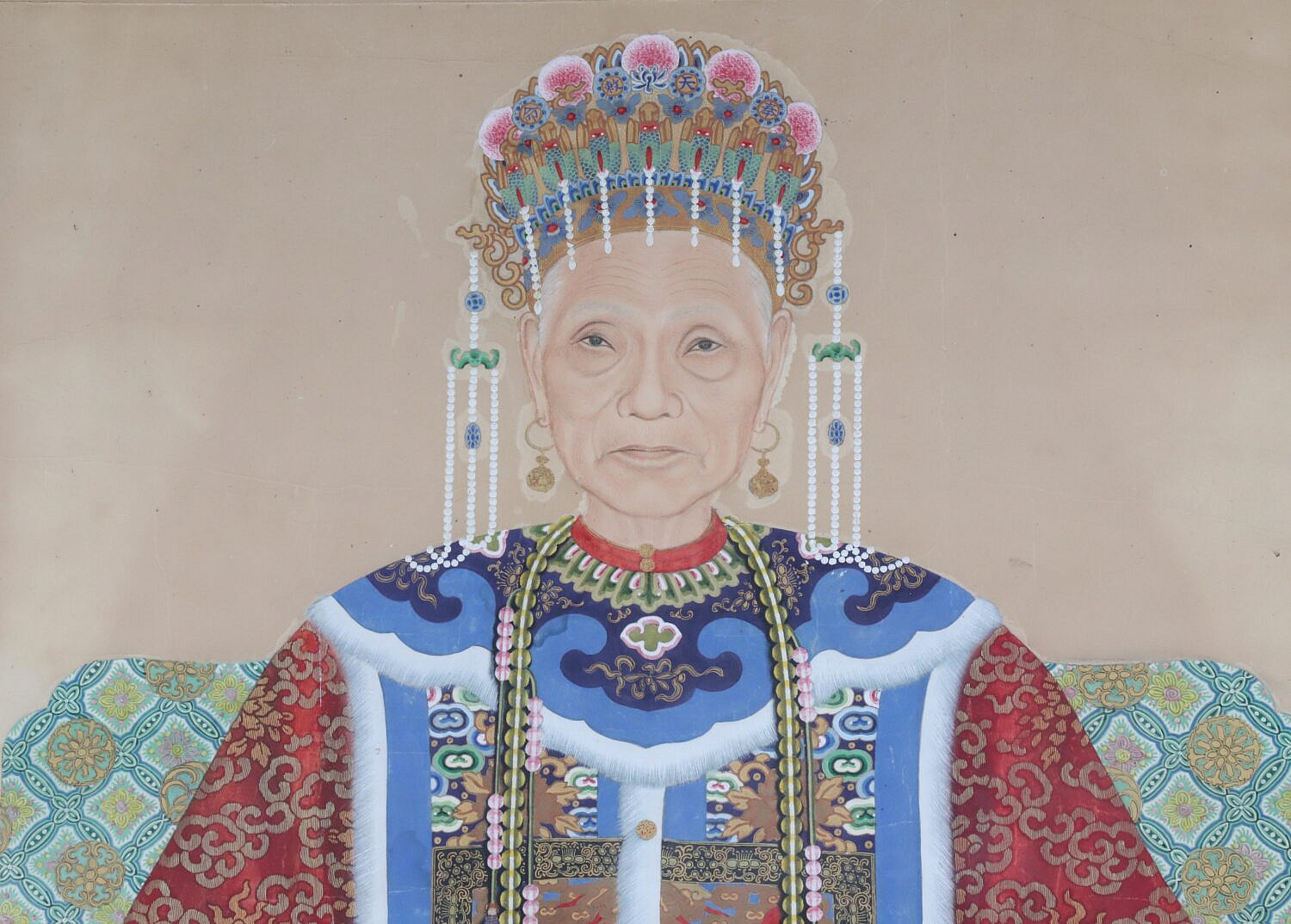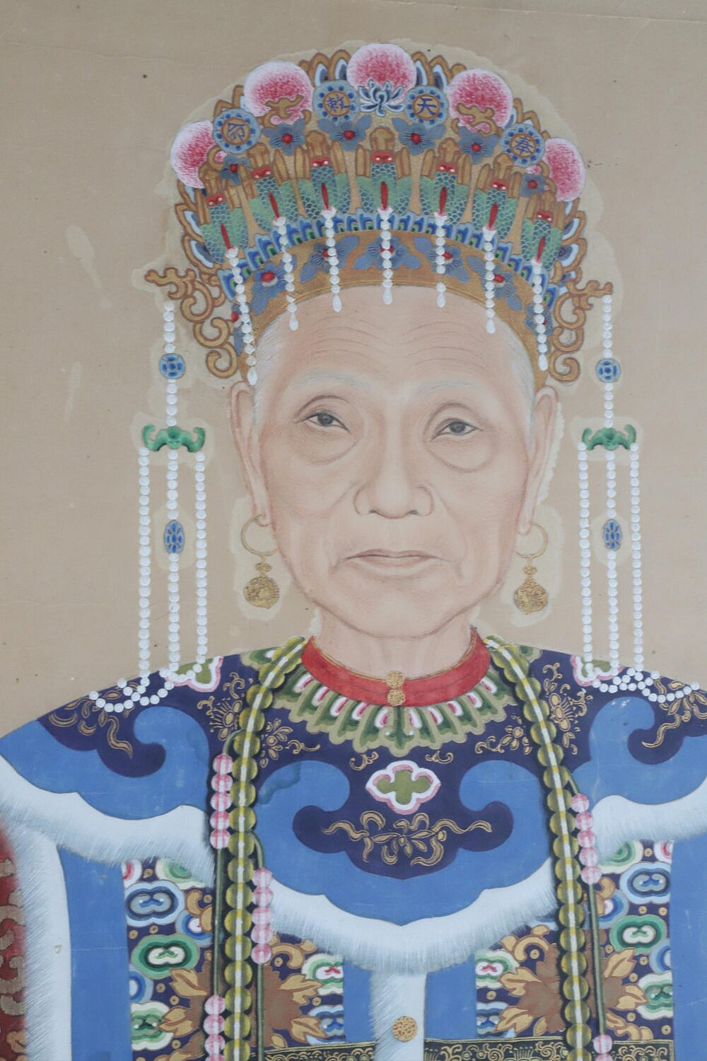 Fine Chinese Watercolor / Gouache Ancestral “Portrait of an Empress”, finely framed with linen mat and gilt liner