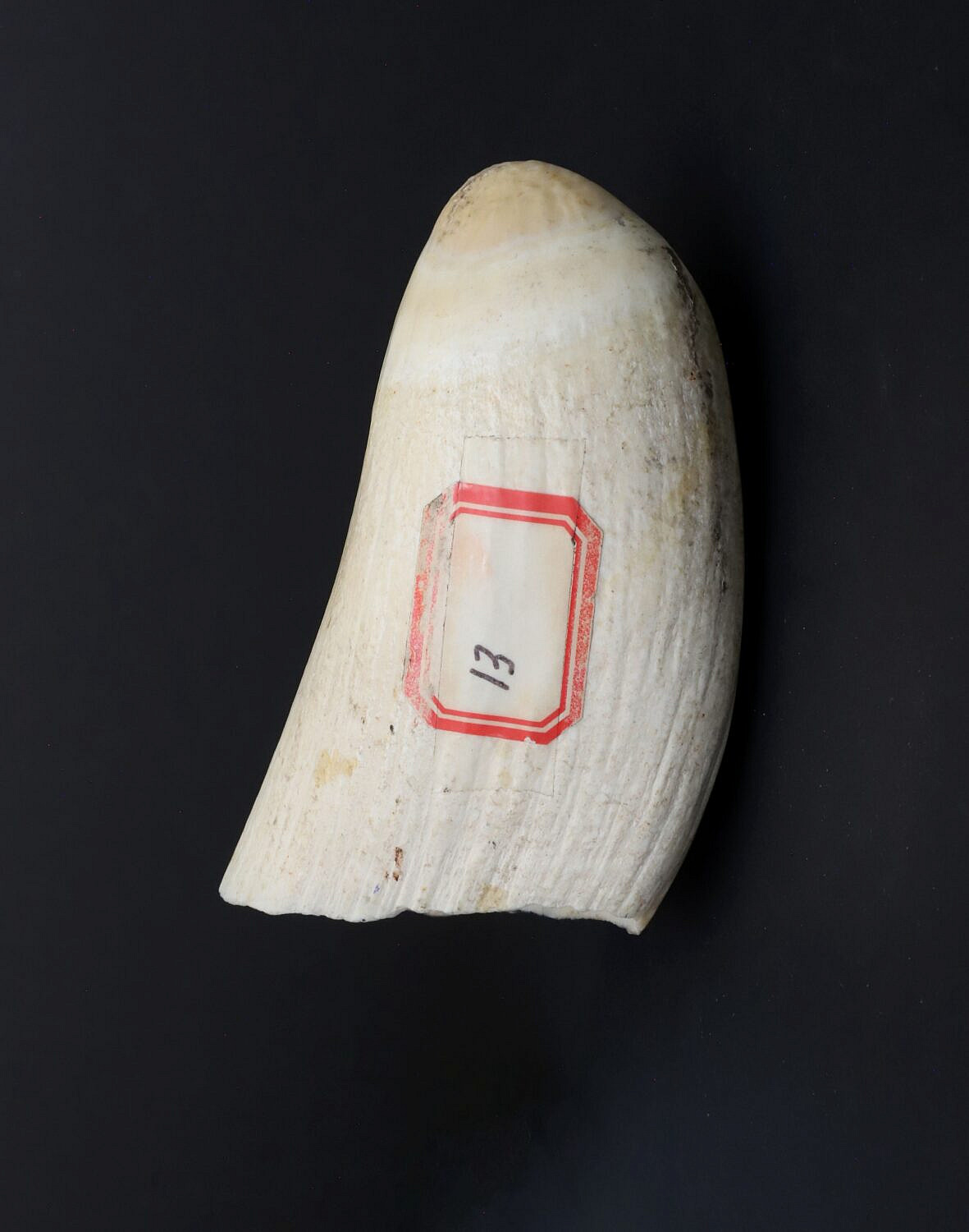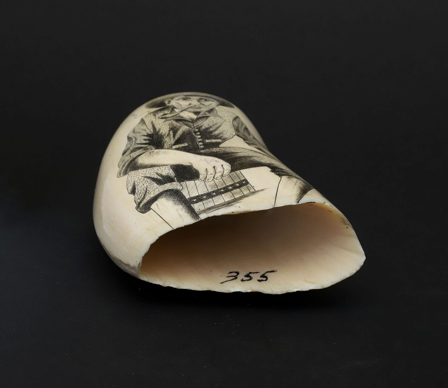 Fine Frank Barcelos (Portuguese b. 1926) Contemporary Scrimshaw Whale’s Tooth, Mid 20th Century, Engraved by Frank Barcelos on a 19th Century Tooth, depicting a portrait of a seated sailor with pipe, signed lower right Frank B. Barcelos worked with President John F. Kennedy. *Per Federal regulations, this item may only be purchased by a Massachusetts resident and will not be shipped out of state.