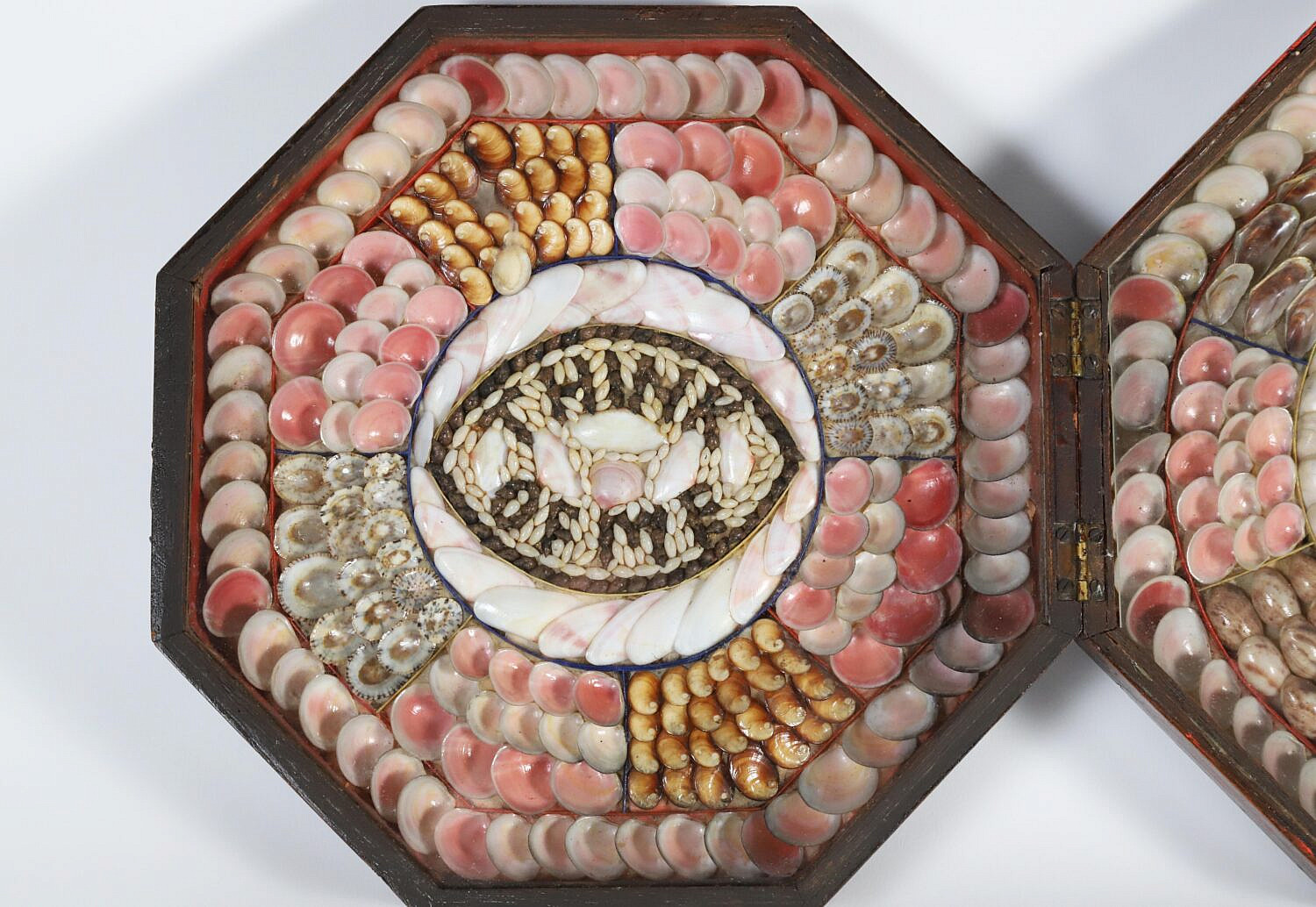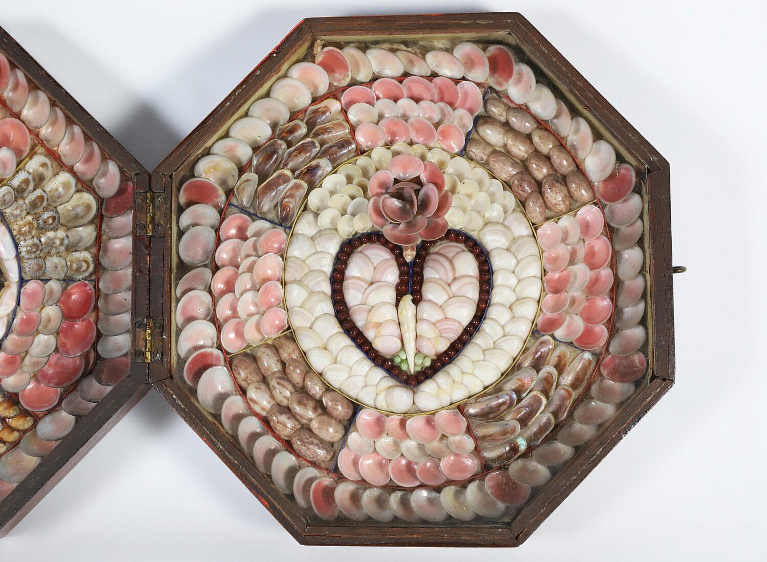 Fine Sailor’s Double Valentine “Think of Me”, 19th Century, in hinged octagonal case