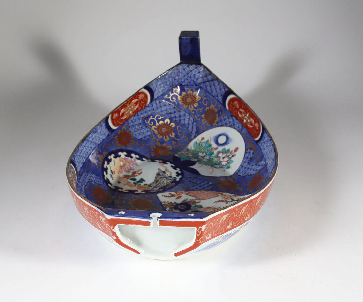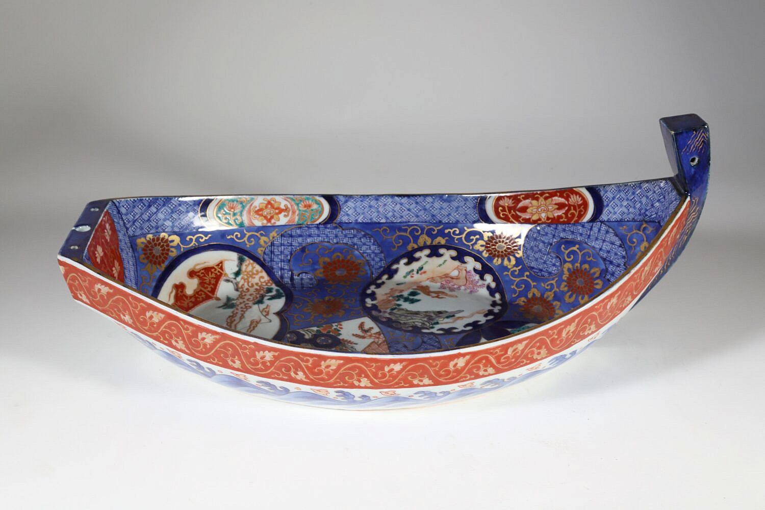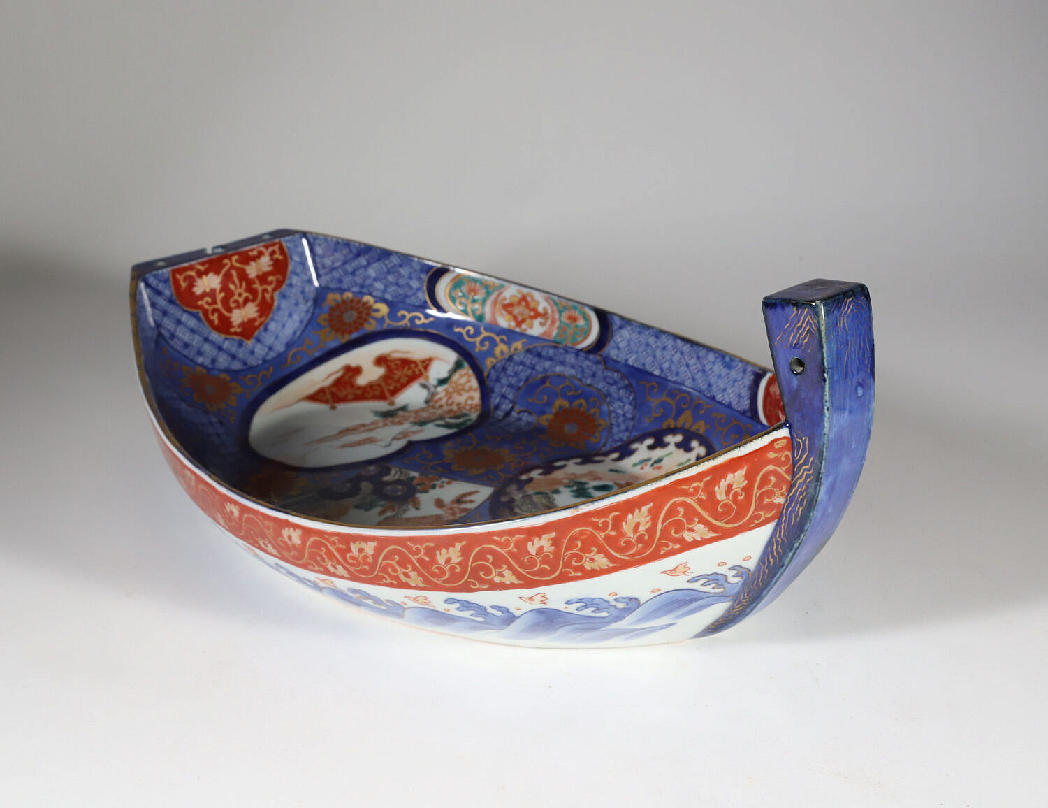 Imari Porcelain Boat with Four Interior Cameos including a Western Falconer, 19th Century