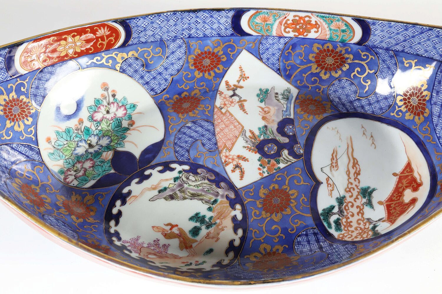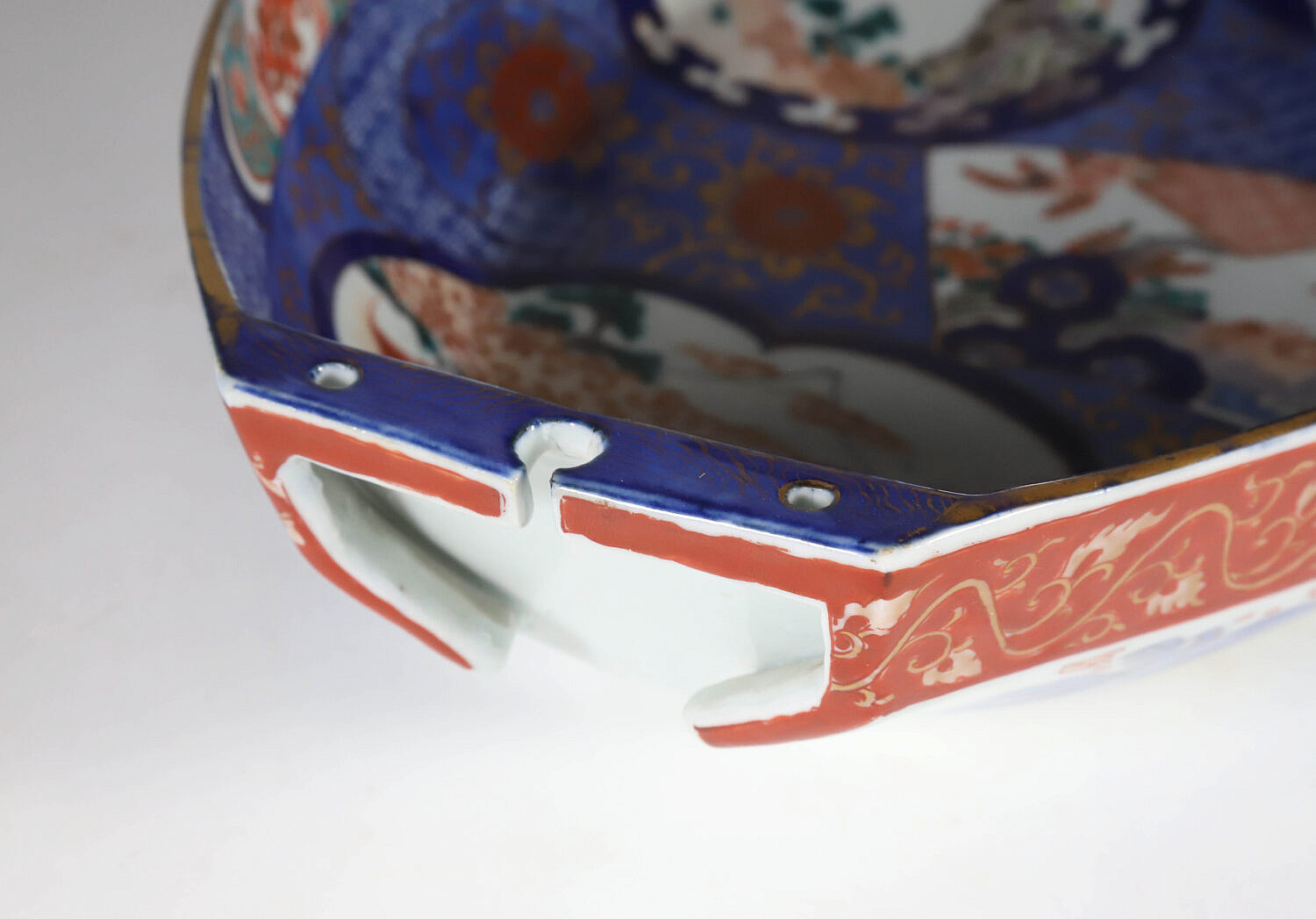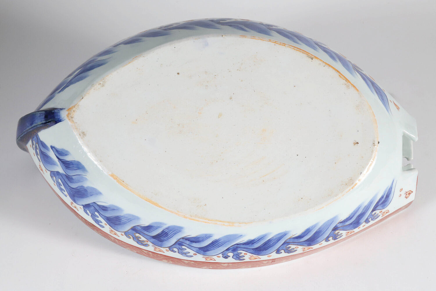 Imari Porcelain Boat with Four Interior Cameos including a Western Falconer, 19th Century
