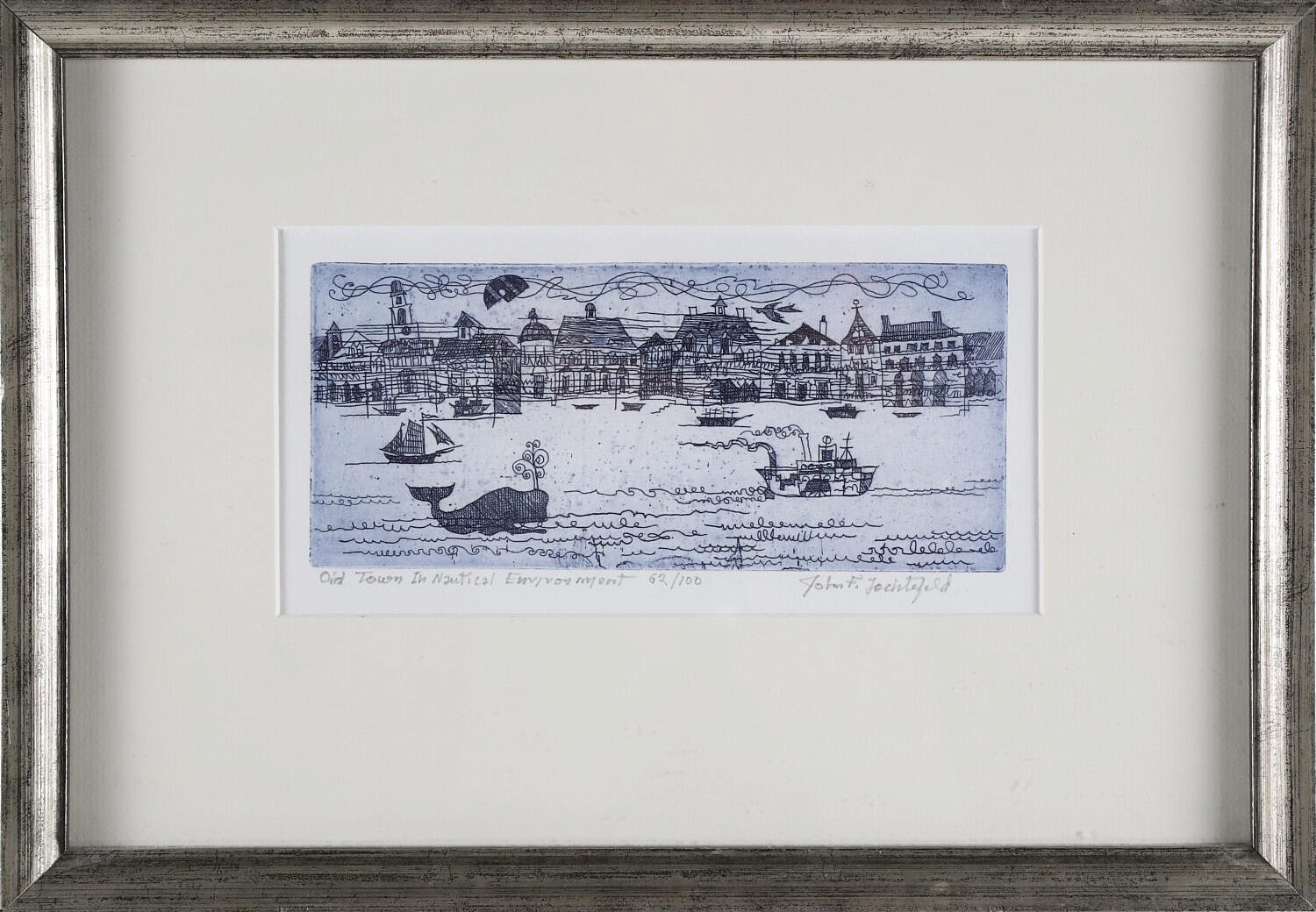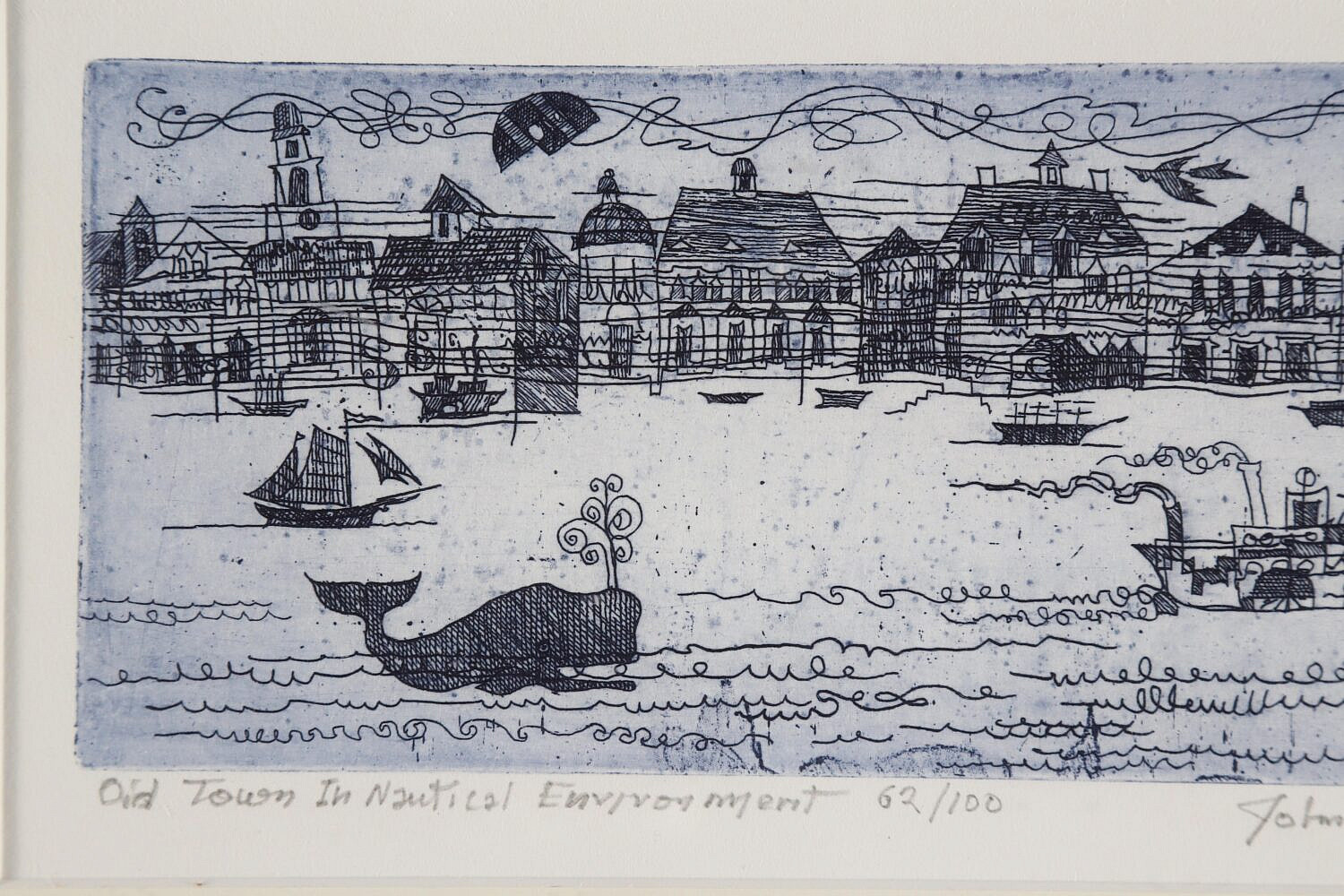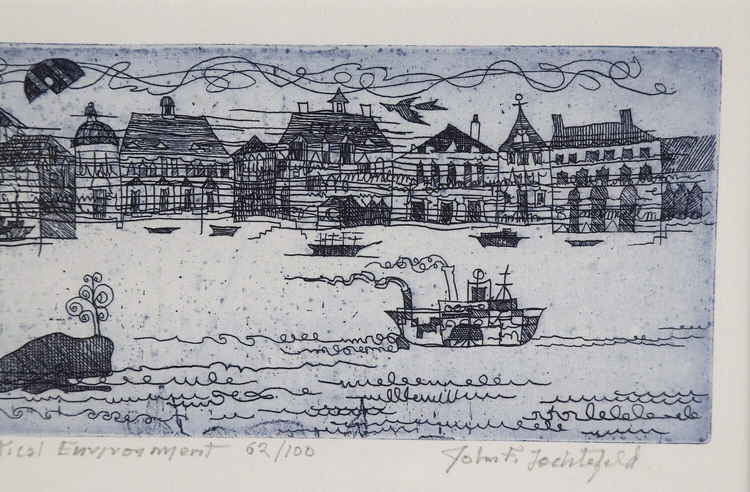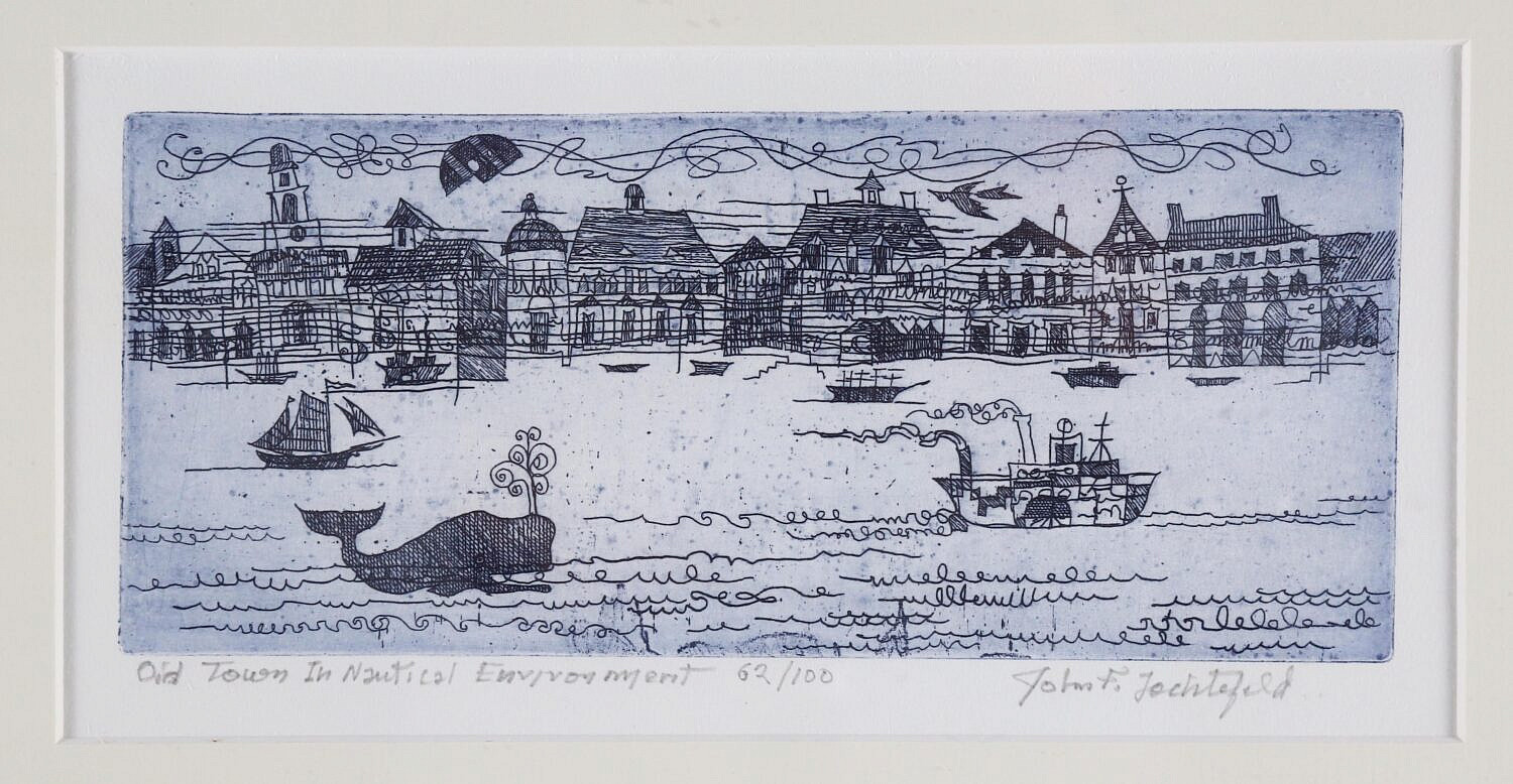 John Lochtefeld (1933-2025) Limited Edition Print “Old Town in Nautical Environment” #62/100, pencil titled and signed, matted and framed
