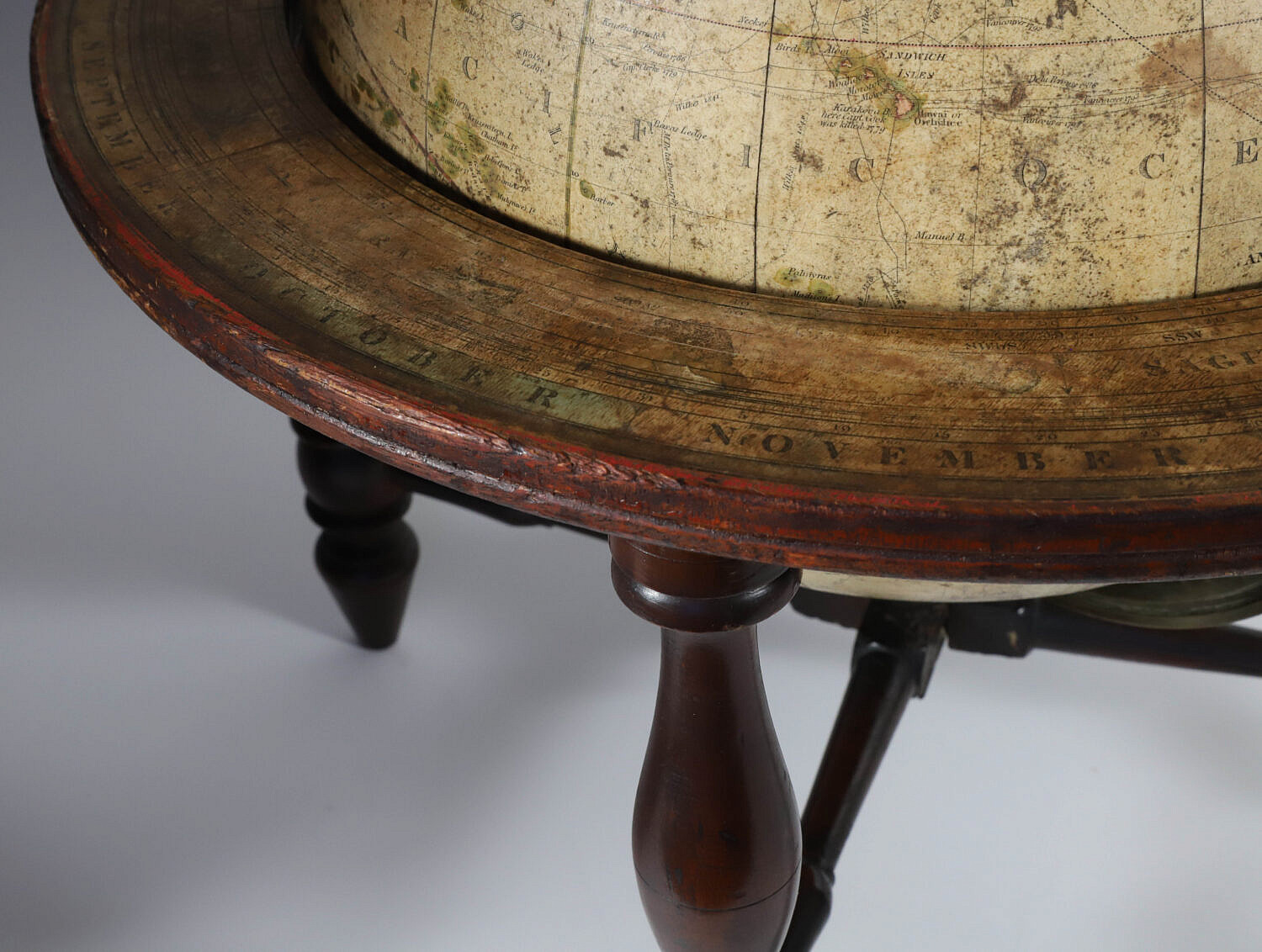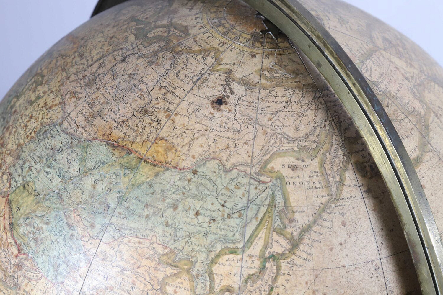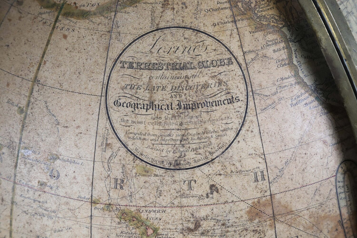 Joslin Boston Terrestrial 12 inch Globe, circa 1851, tabletop model on turned mahogany stand, brass fittings
