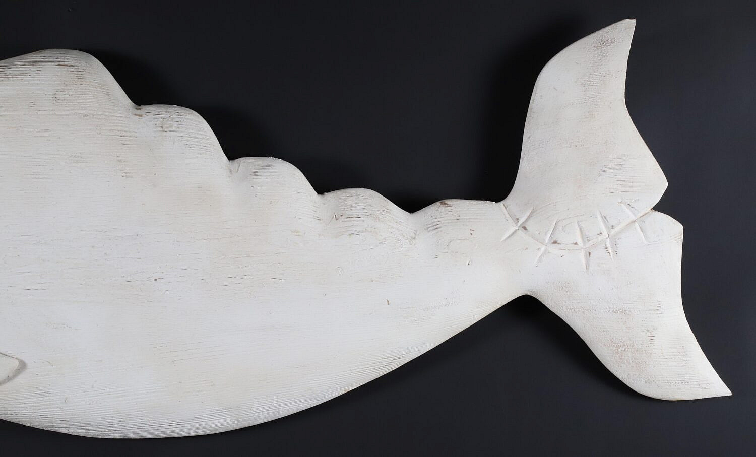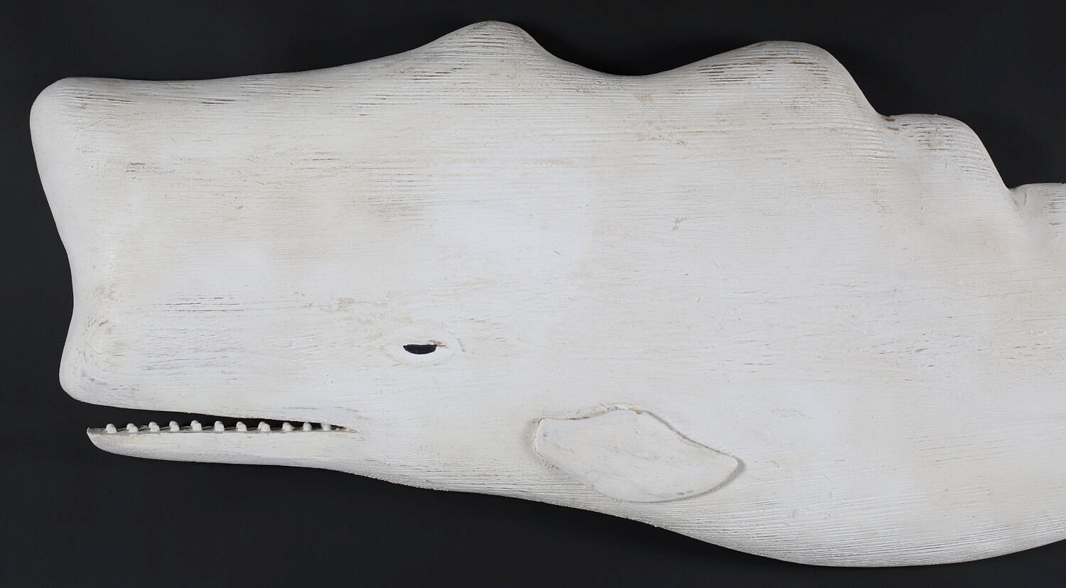 Mike Bacle Carved and Painted Moby Dick Sperm Whale Plaque, signed on the reverse