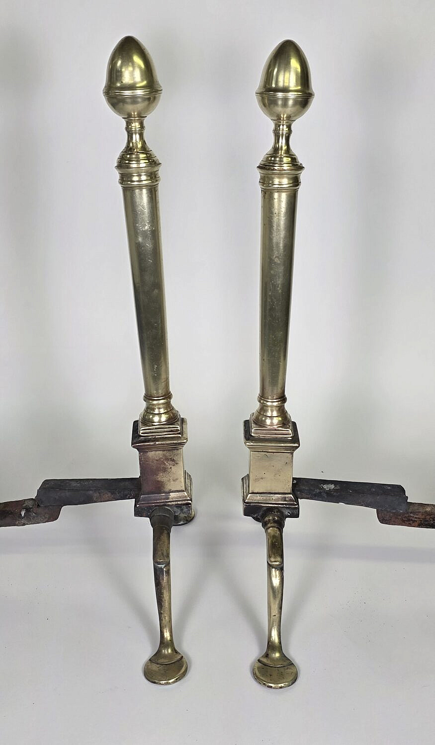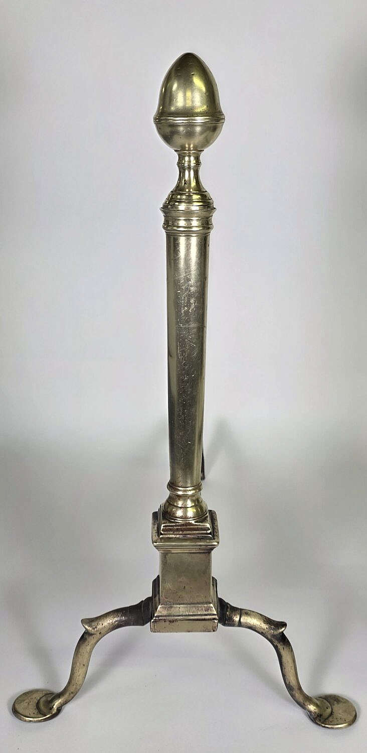 Pair of Antique Brass Chippendale Philadelphia Acorn and Finial Andirons, circa 1800 Consign Now DeptAmericana and Folk Arts, Decorative Arts, Fireplace EquipmentSizeHeight 24.5 in. Width 14 in. Depth 19 in. Pair of Antique Brass Chippendale Philadelphia Acorn and Finial Andirons, circa 1800, on arched legs and penny feet. Height 24.5 in. Width 14 in. Depth 19 in. Please note that this auction has ended. Click here for an overview of this auction.