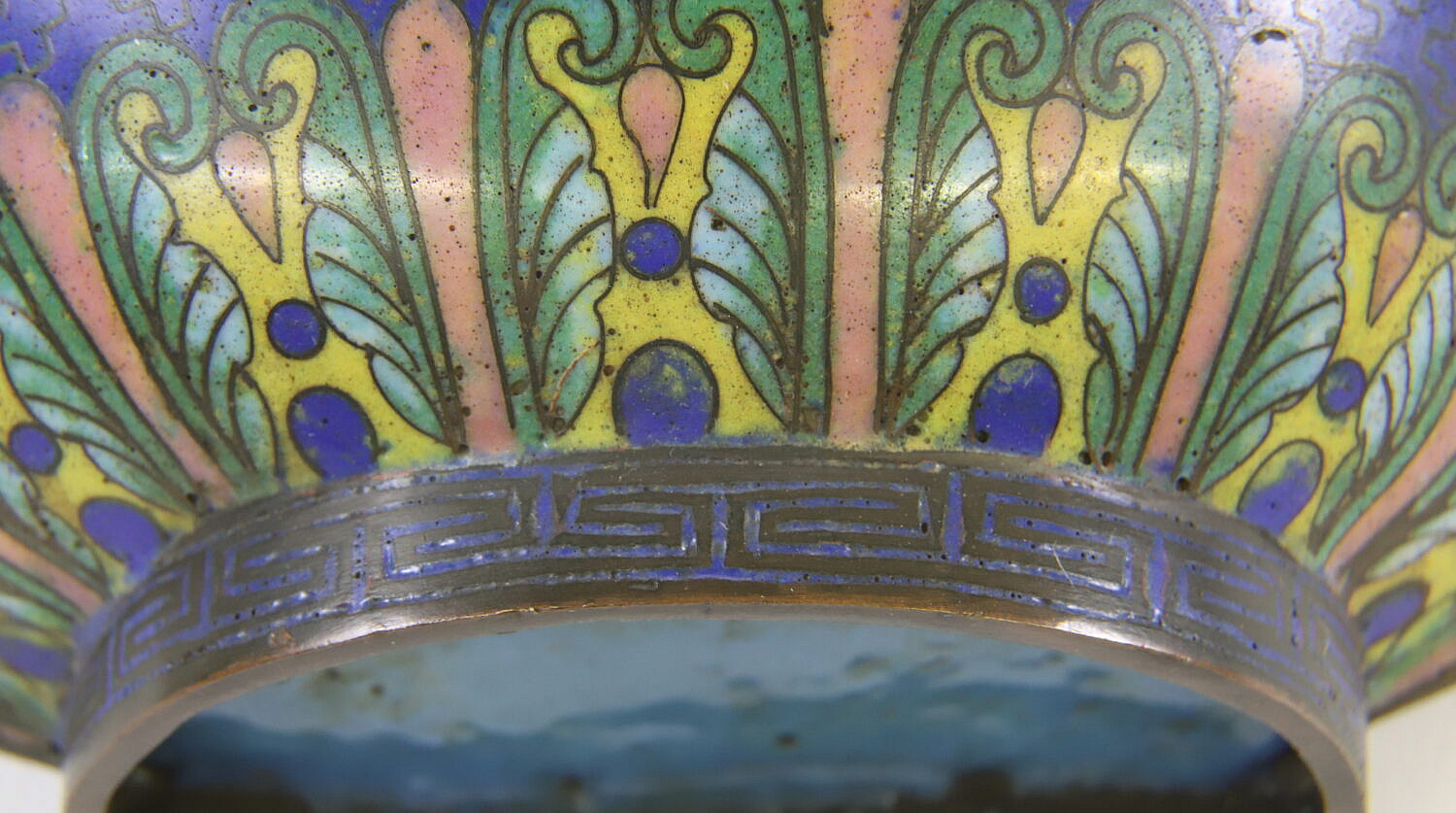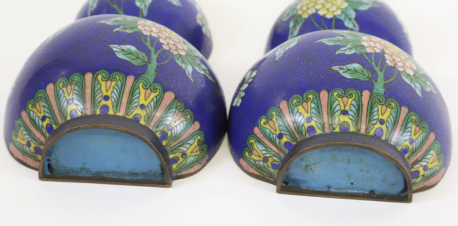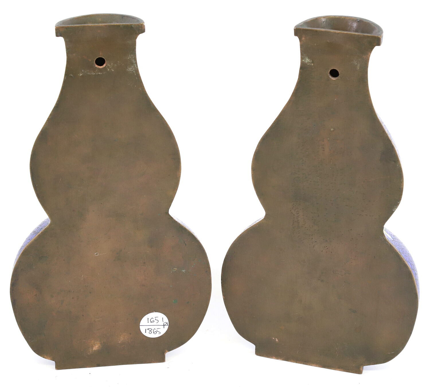 Pair of Antique Chinese Cloisonne Double Gourd Vase Wall Pockets, circa 1900, blue ground with floral and butterfly decoration.