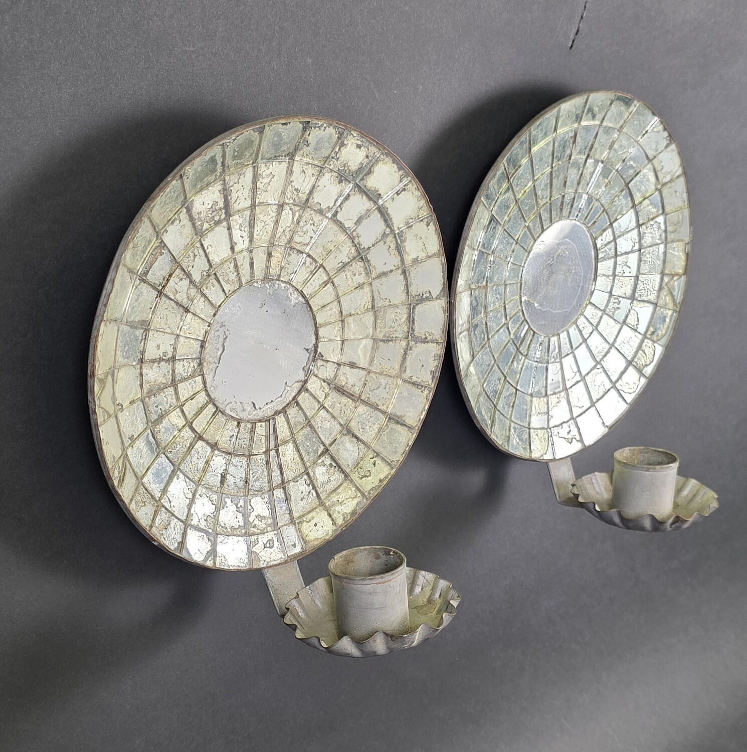 Pair of Antique Spider Web Mirrored Back Candle Sconces, 19th century