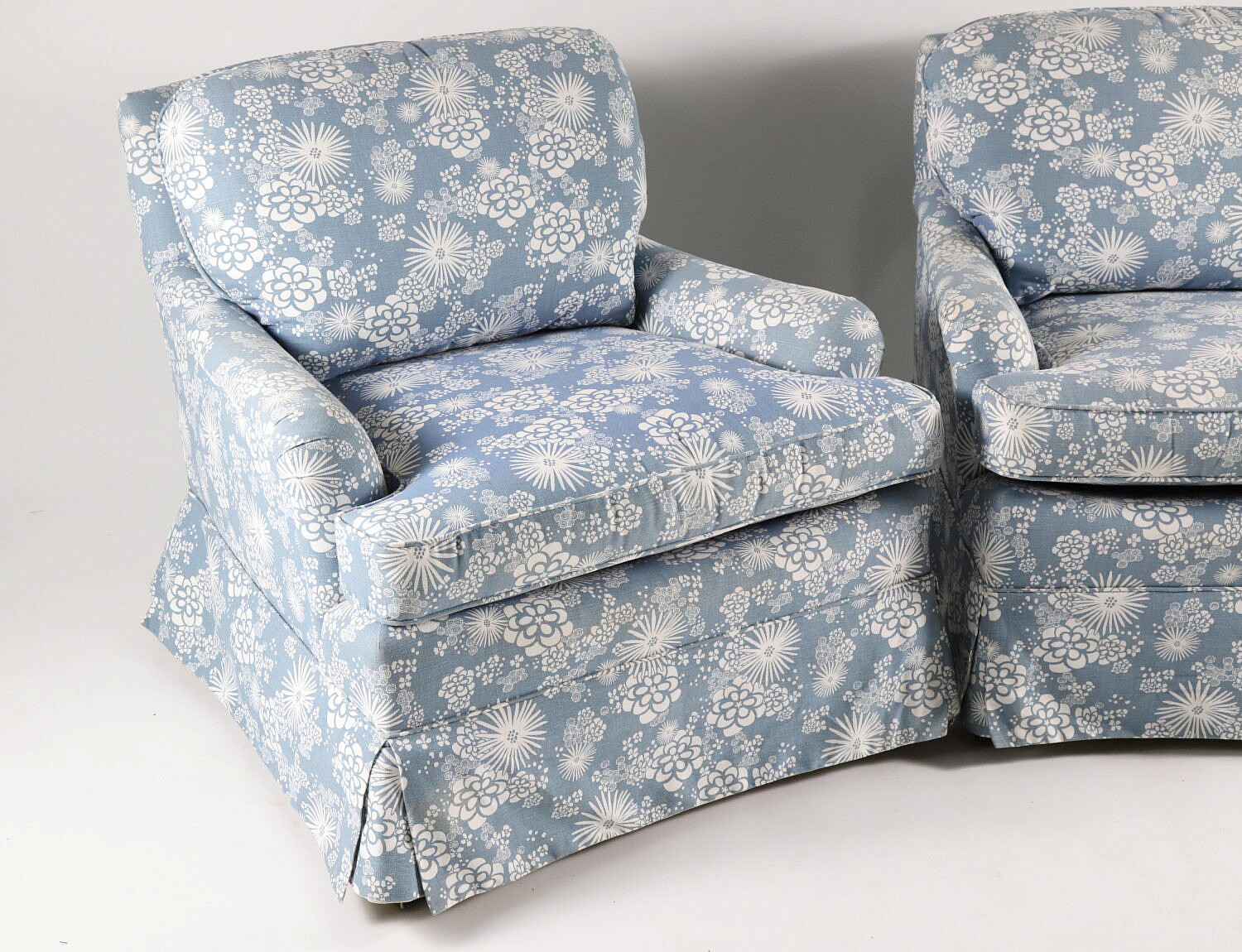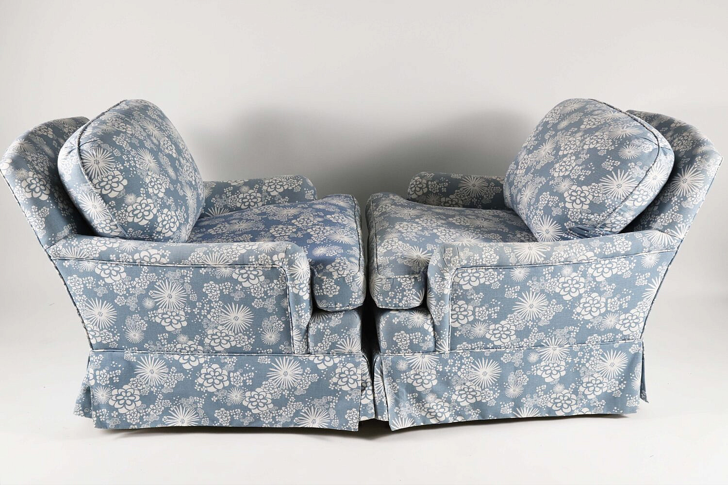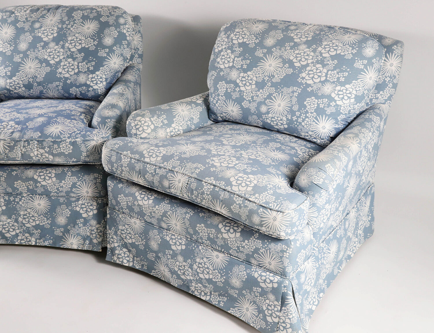 Pair of Blue and White Uphostered Skirted Club Chairs