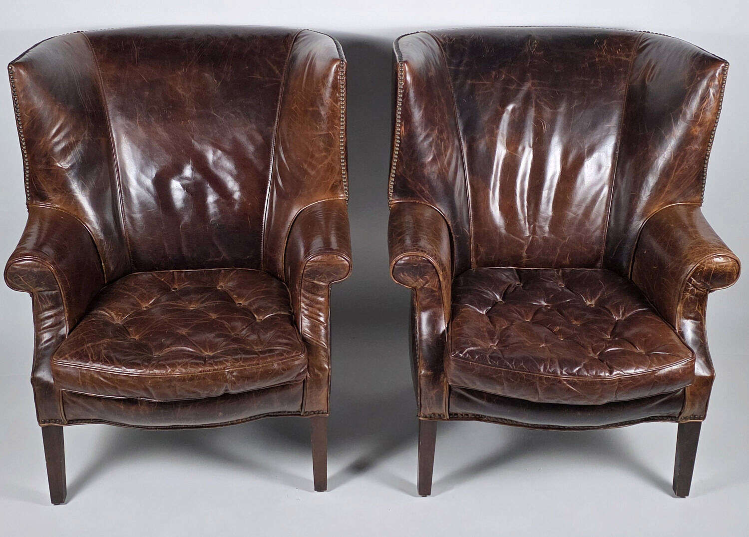 Pair of Brown Leather Upholstered Restoration Hardware Easy Chairs Consign Now DeptDecorative Arts, Furniture, Furniture/Decorative ArtsSizeHeight 44.25 in. Width 36 in. Depth 37 in. Seat Height 18.5 in. Pair of Brown Leather Upholstered Restoration Hardware Easy Chairs Height 44.25 in. Width 36 in. Depth 37 in. Seat Height 18.5 in. Please note that this auction has ended. Click here for an overview of this auction.