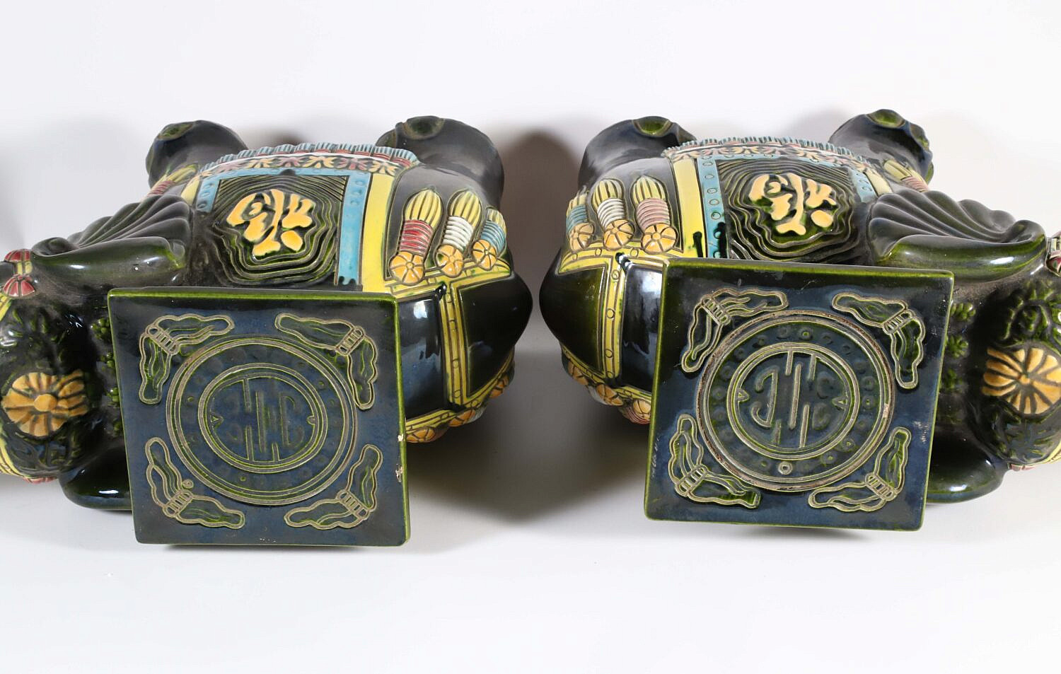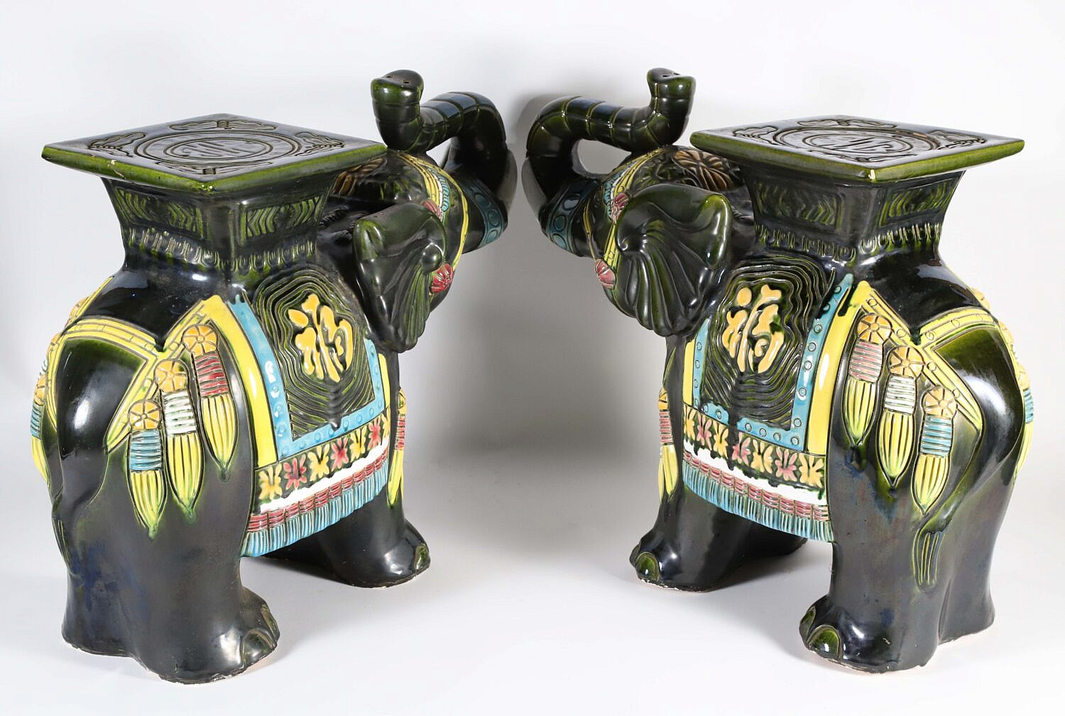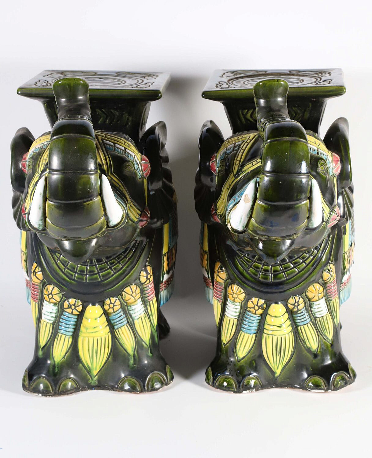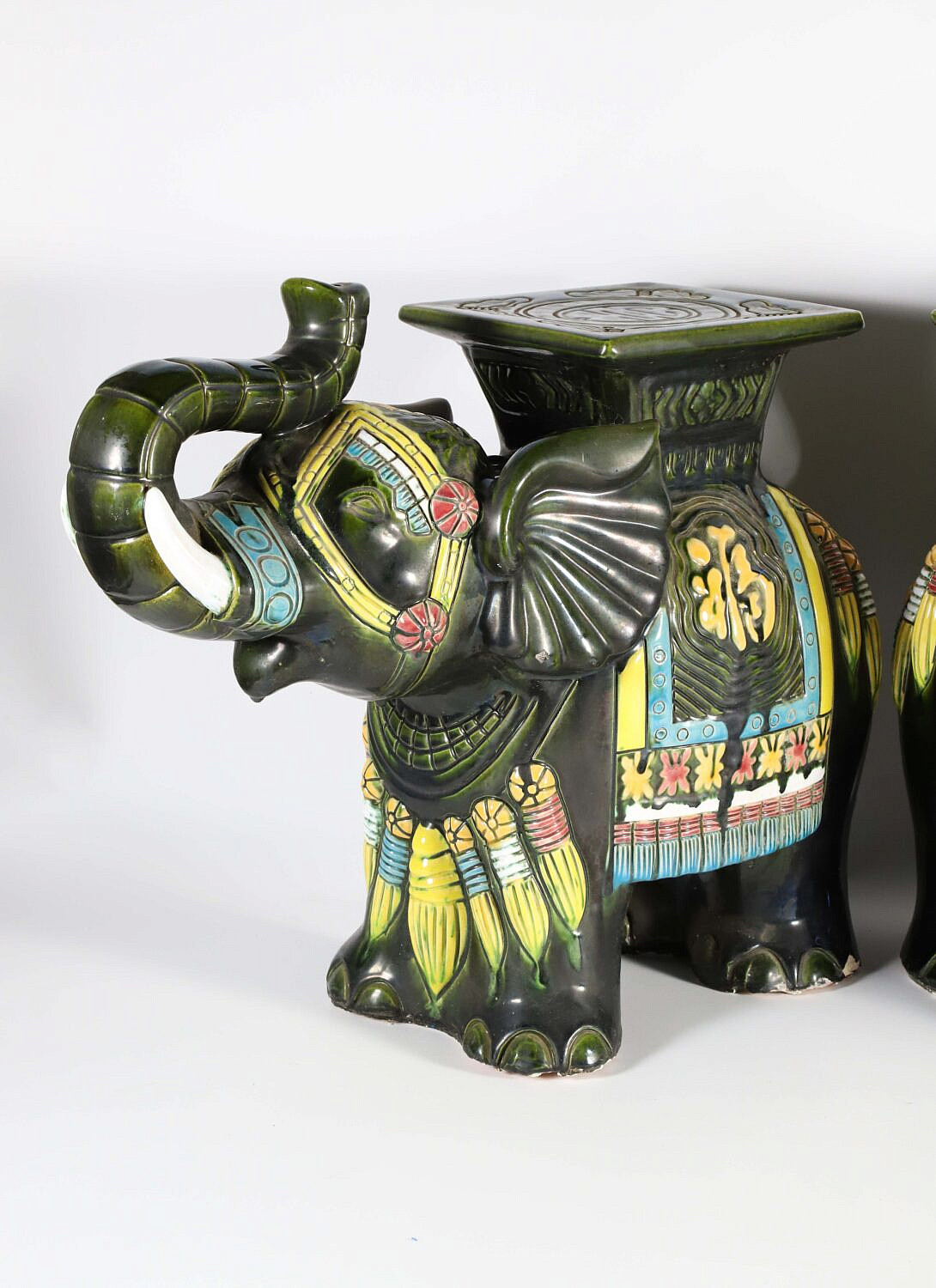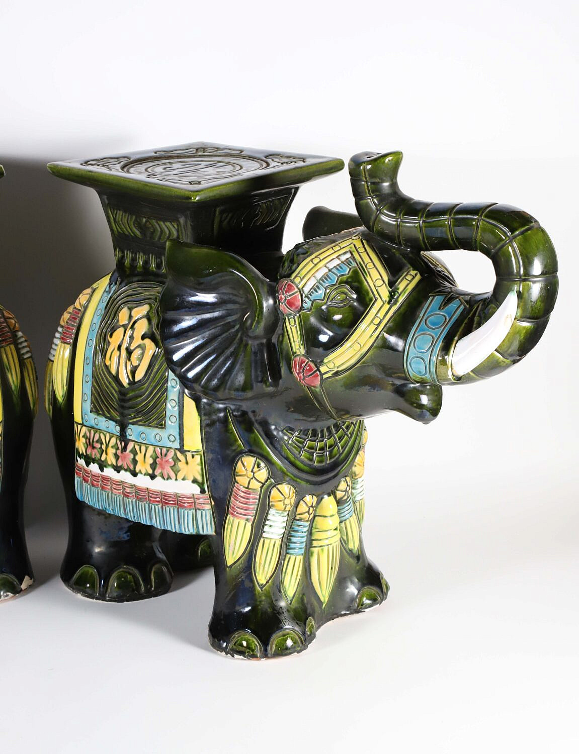 Pair of Decorative Glazed Ceramic Elephant Garden Stools