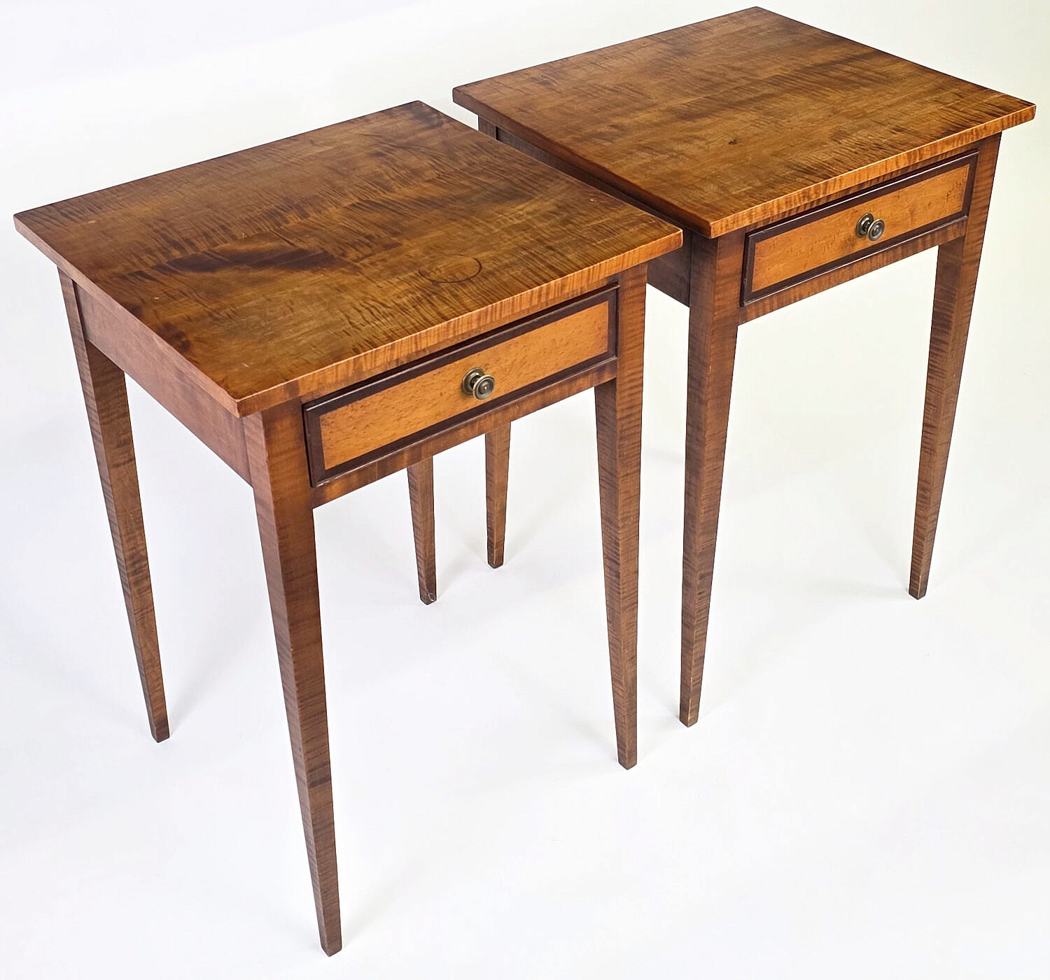 Pair of Eldred Wheeler Tiger Maple One Drawer Night Stands Consign Now DeptDecorative Arts, Furniture, Furniture/Decorative ArtsSizeHeight 27.5 in. Width 17.5 in. Depth 18.75 in. Pair of Eldred Wheeler Tiger Maple One Drawer Night Stands, both with original paper labels, Hepplewhite style and circular brass pulls. Height 27.5 in. Width 17.5 in. Depth 18.75 in. Please note that this auction has ended. Click here for an overview of this auction.