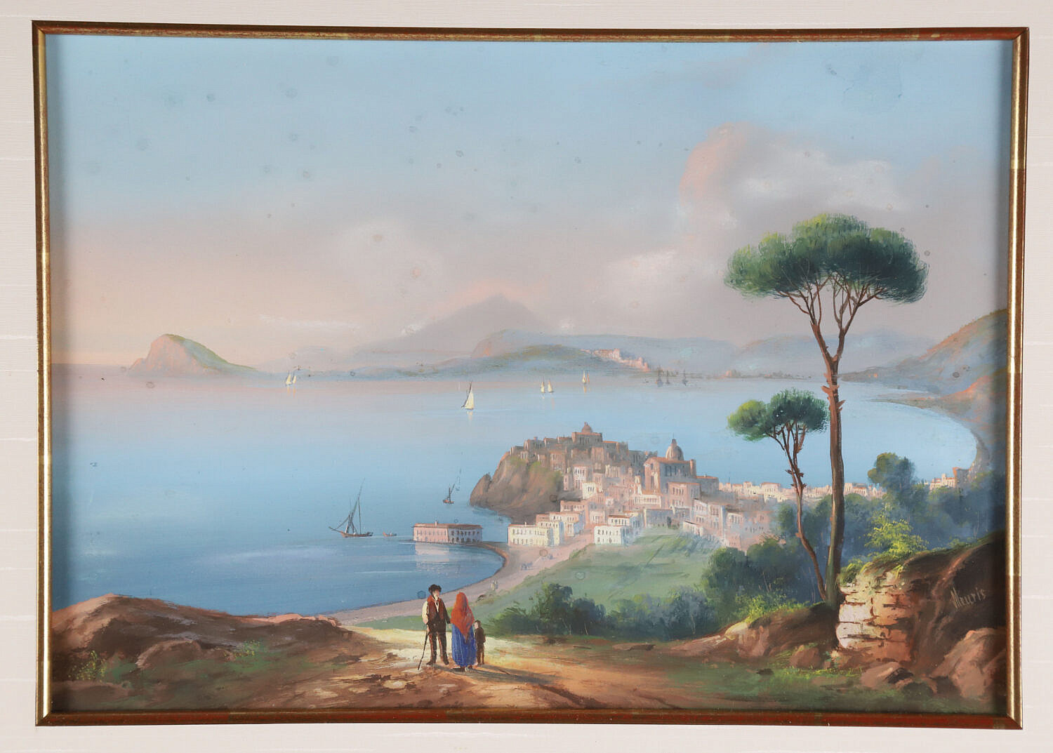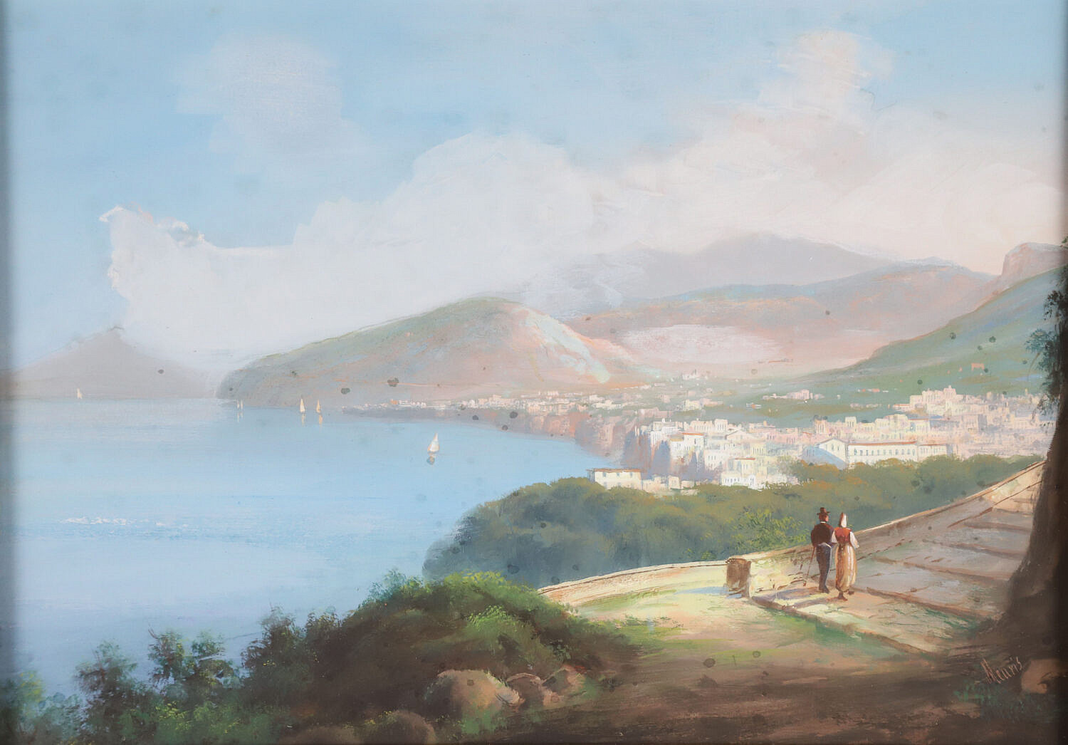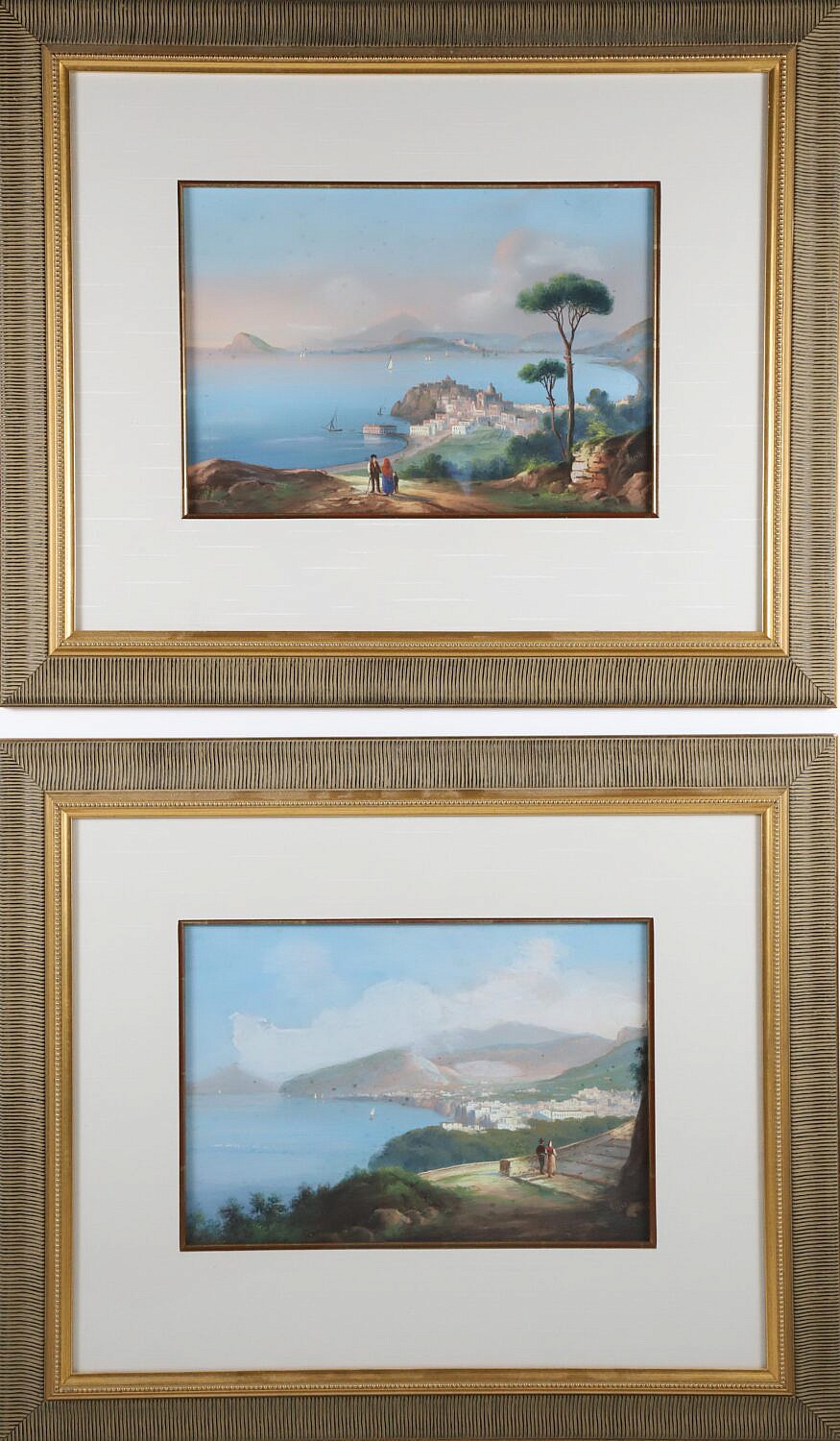 Pair of Emmanuel Meuris (1894-1969) Neopolitan Gouache Tempera Paintings, signed lower right Meuris, matted and framed