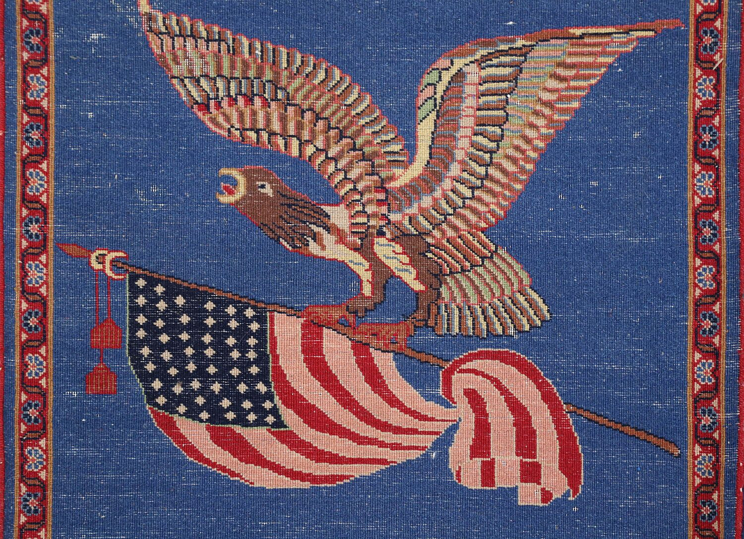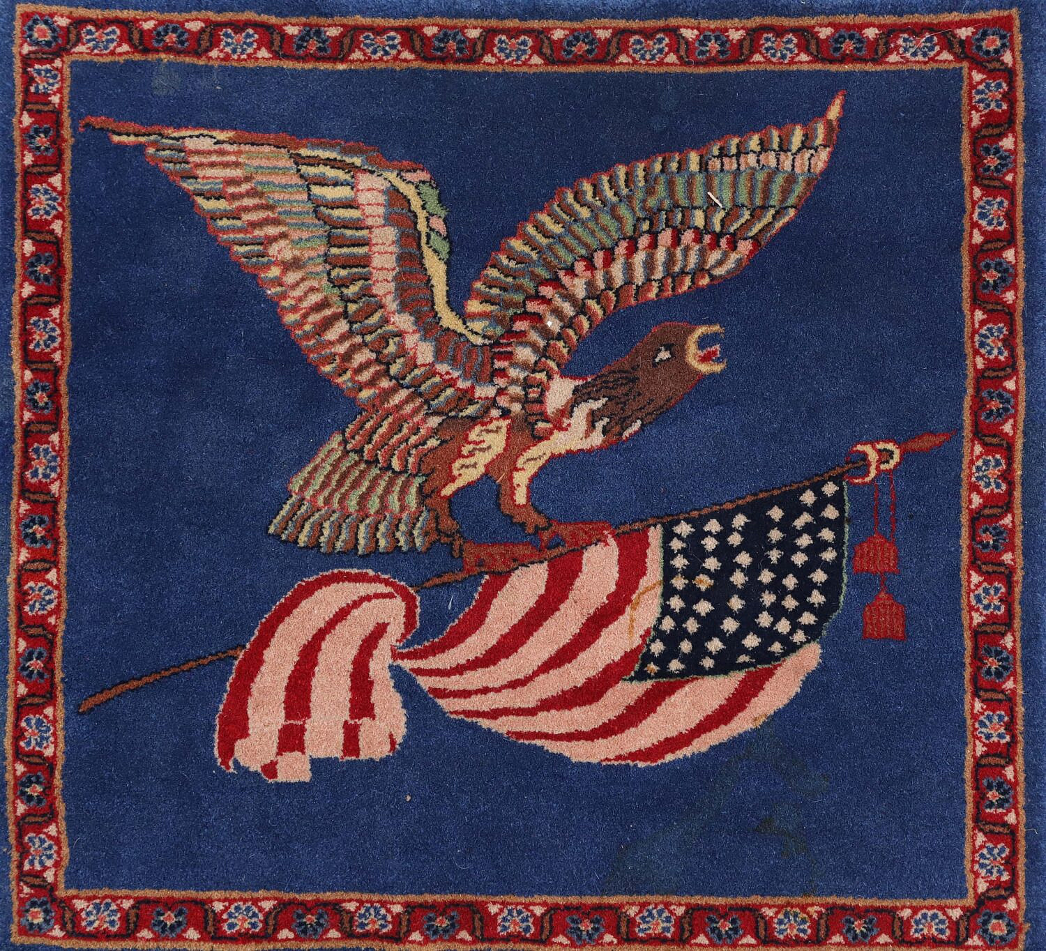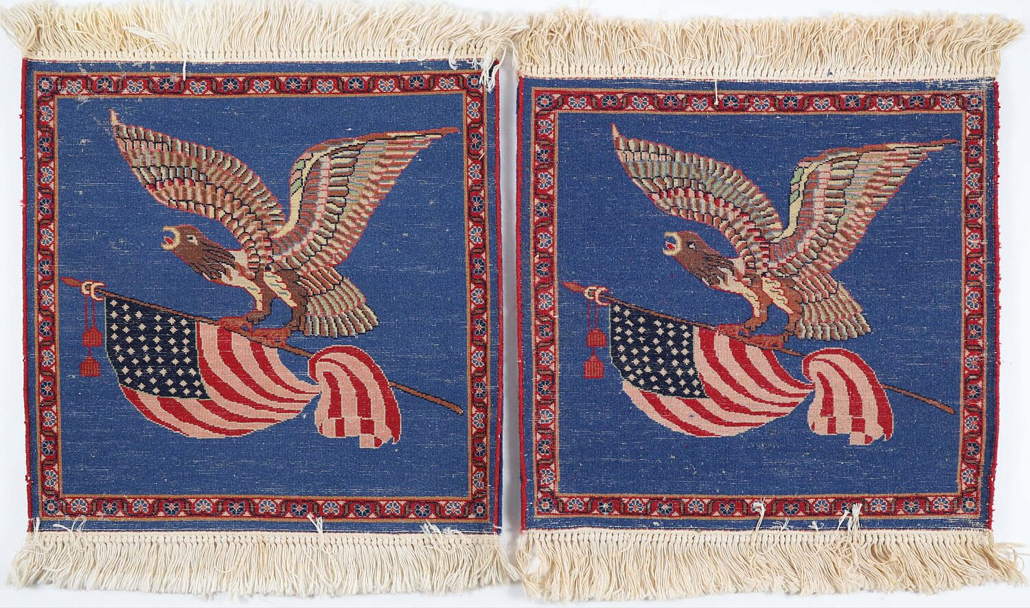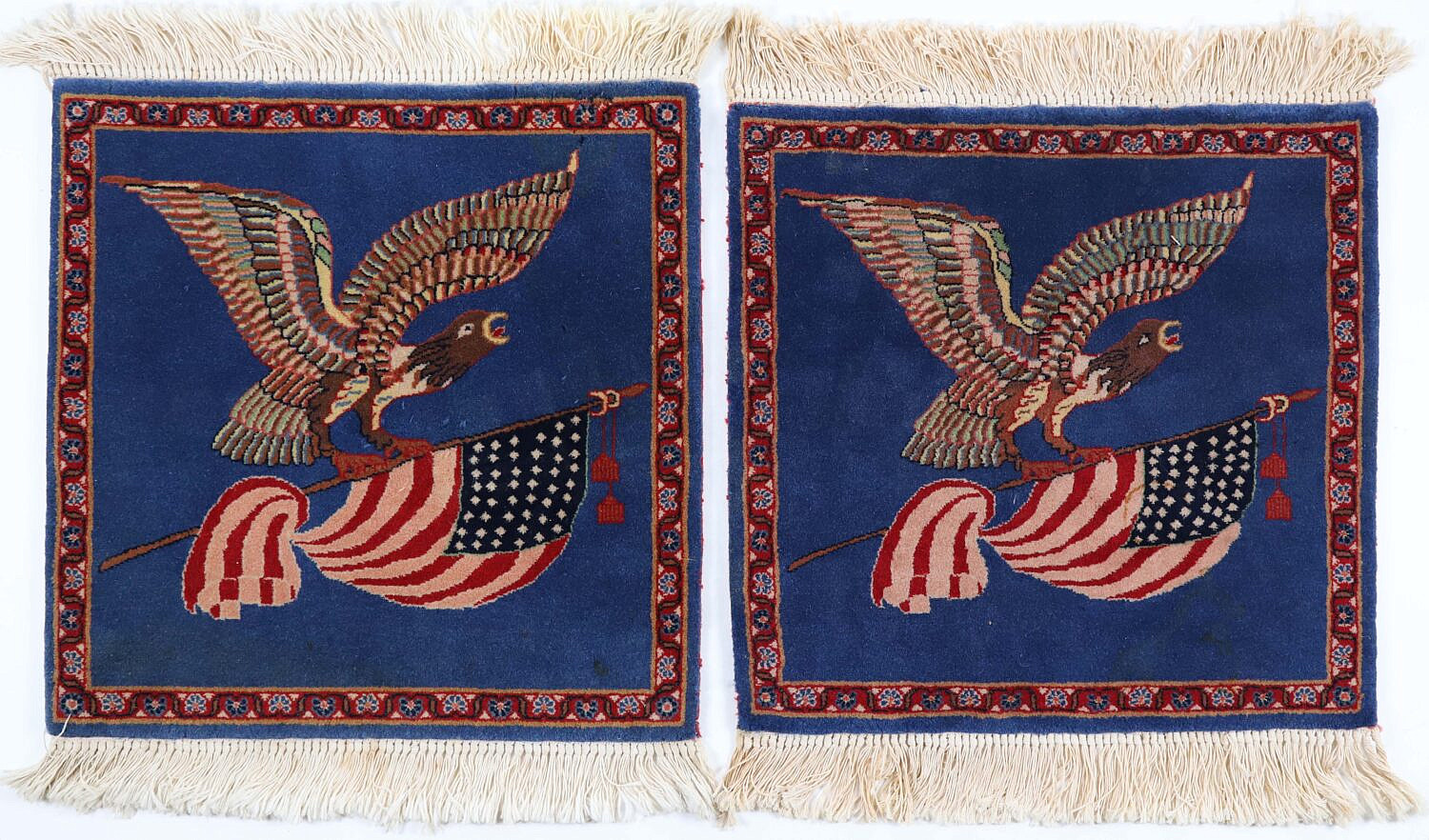 Pair of Hand Knotted Kashan Rugs, Eagle with American Flag Design