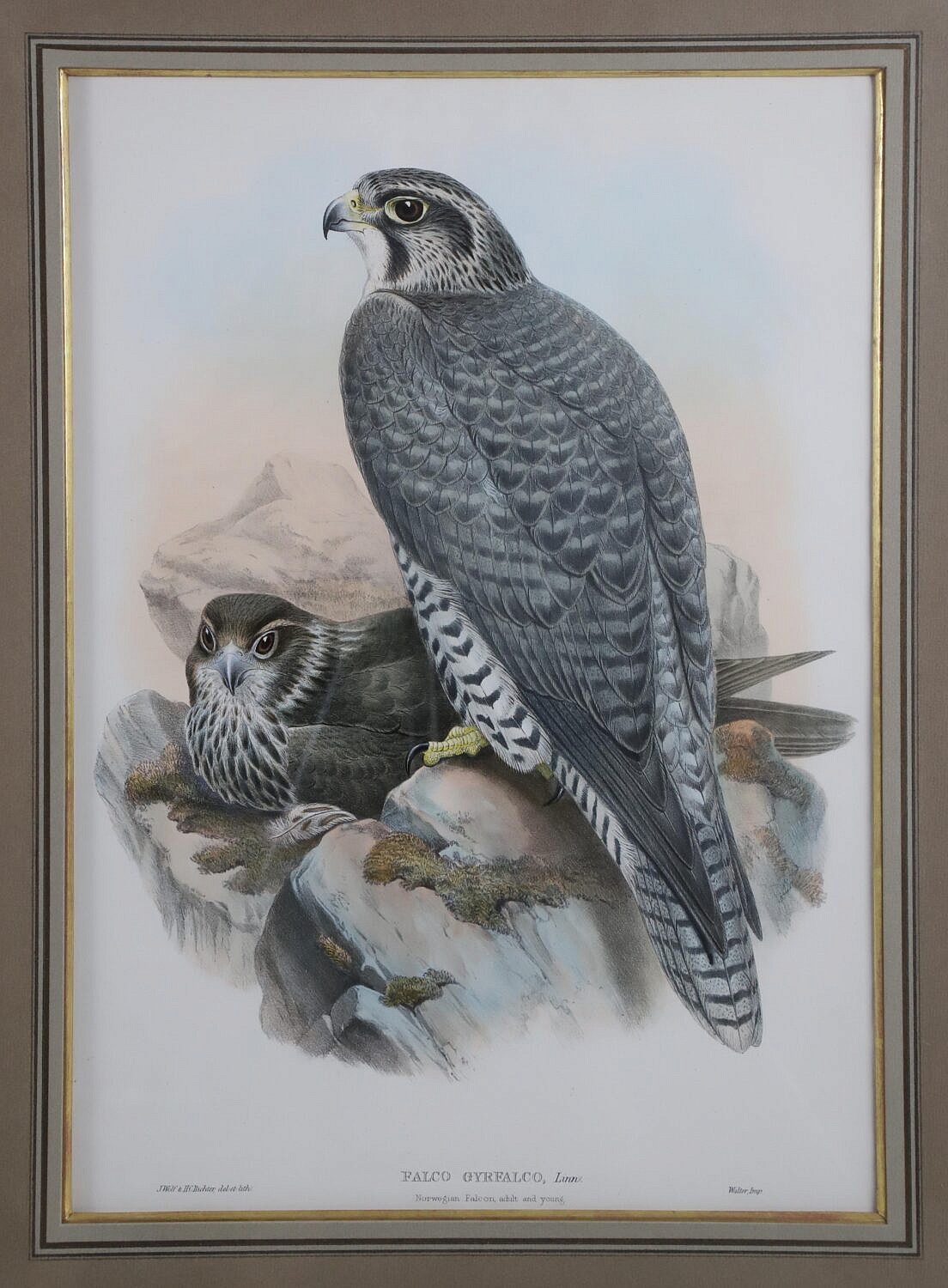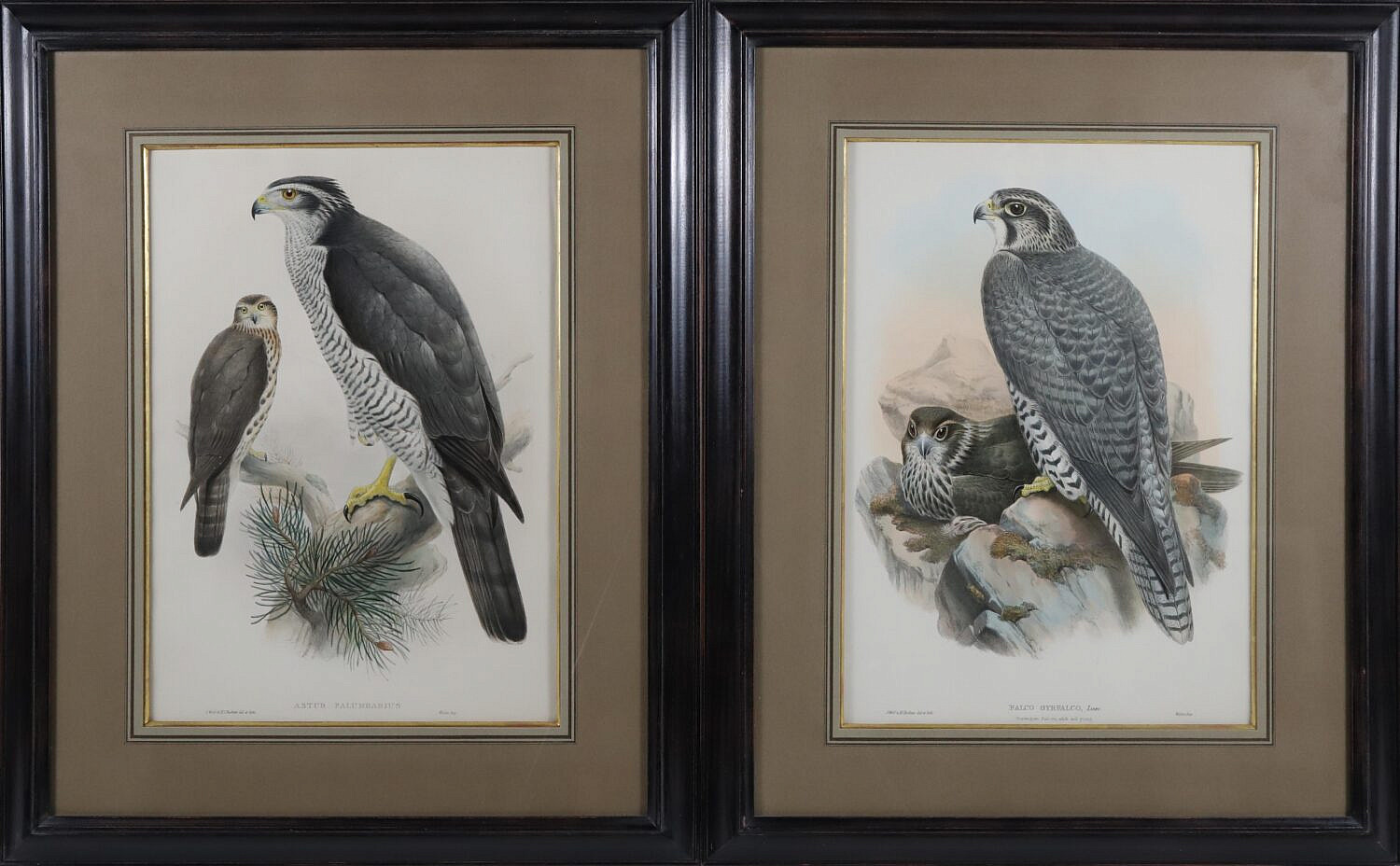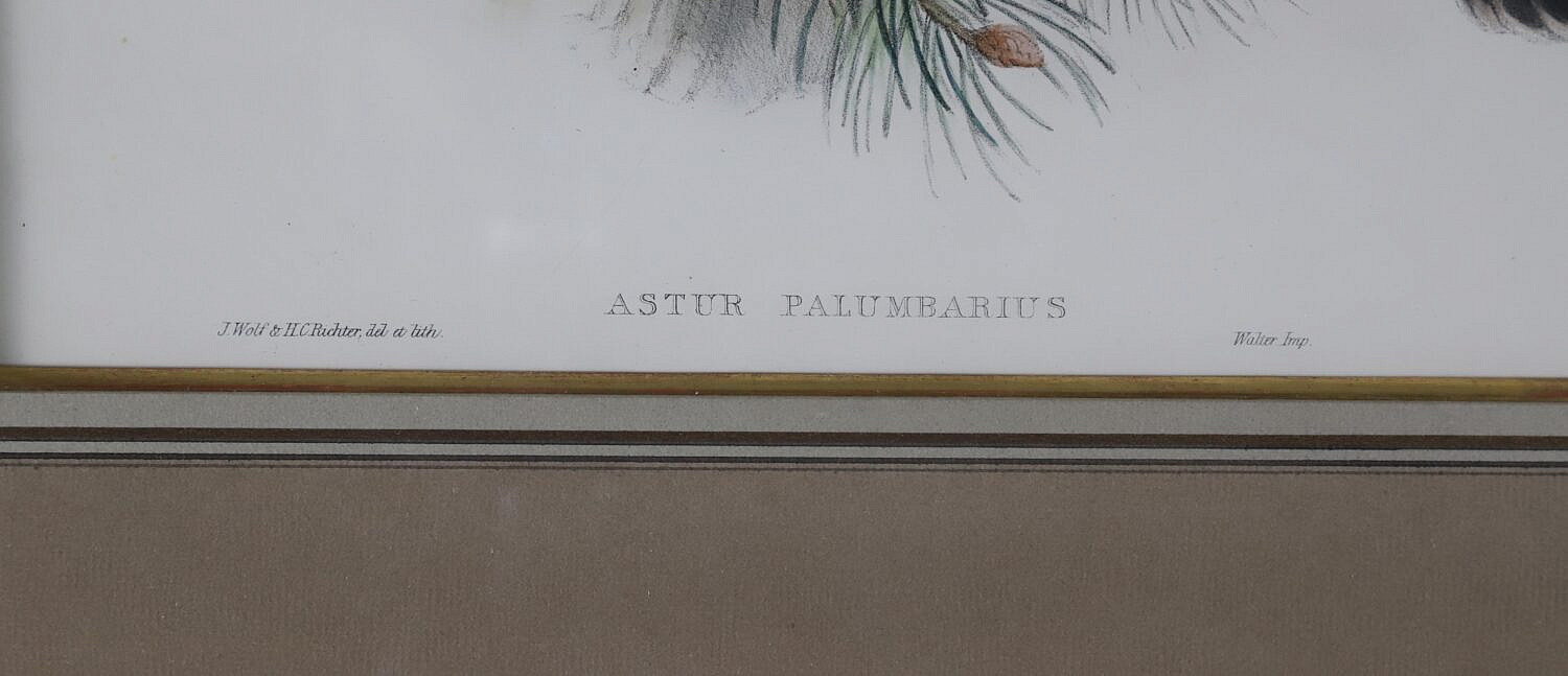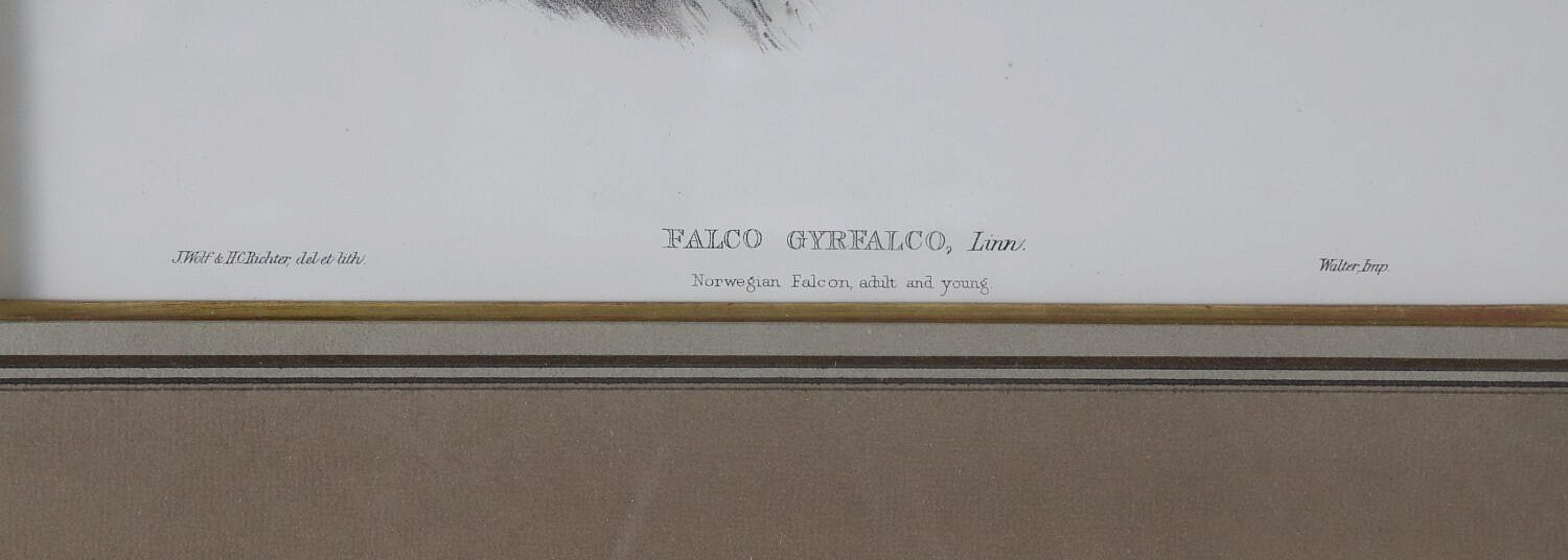 Pair of J. Wolf & H.C. Richter Prints “Falco Gyrfalco” and “Astur Palumbarius”, matted and framed