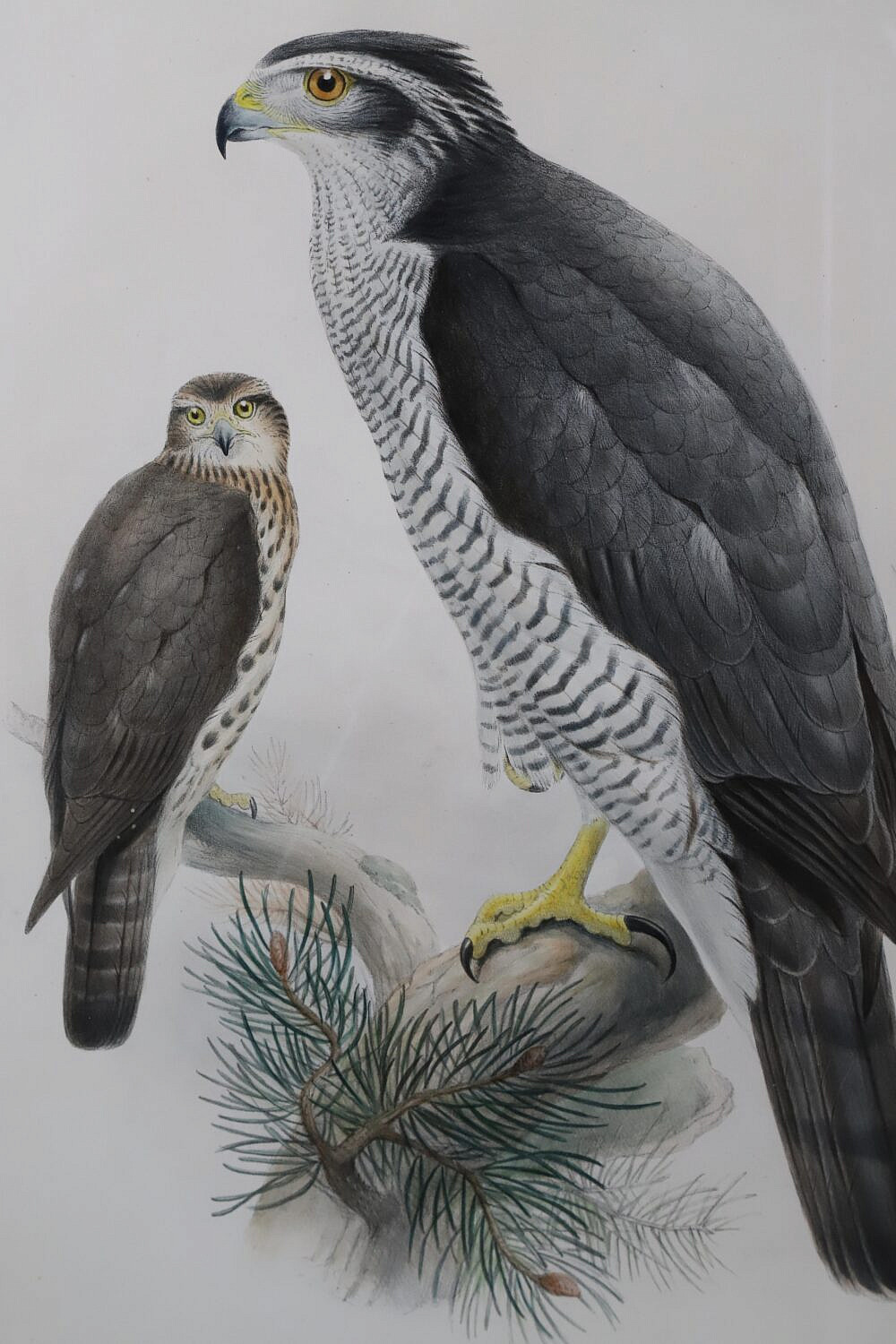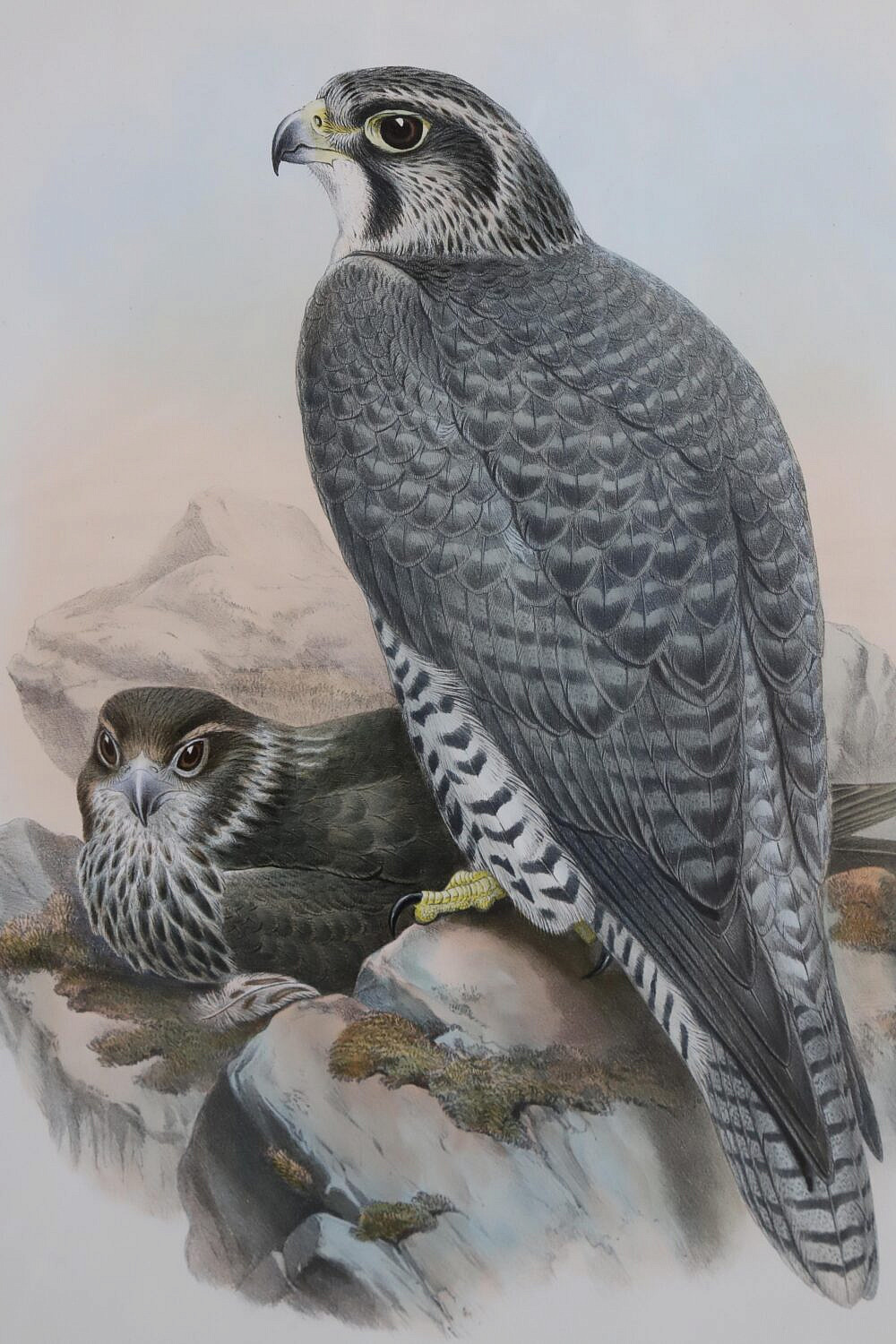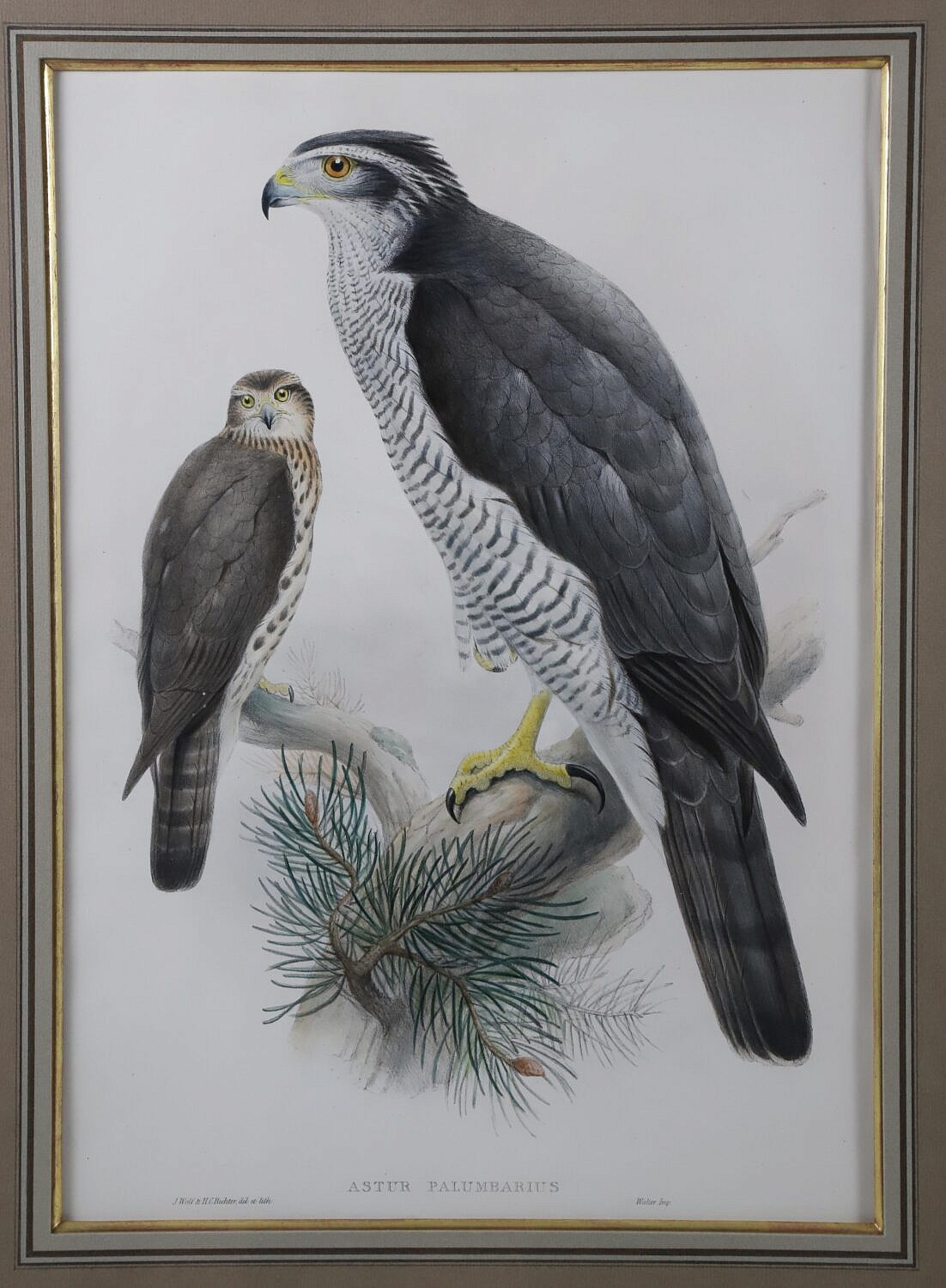 Pair of J. Wolf & H.C. Richter Prints “Falco Gyrfalco” and “Astur Palumbarius”, matted and framed