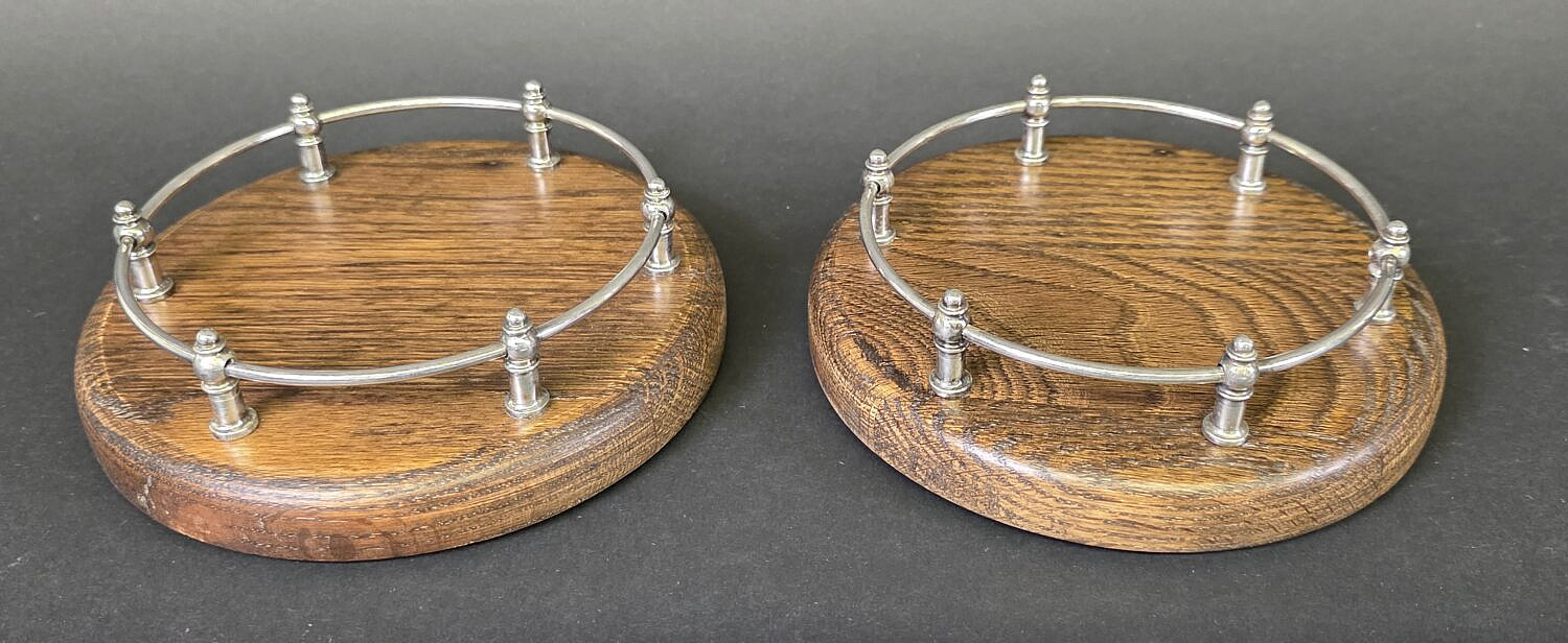 Pair of Oak and Silverplate Gallery Yacht Coasters, 20th century