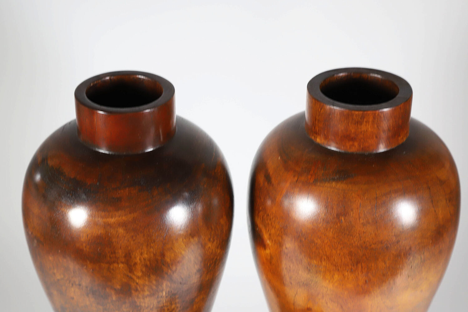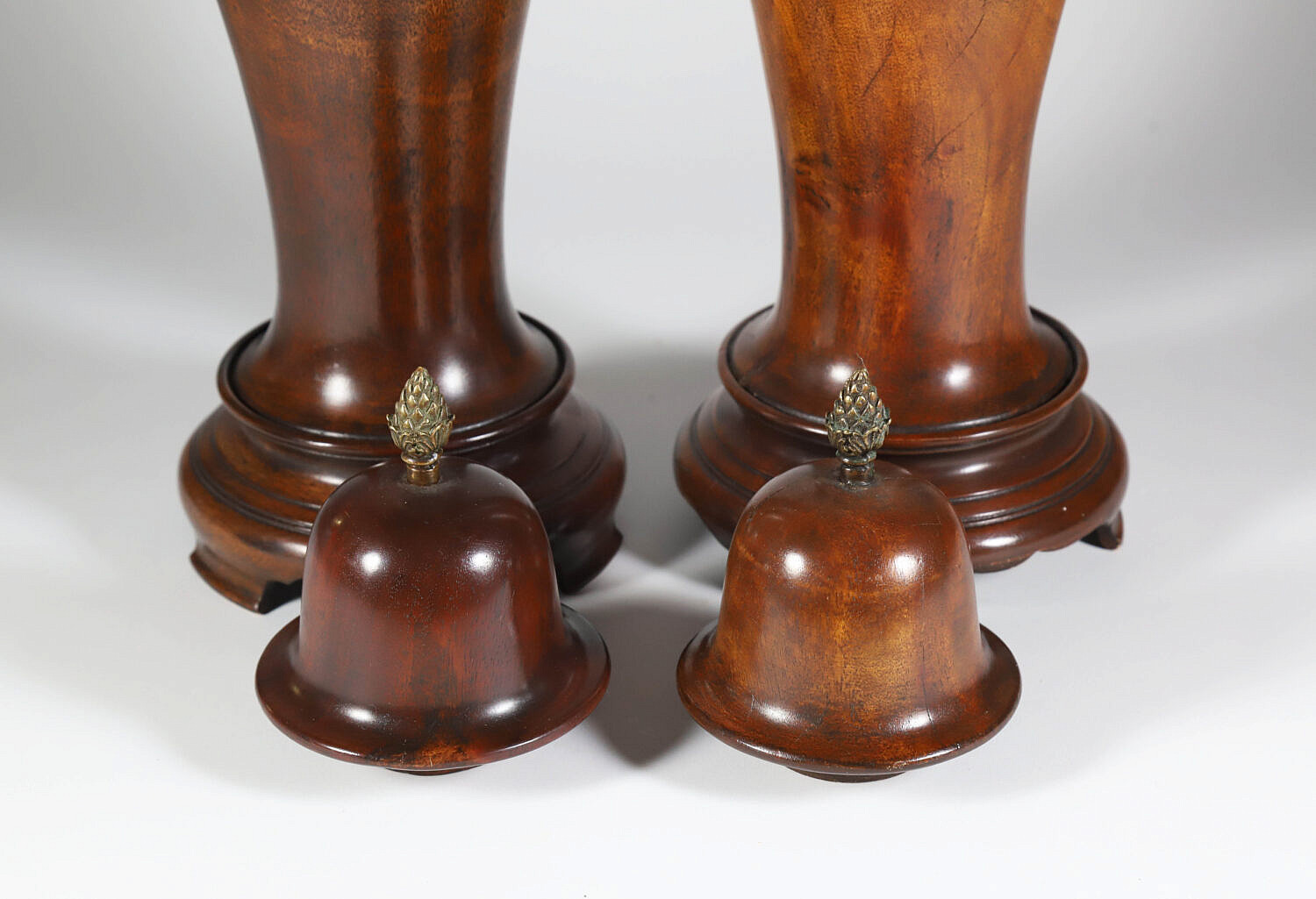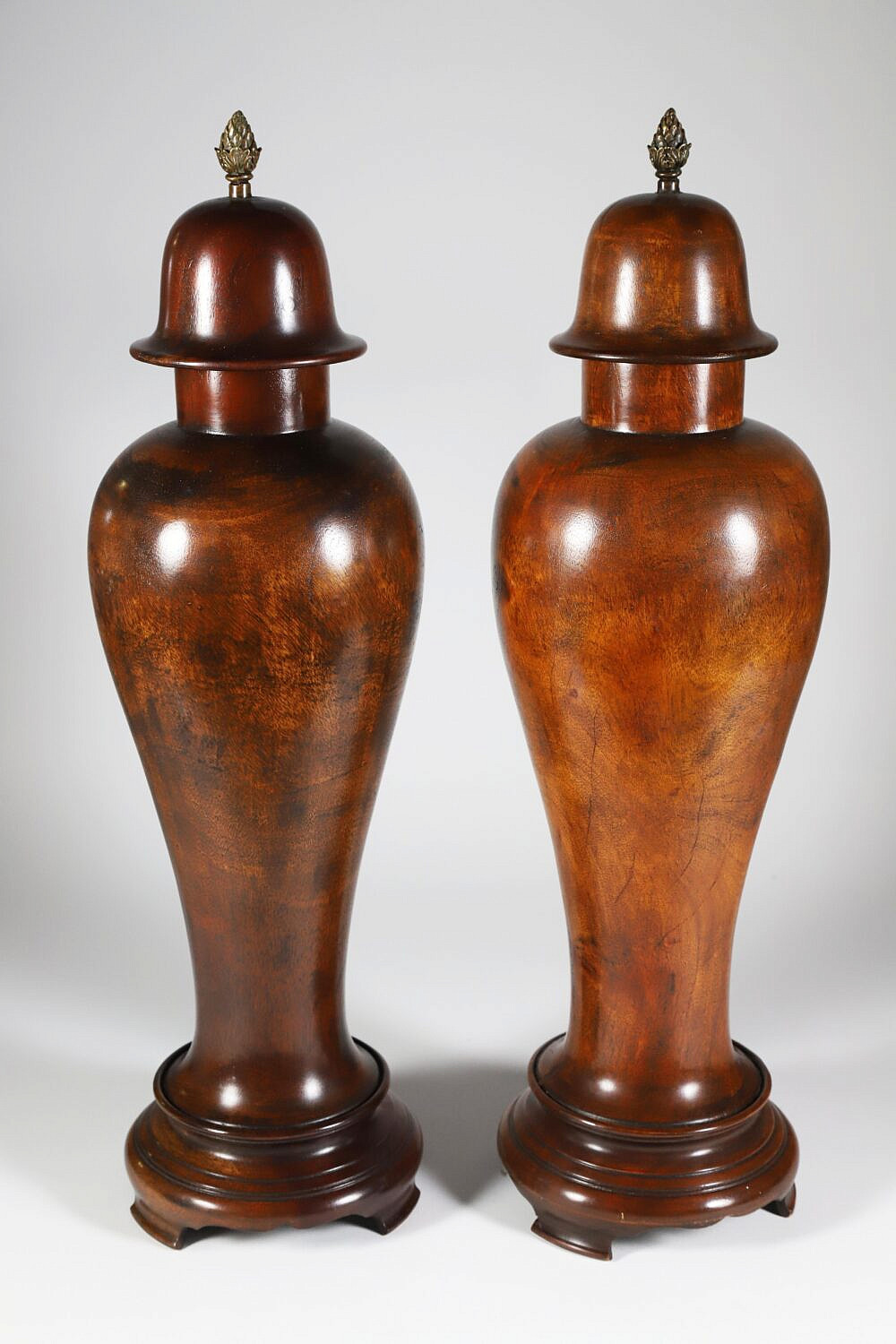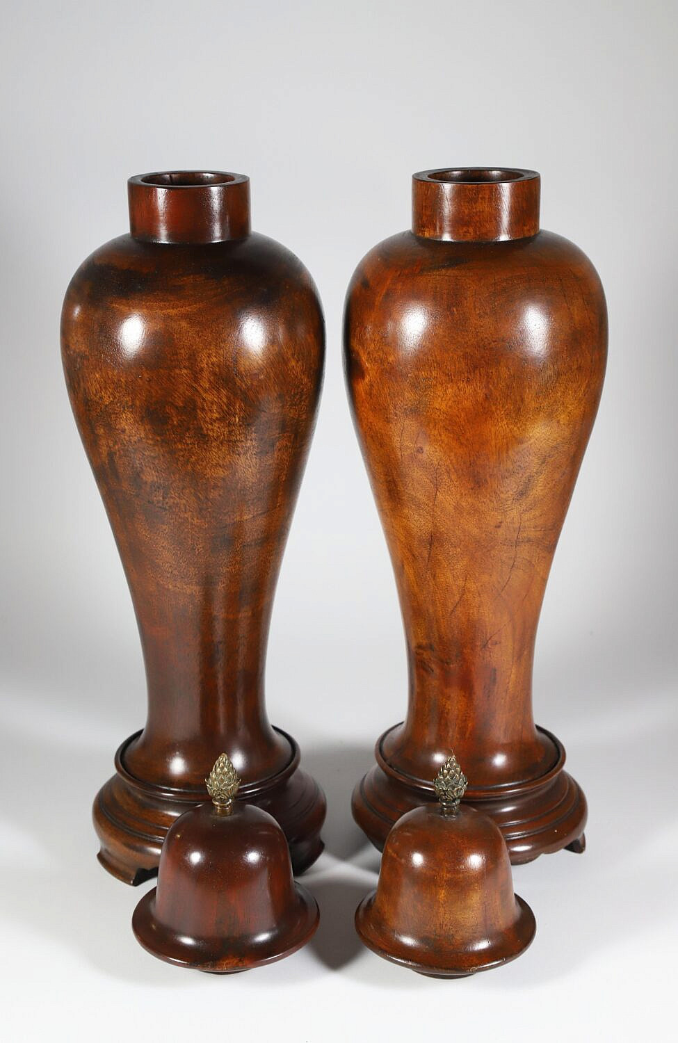 Pair of Treen Turned Wood Vases with Covers Consign Now DeptDecorative ArtsSizeHeight 22 in. Pair of Treen Turned Wood Vases with Covers, with brass finials Height 22 in. Please note that this auction has ended. Click here for an overview of this auction.