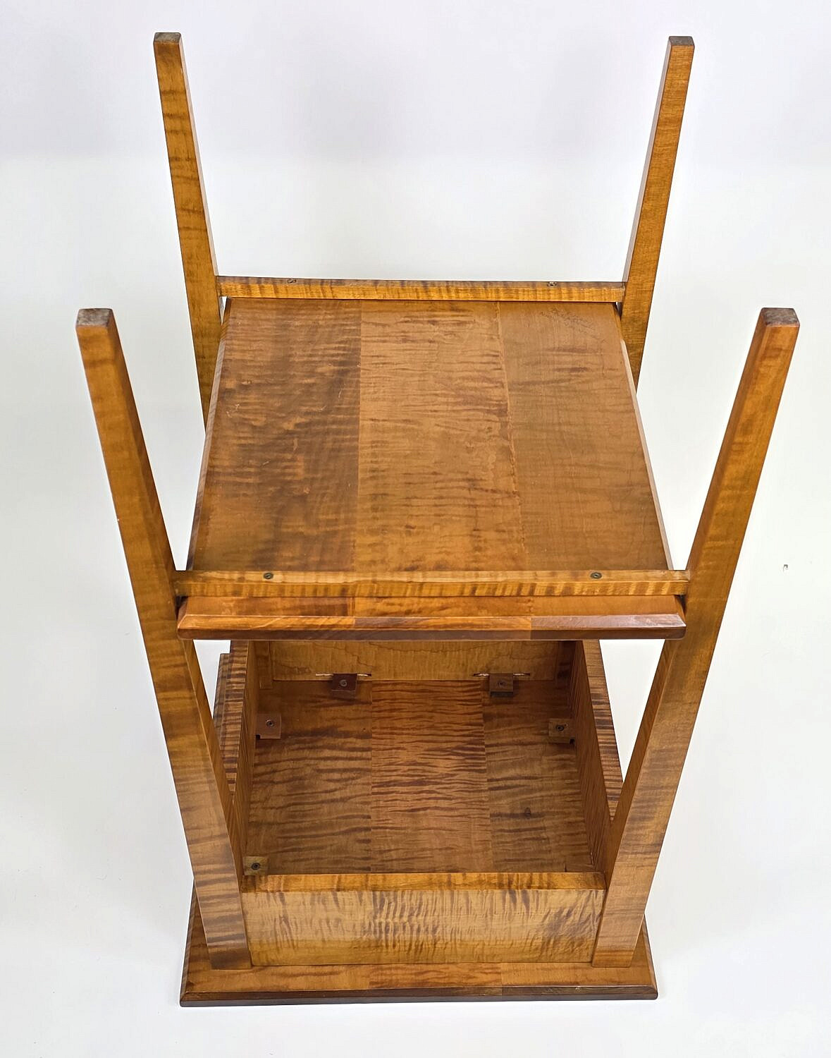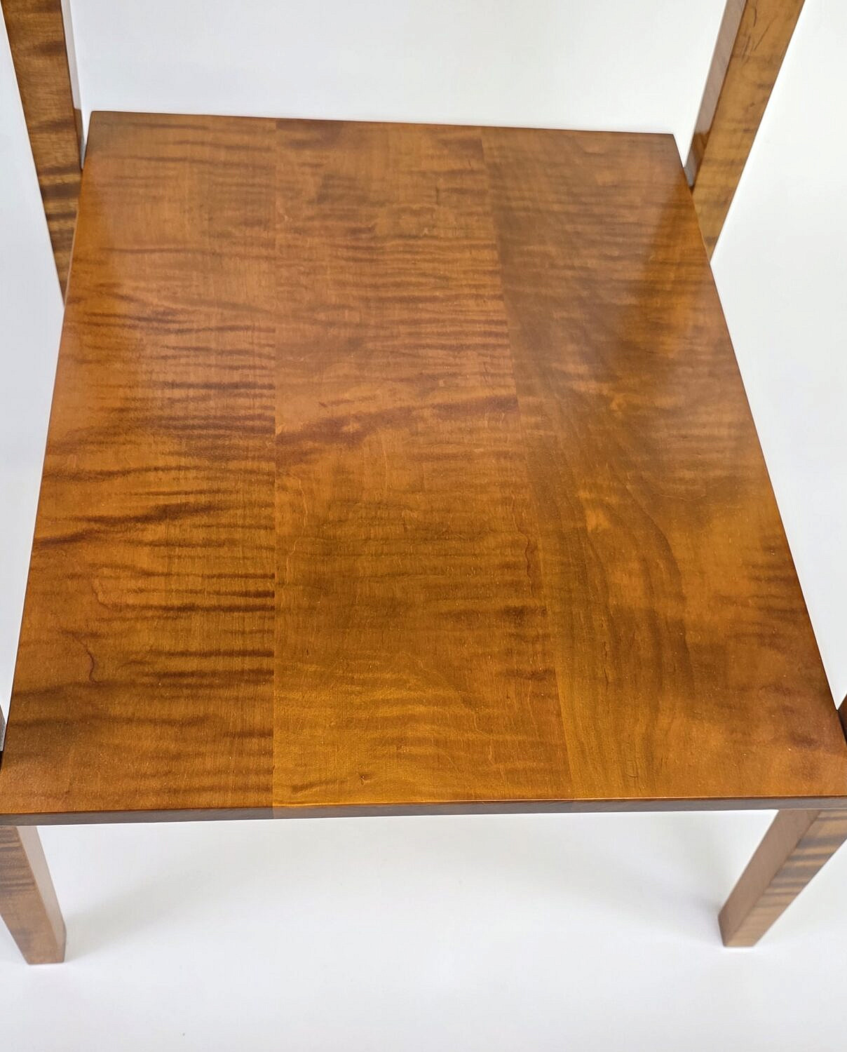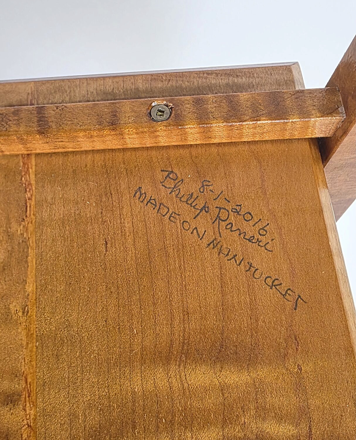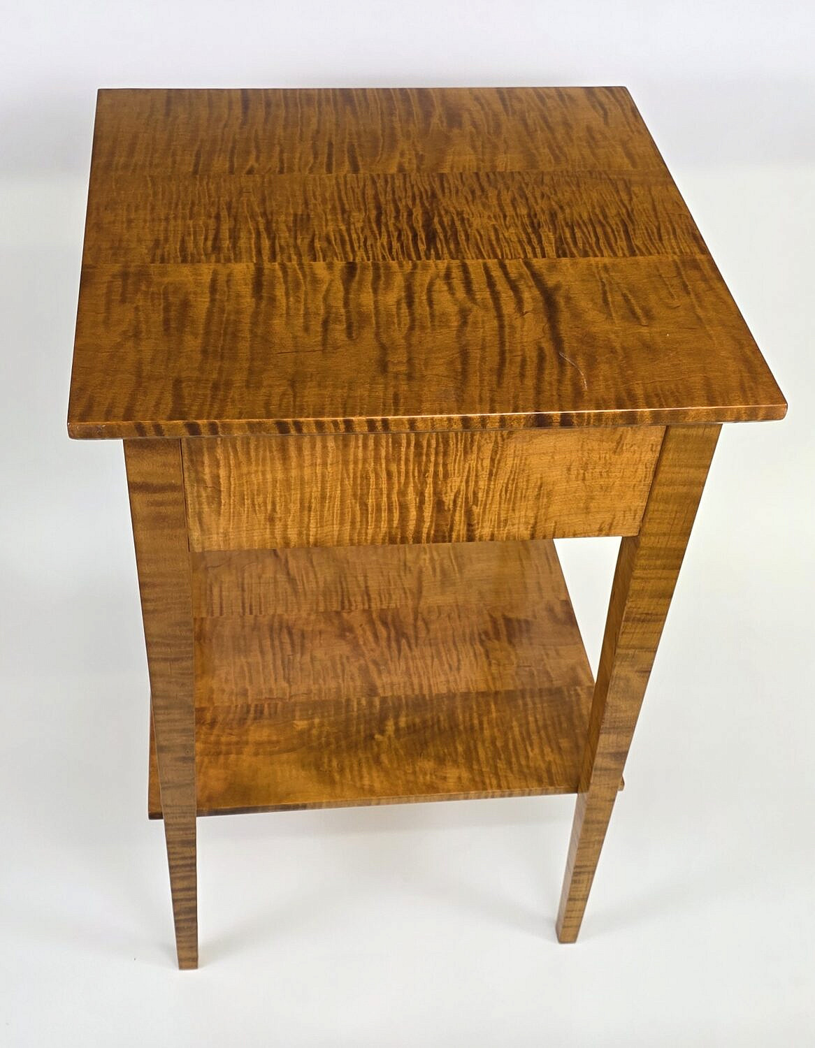 Phillip Raneri (American 1925-2023) Nantucket Tiger Maple End Table, with shelf stretcher, Hepplewhite style, signed, Phillip Raneri Made on Nantucket 2016
