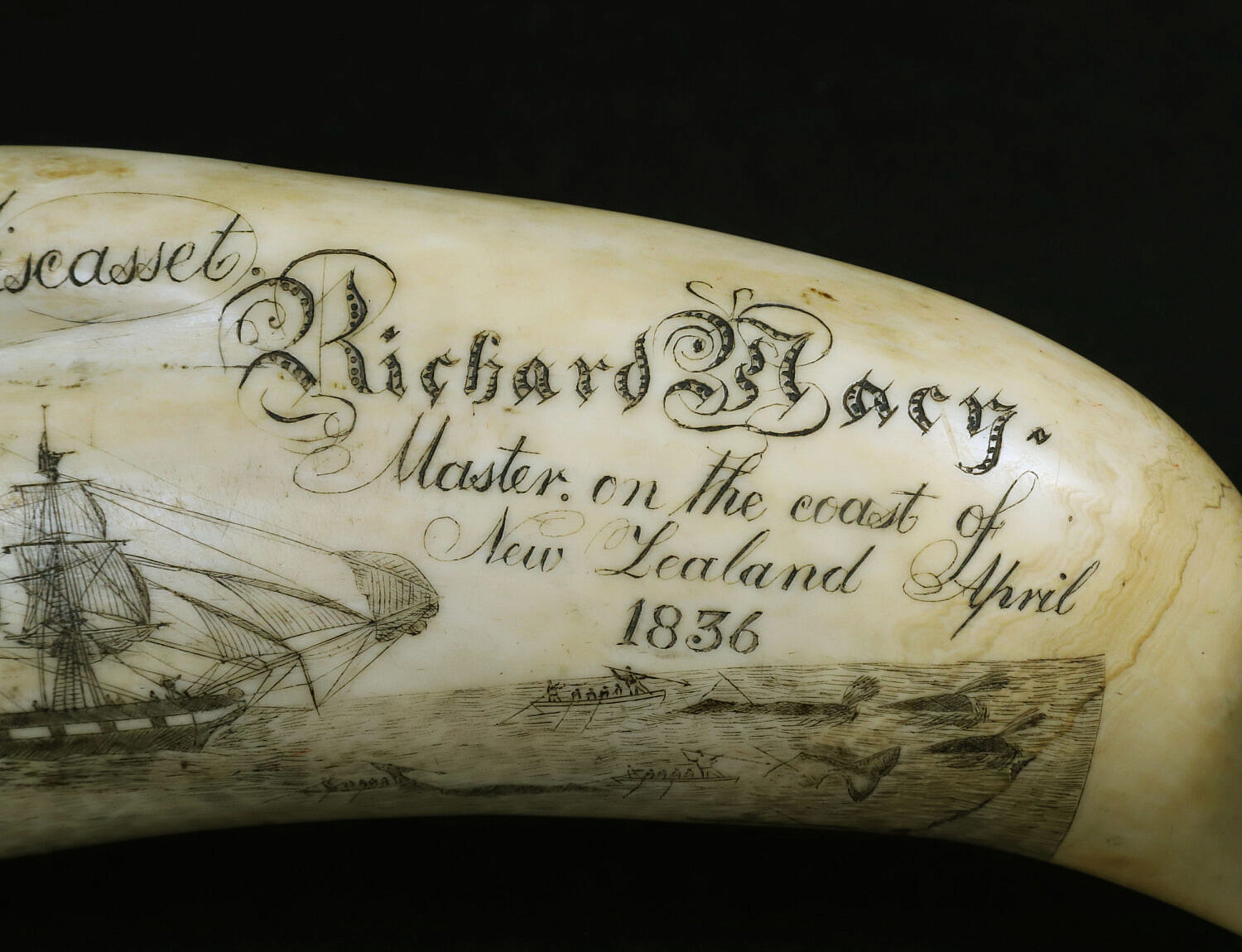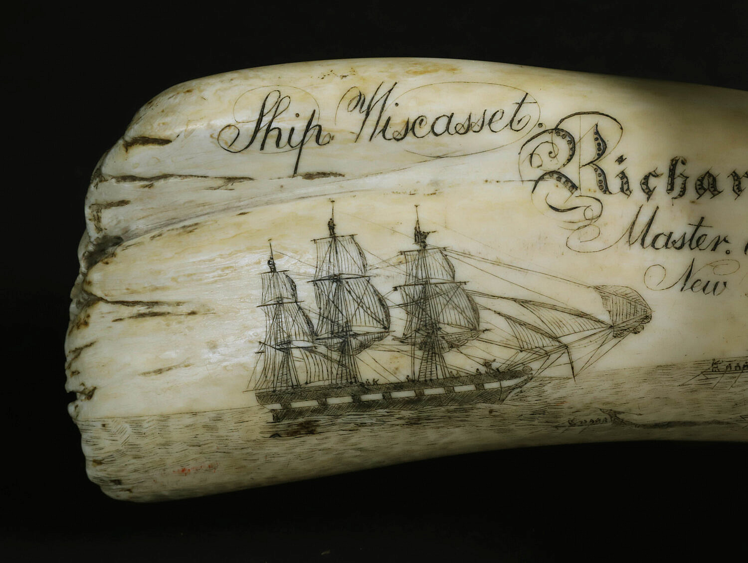Scrimshaw Whale Tooth Ship Wiscasset “Richard Macy Master on the coast of New Zealand April 1836”