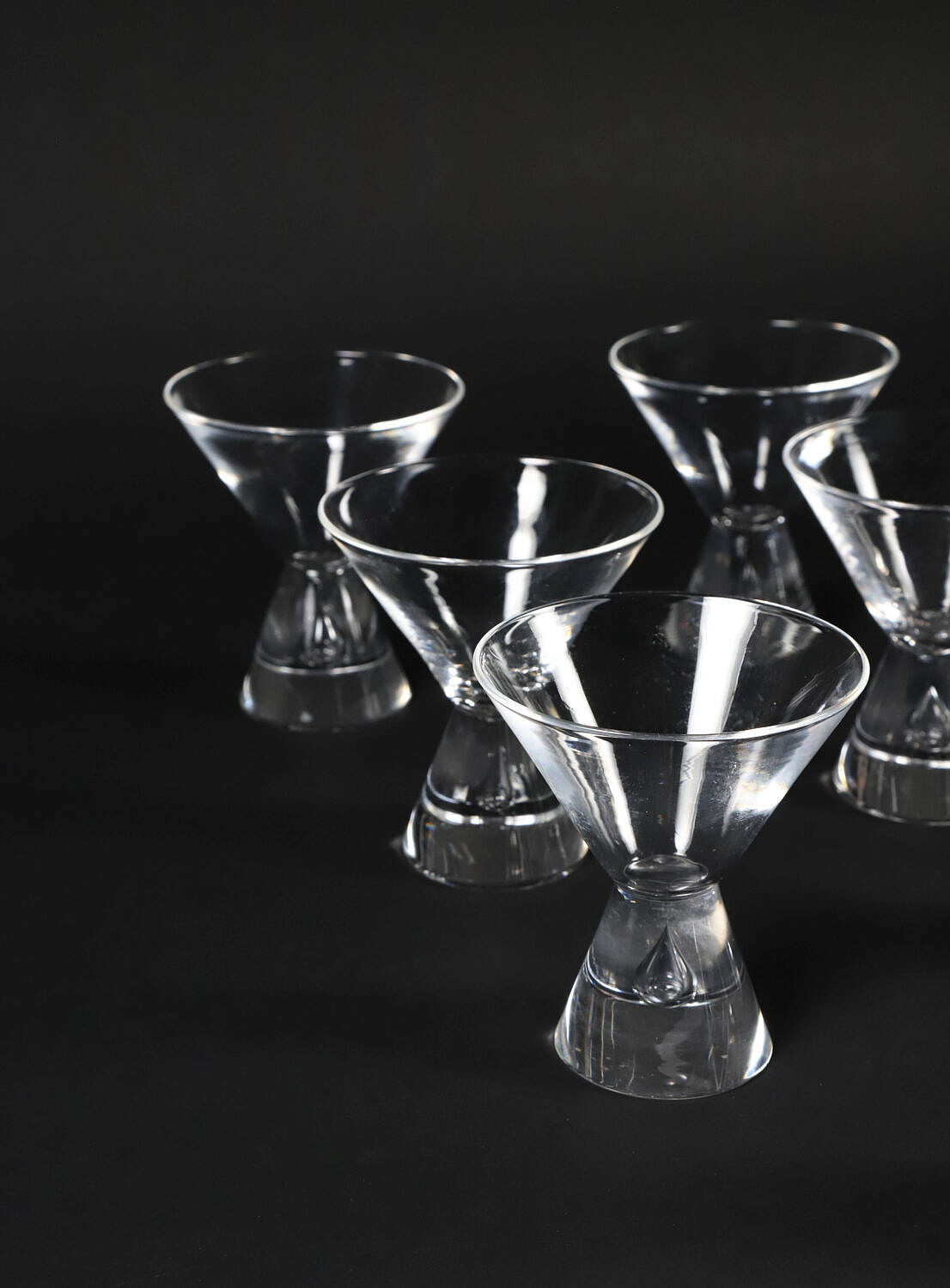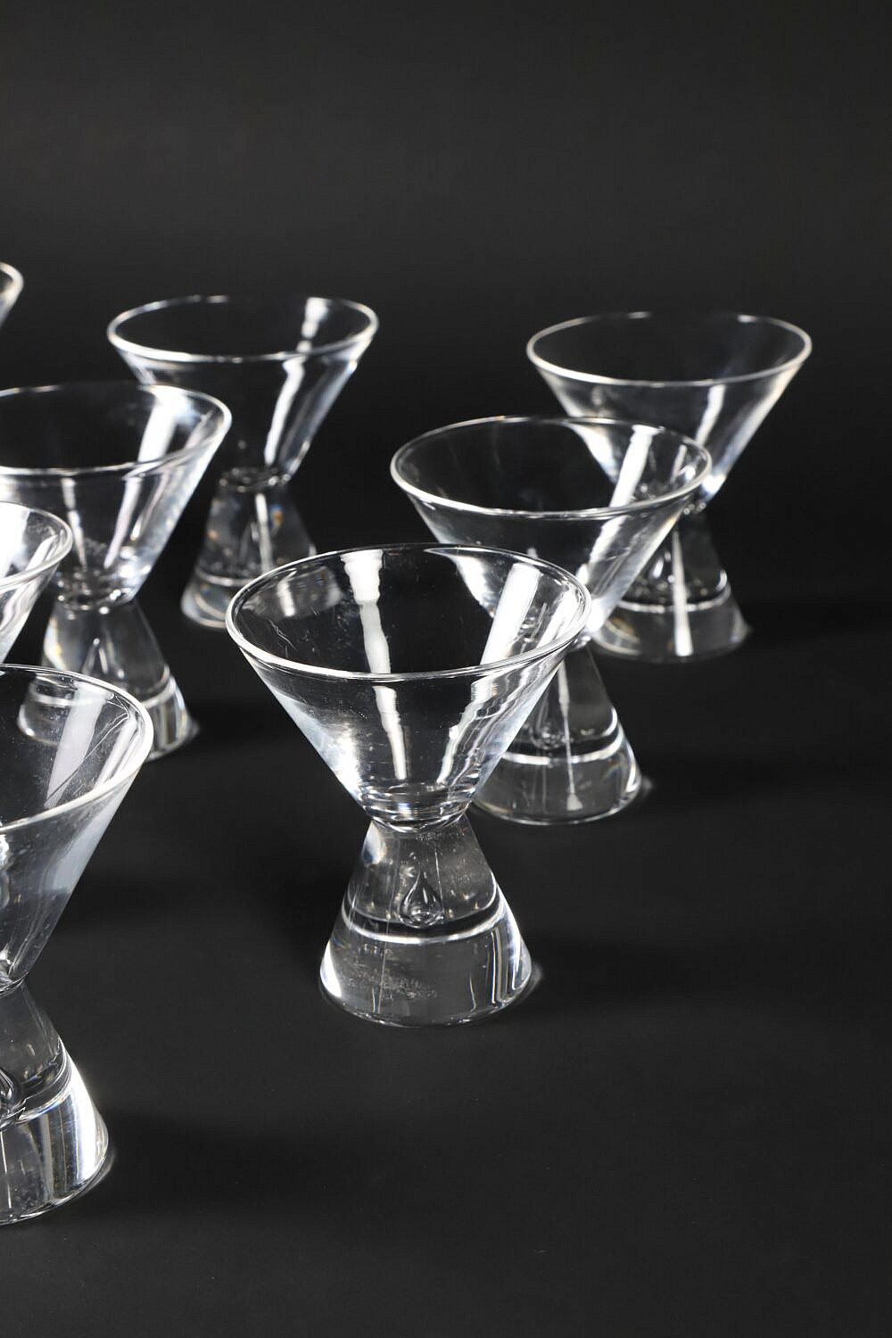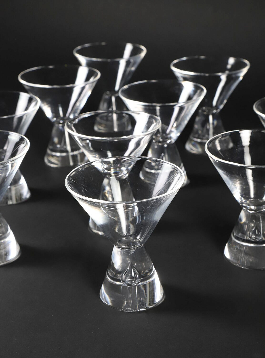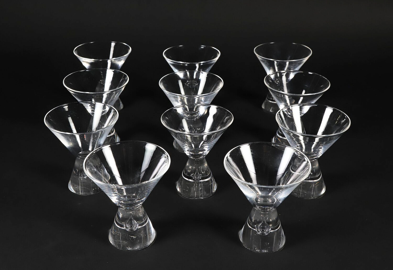 Set of 11 Signed Steuben Martini Glasses Designed by George Thompson, with blown bubble in stem